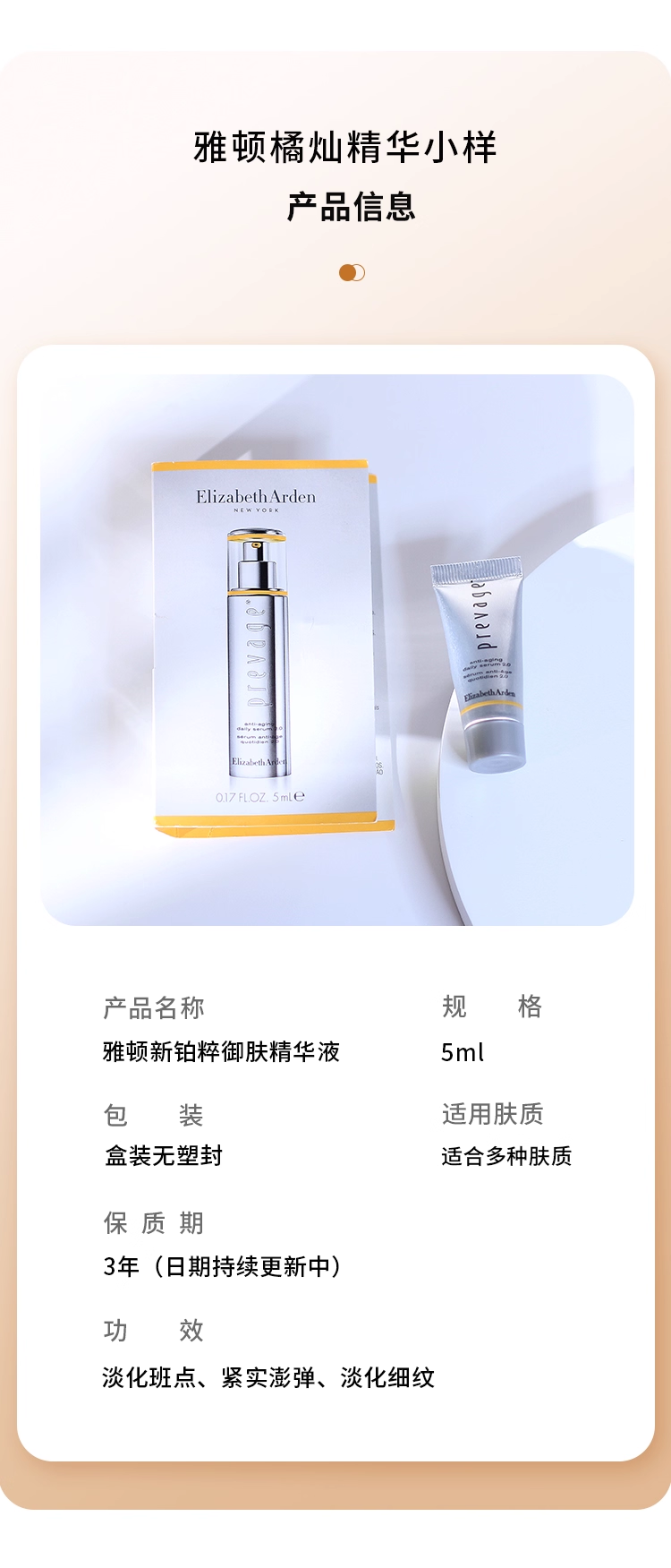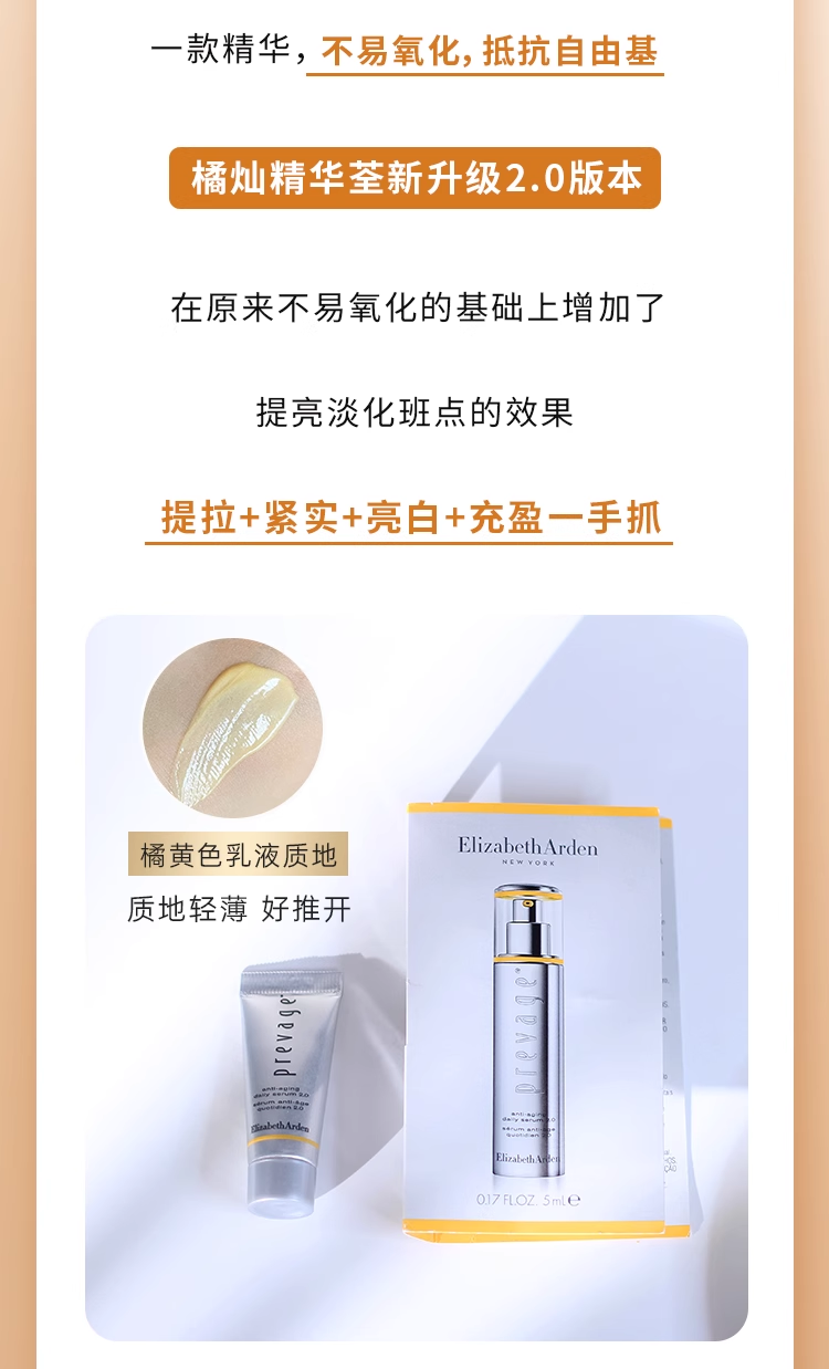 雅顿橘灿精华5ml小样新版2.0 铂粹御肤精华液提亮 效期2026年11月