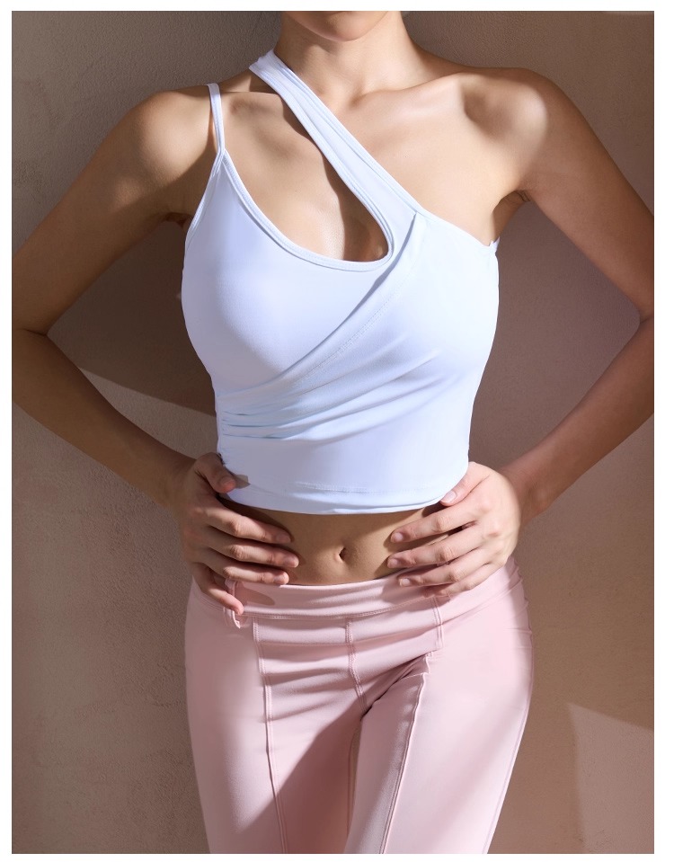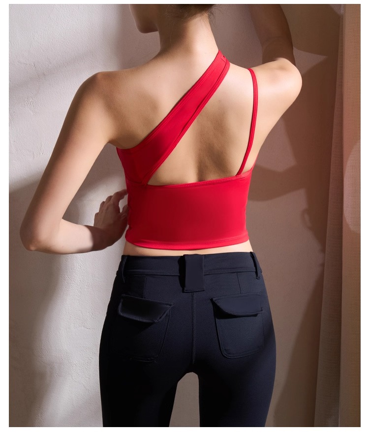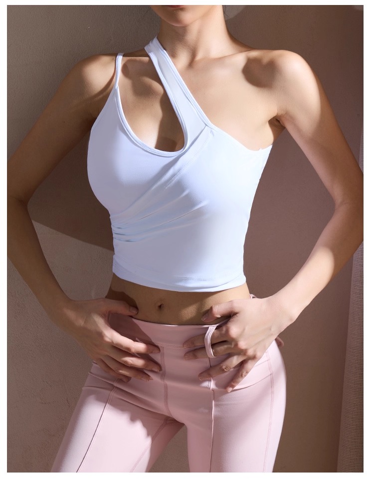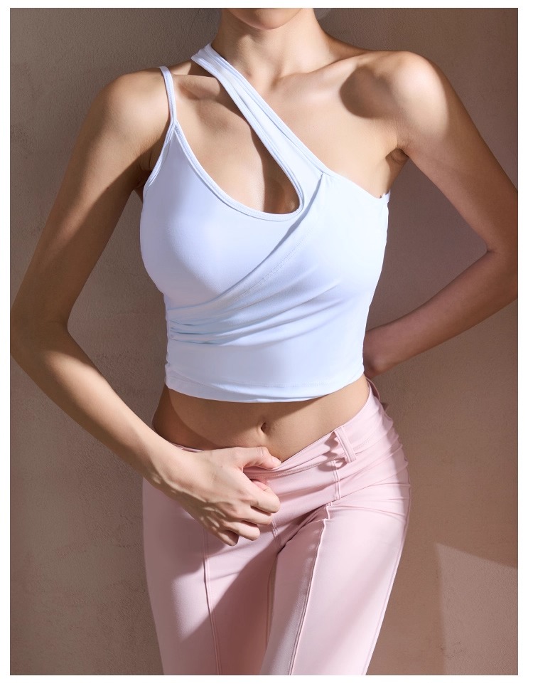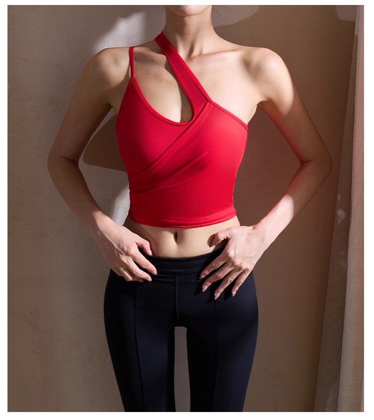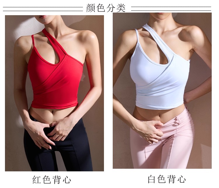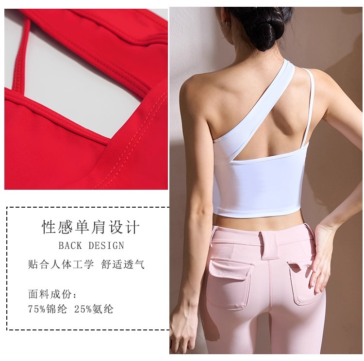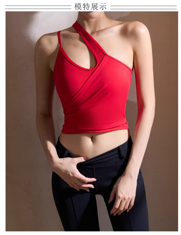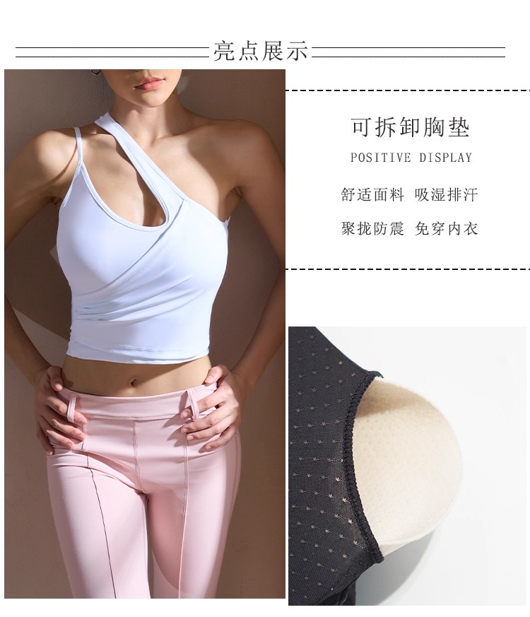 【126元任选2件】跃牌【漫西】系列 性感斜肩瑜伽背心运动健身瑜伽服套装带可拆卸胸垫3376