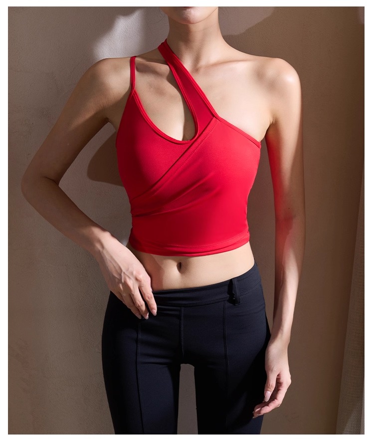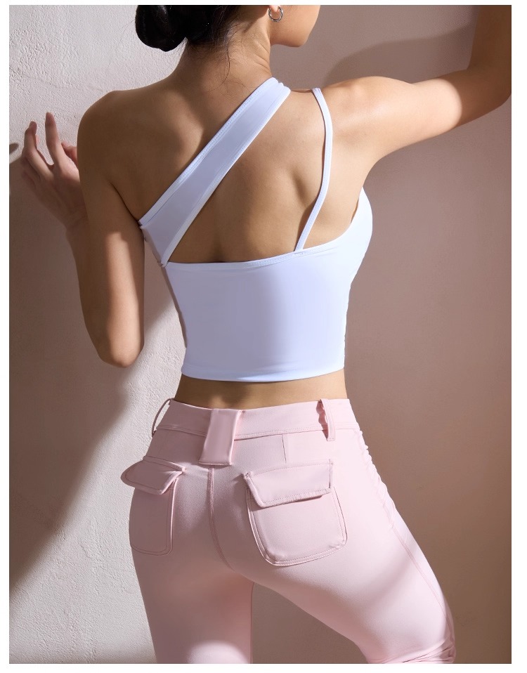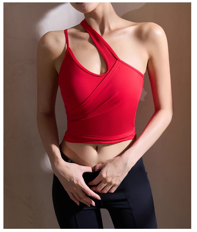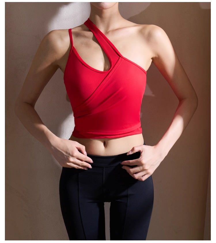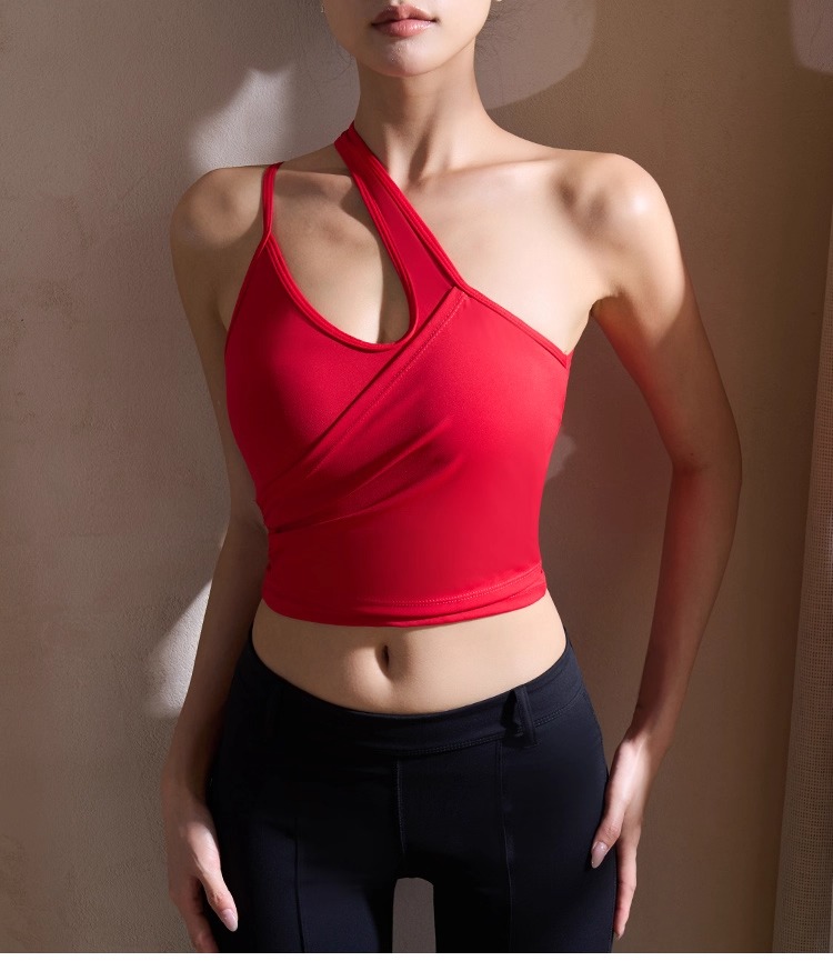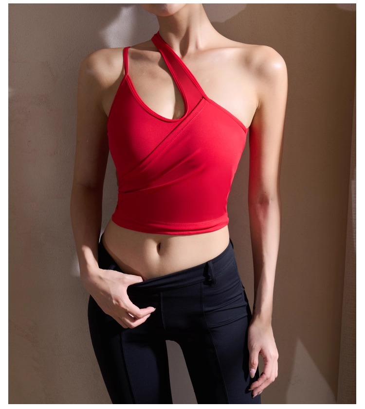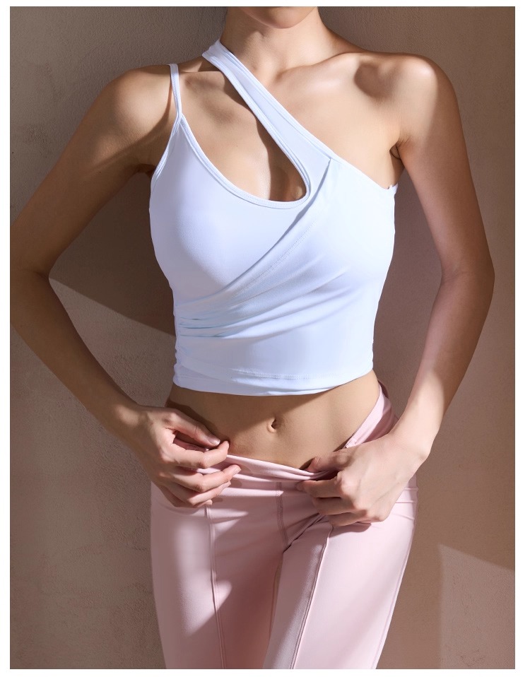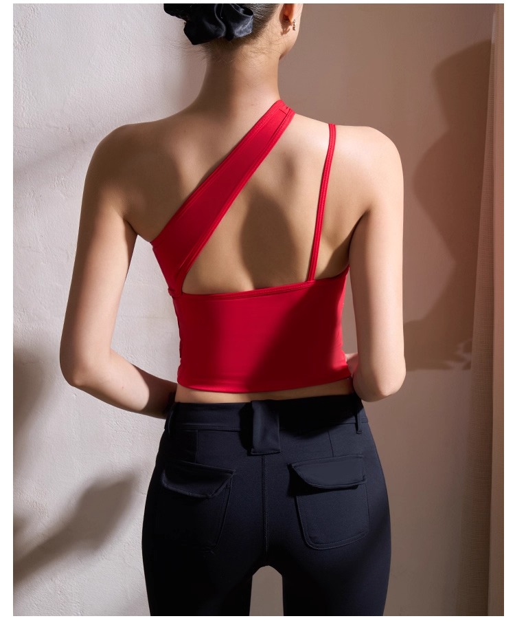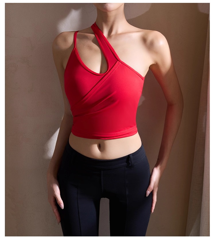 【126元任选2件】跃牌【漫西】系列 性感斜肩瑜伽背心运动健身瑜伽服套装带可拆卸胸垫3376