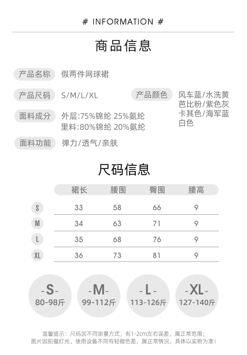 【3~5天发货】跃牌【美度空间】系列 辣妹夏季网球裙跑步健身裙防走光假两件运动迷你半身短裙速干DQ1514