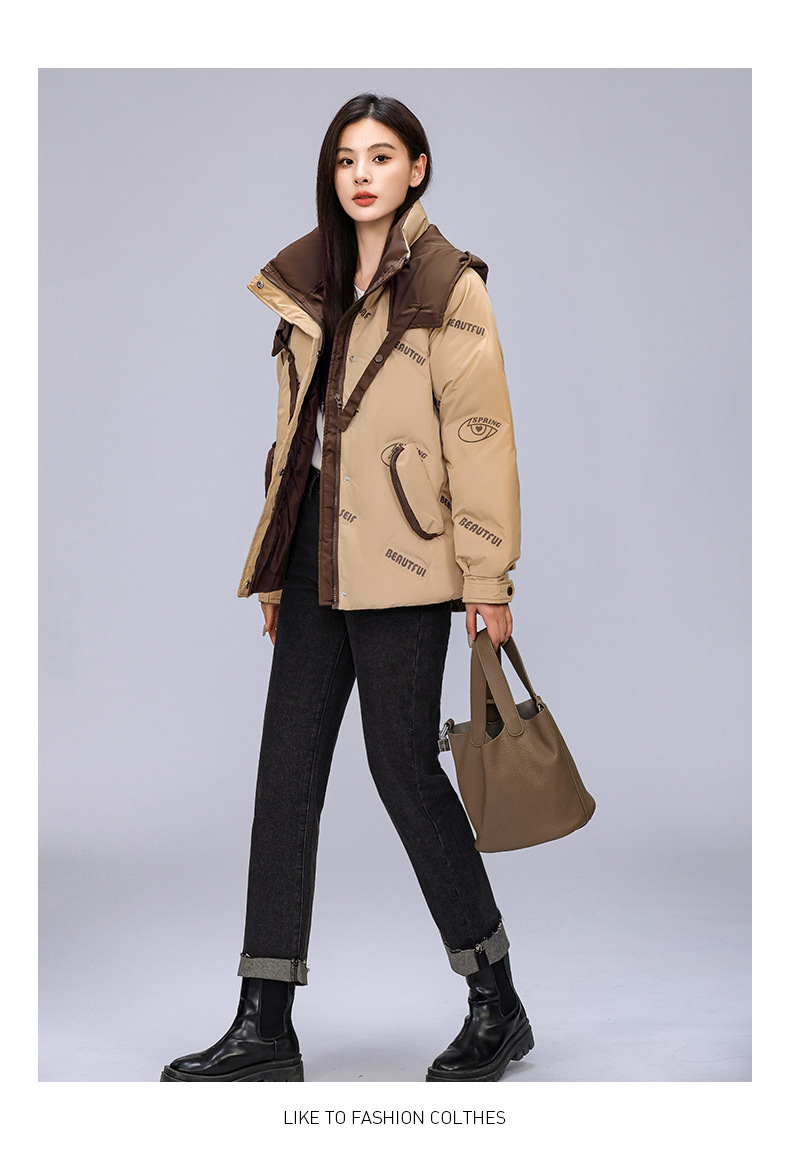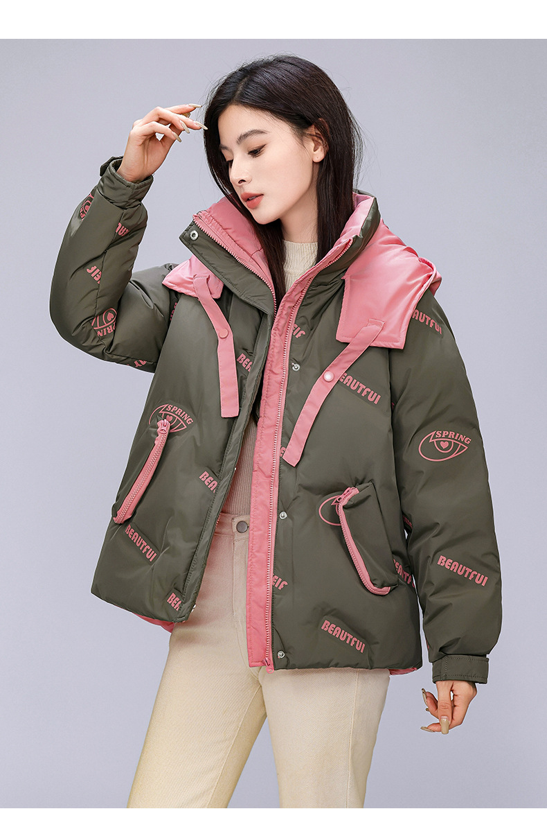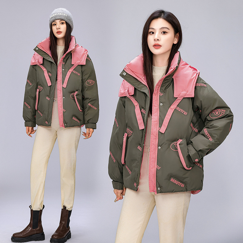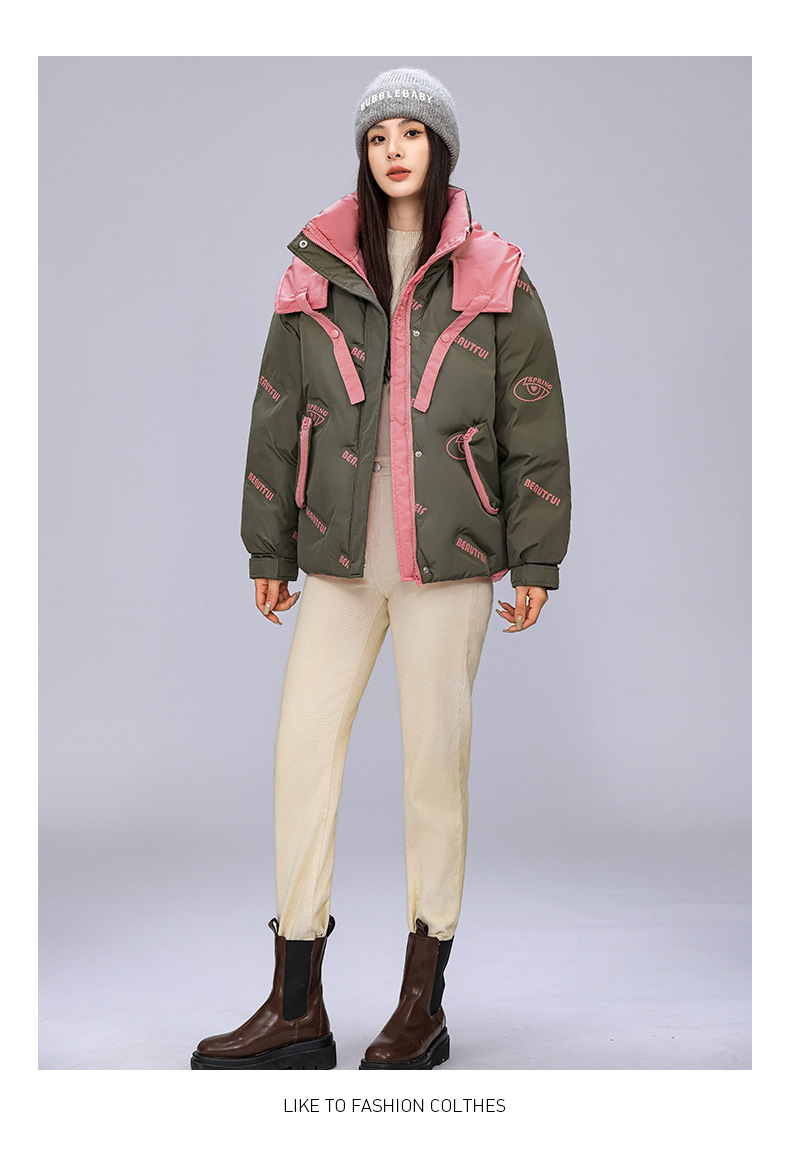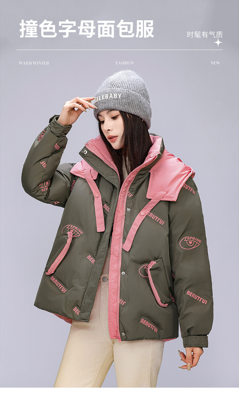 雀说连帽短款羽绒棉服新款冬爆款印花棉衣面包服小个子洋气棉袄AL8023