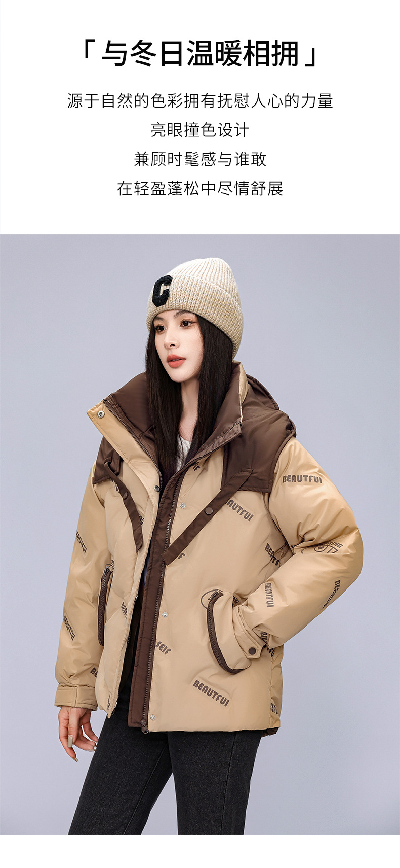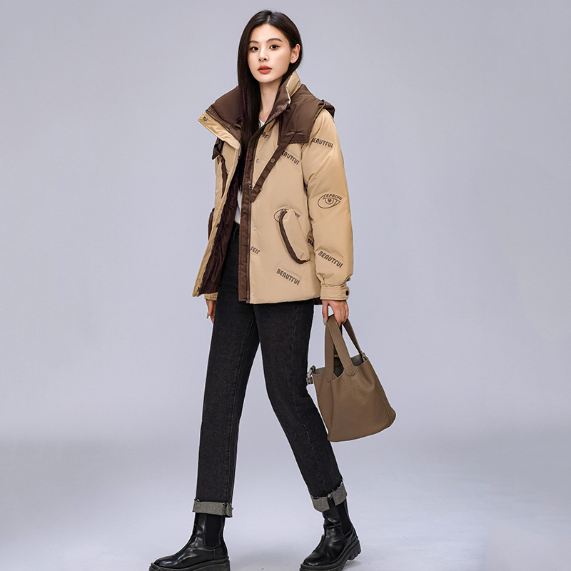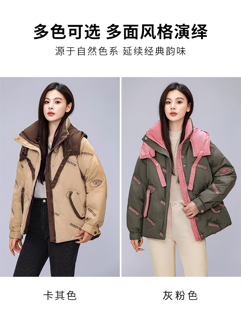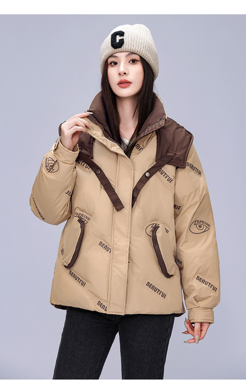 雀说连帽短款羽绒棉服新款冬爆款印花棉衣面包服小个子洋气棉袄AL8023