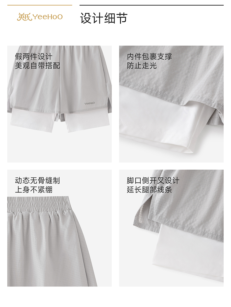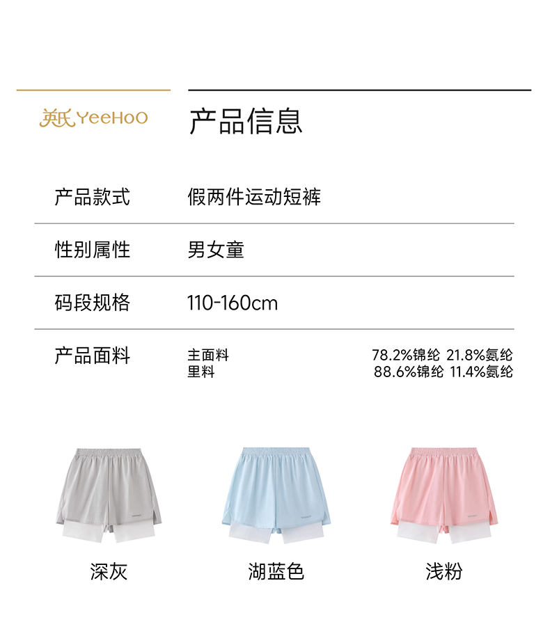 【凉感速干】英氏儿童裤子男女童夏季百搭运动中裤假两件休闲裤子新款