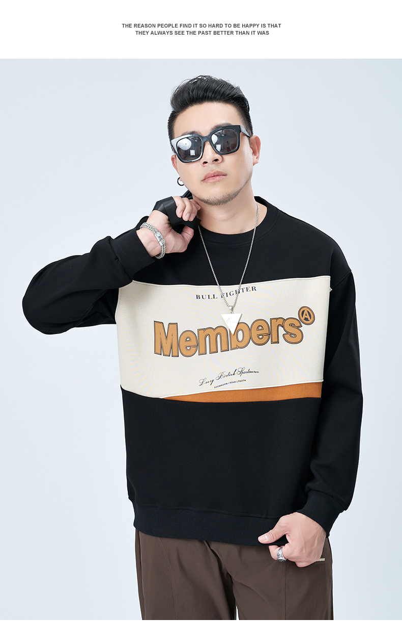 【新款DMH】大依优型大码圆领印花卫衣长袖弹力加肥加大胖子上衣男士T恤肥佬打底男装