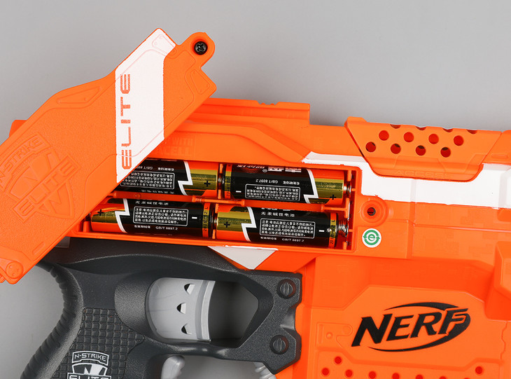 这里要和大家特别说明一下怎样击发,发射器扳机护圈的外侧有一个小的开关,在“据枪”的时候同时握住这个小开关,这时会听到发射器的电机开始工作,等电机启动以后就可以扣动扳机扳机进行半自动点射了!(特别提醒,请不要同时按住开关和扳机,这样有很大的几率卡弹)