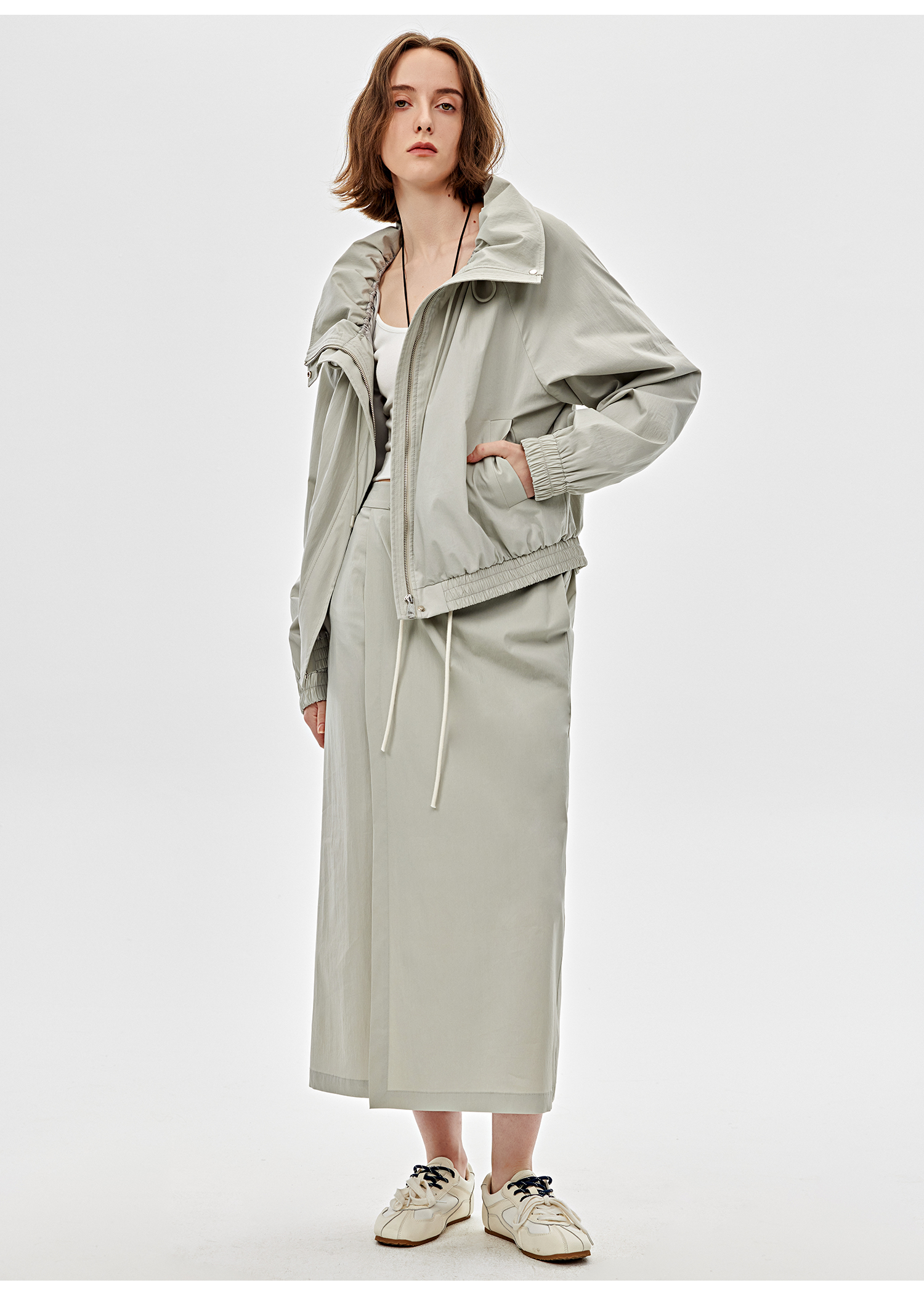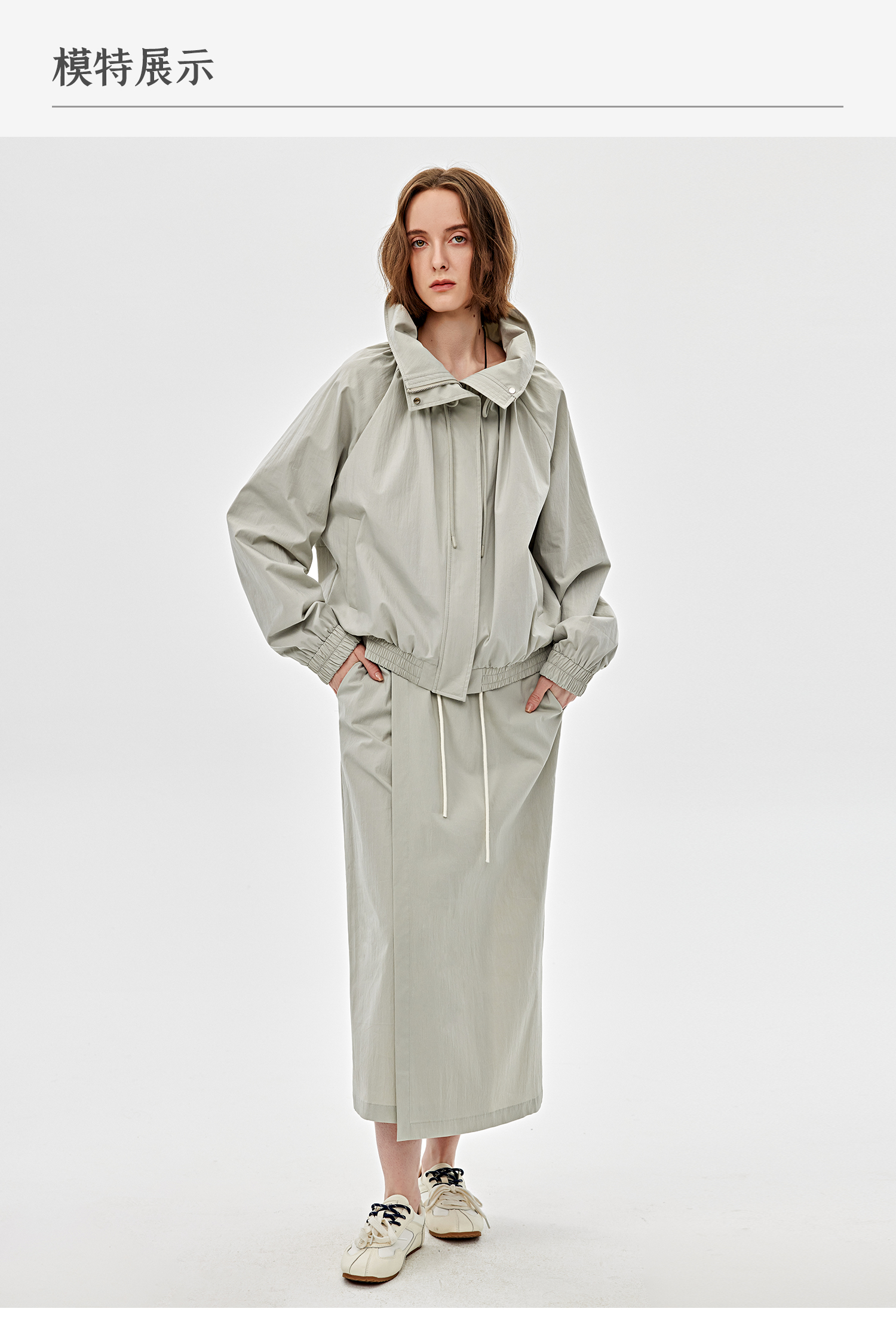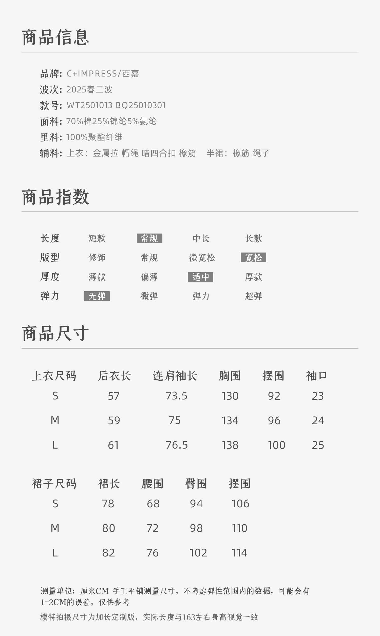 C+IMPRESS西嘉|精梳棉混纺休闲两件套女花苞领外套系带半裙套装春WT2501013