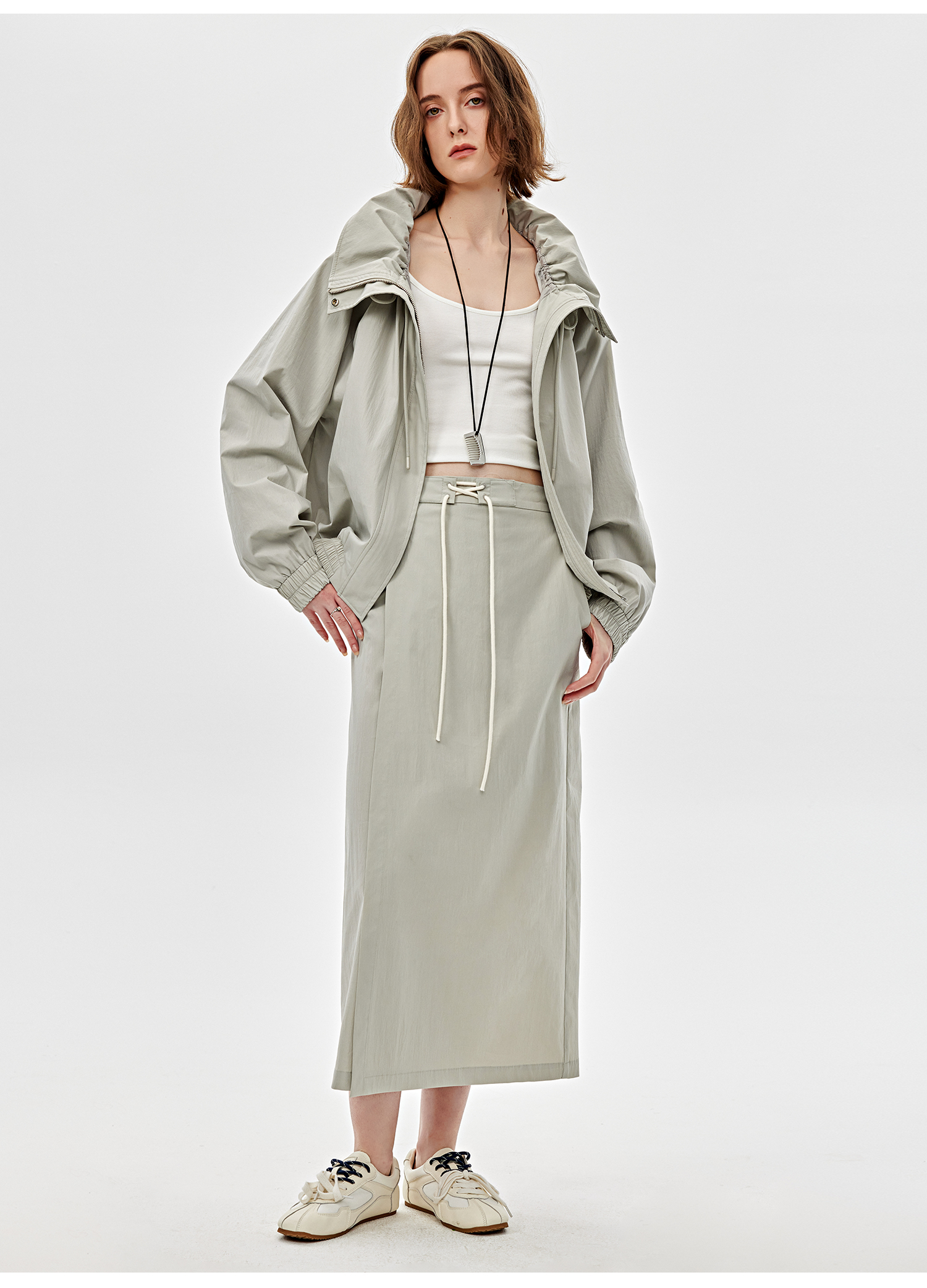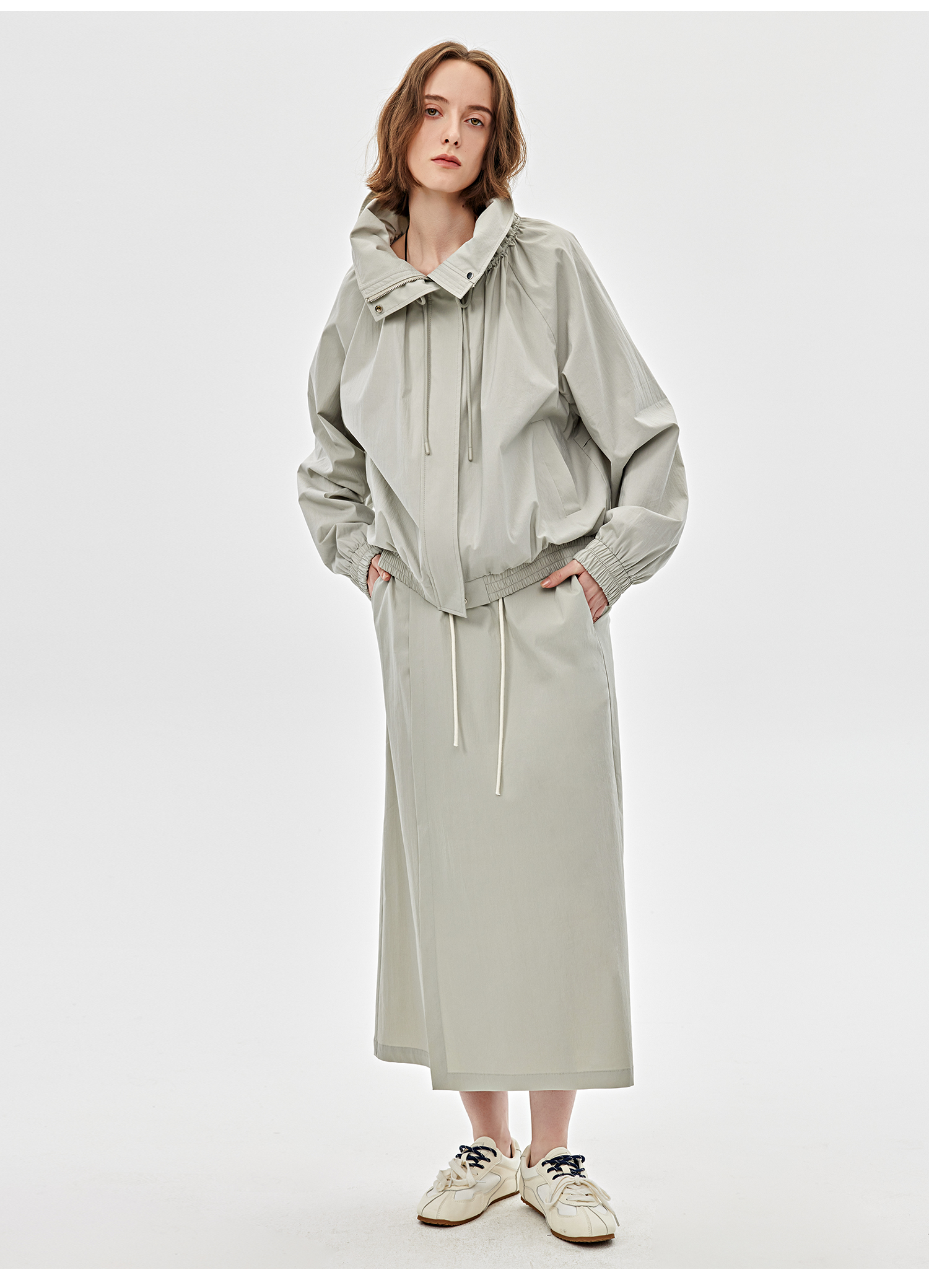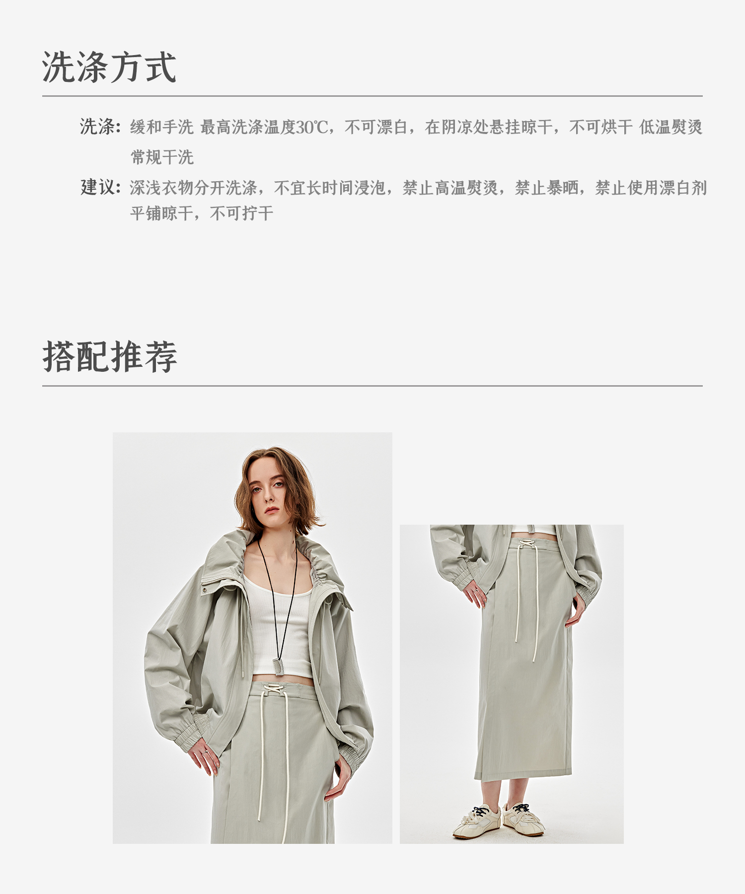 C+IMPRESS西嘉|精梳棉混纺休闲两件套女花苞领外套系带半裙套装春WT2501013