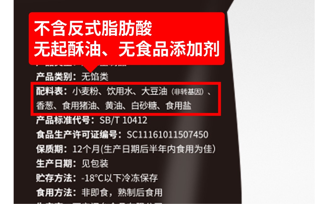 🎉小麦粉、饮用水、大豆油(非转基因)、香葱、食用猪油、黄油、白砂糖、食用盐