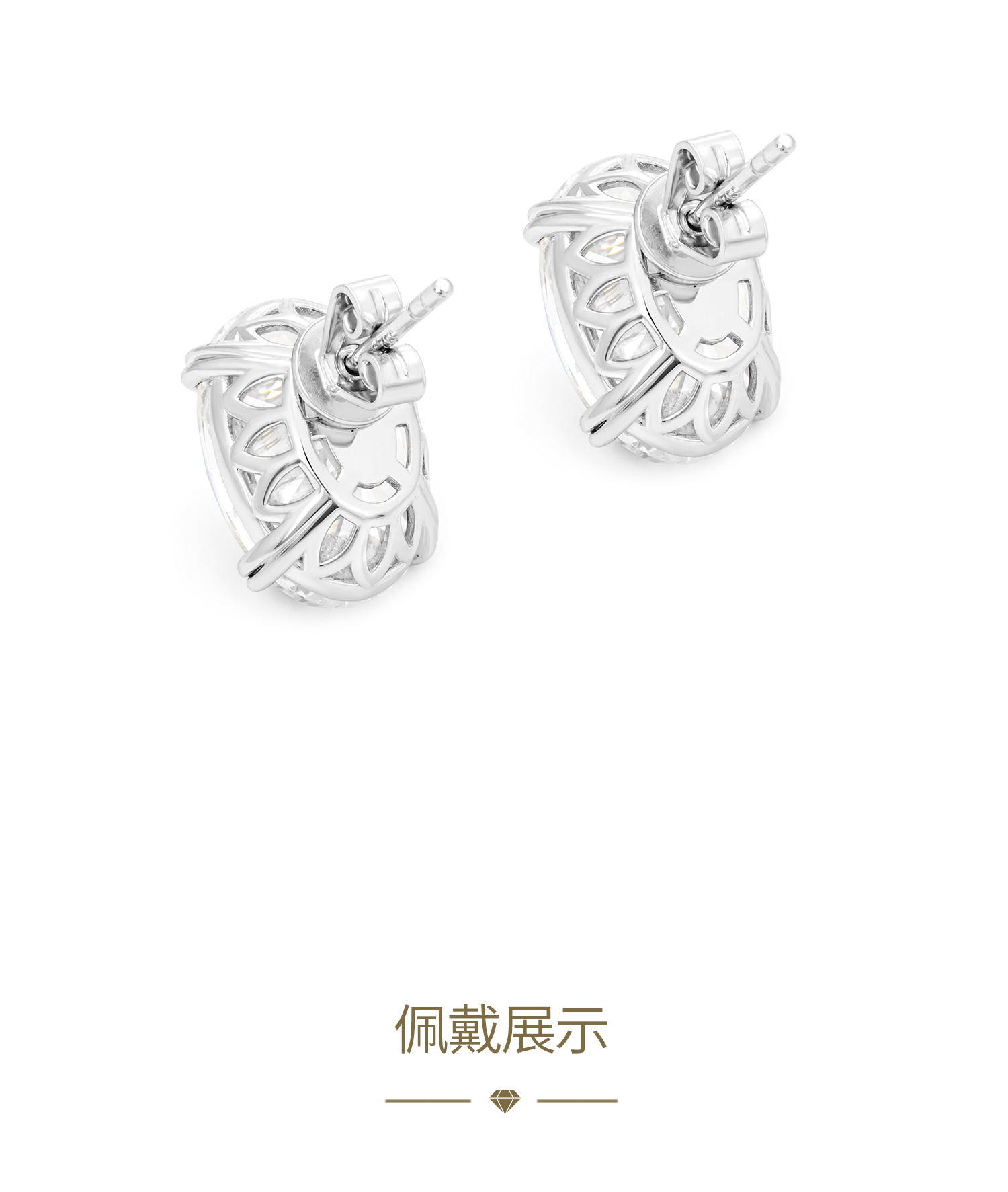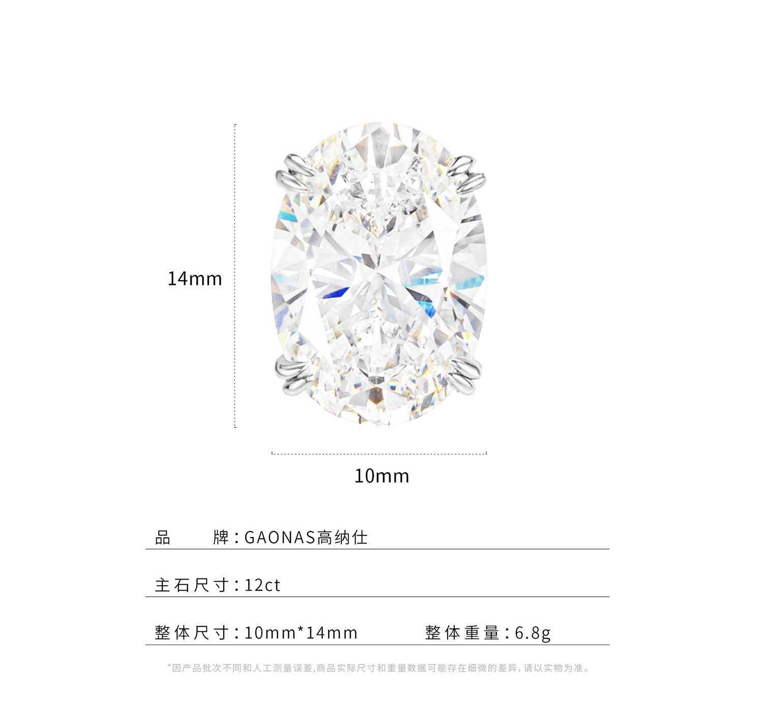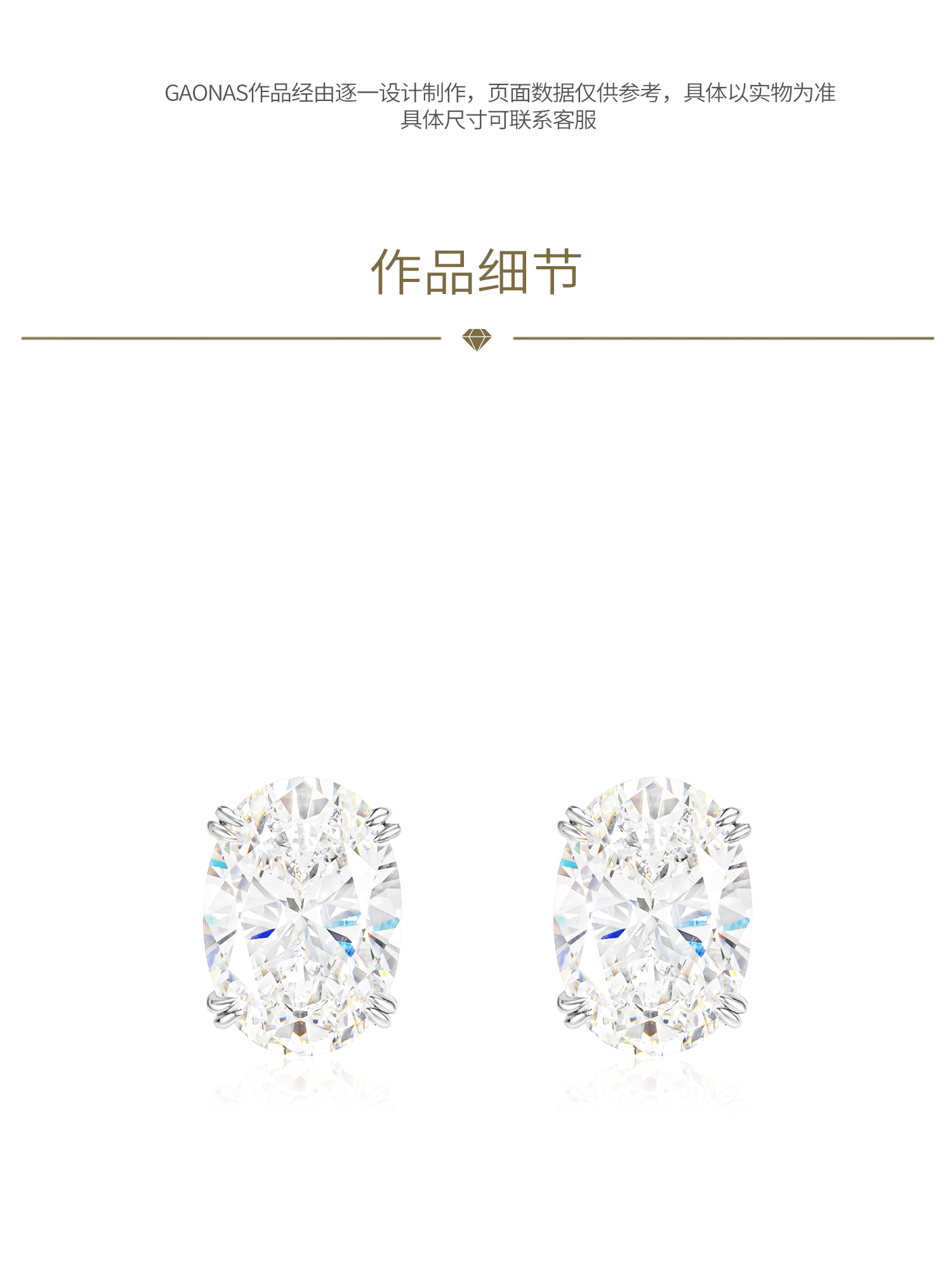 GAONAS 925银合成锆石耳饰 经典时尚臻奢蛋形白色6ct耳钉 11079EW