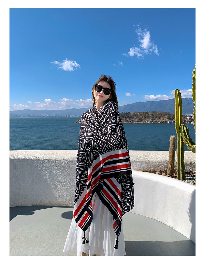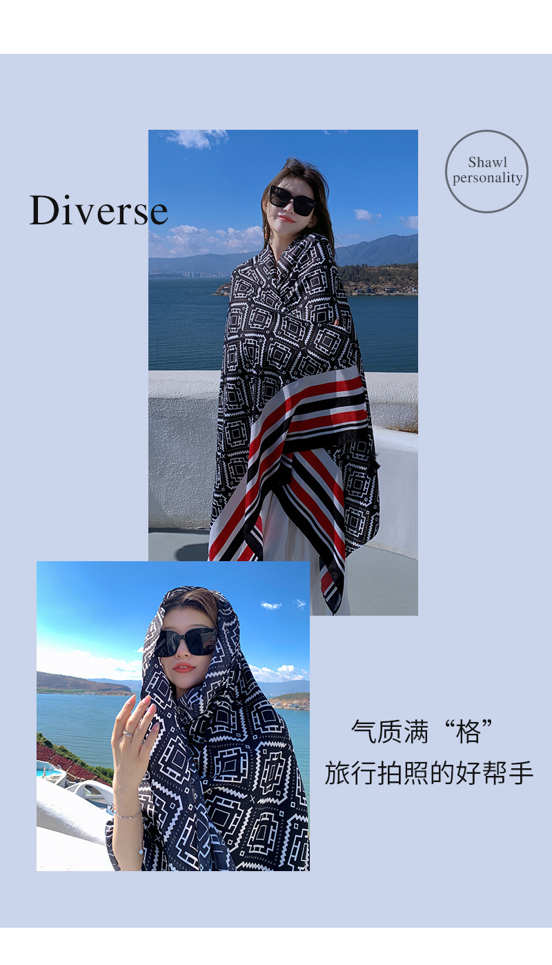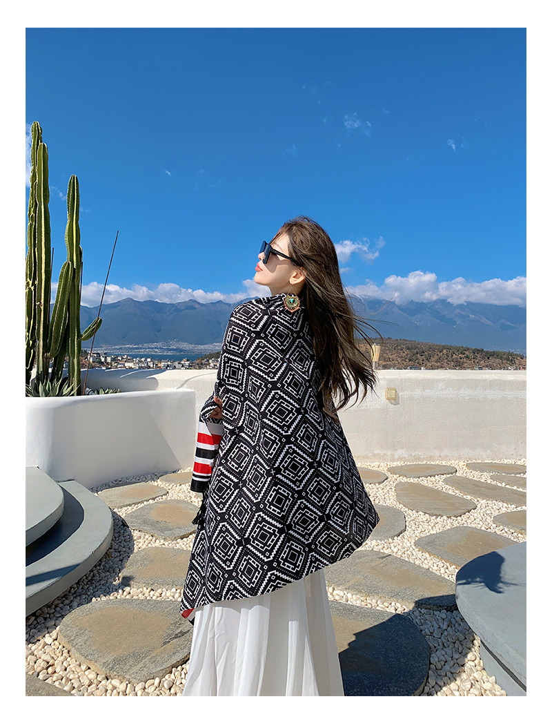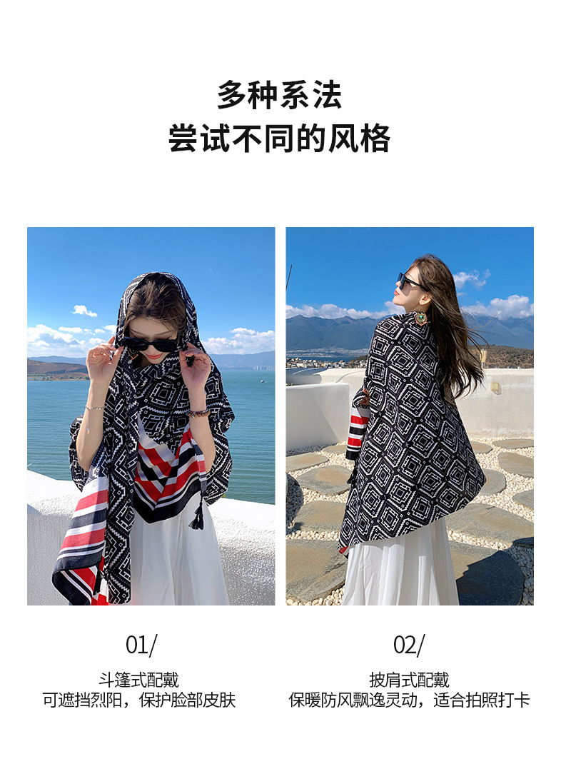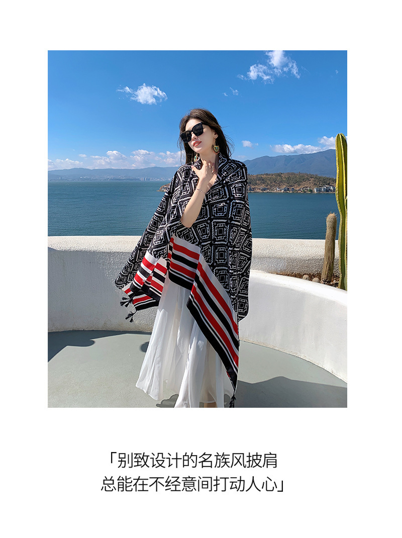 PG0017旅游民族风披肩女波西米亚风百搭斗篷外搭装饰围巾丝巾格纹