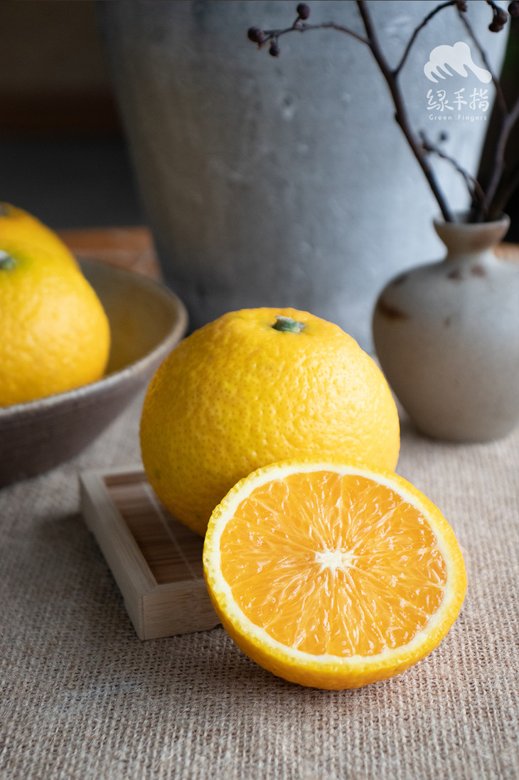 桔柚果肉柔软,味道清甜,汁水饱满,兼具了桔子的甘甜香气和柚子的水嫩爽口。由于皮足够厚,所以能够紧紧锁住水分,桔柚不需要通过打蜡去延长保质期,也可以存放足够长的时间,水分损失少。虽然现在已是桔柚的尾声,只剩下少量果子了,我们还是想要把这颗无酸感的桔分享给大家。