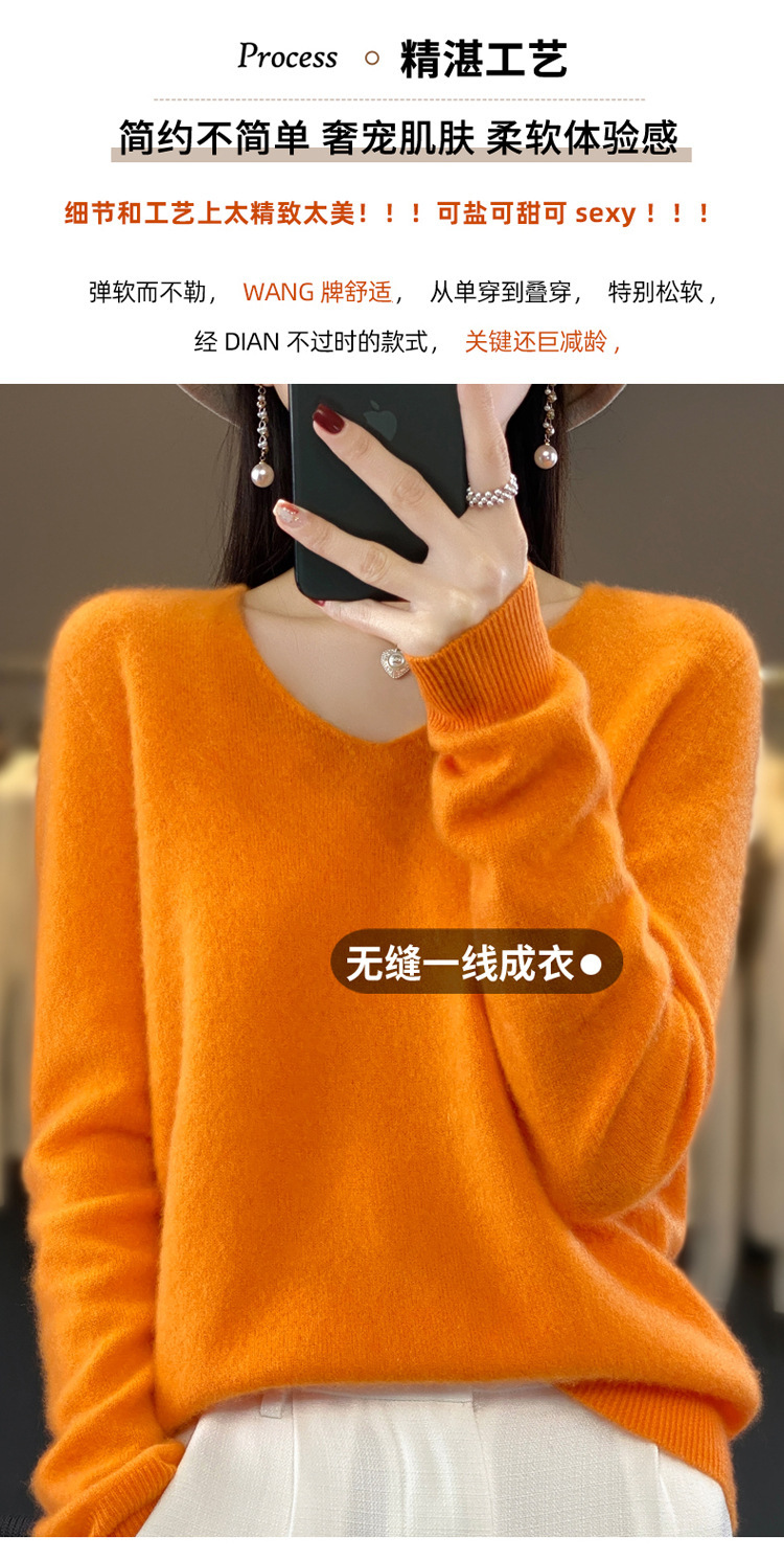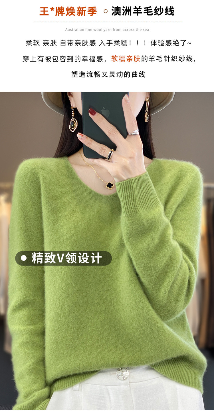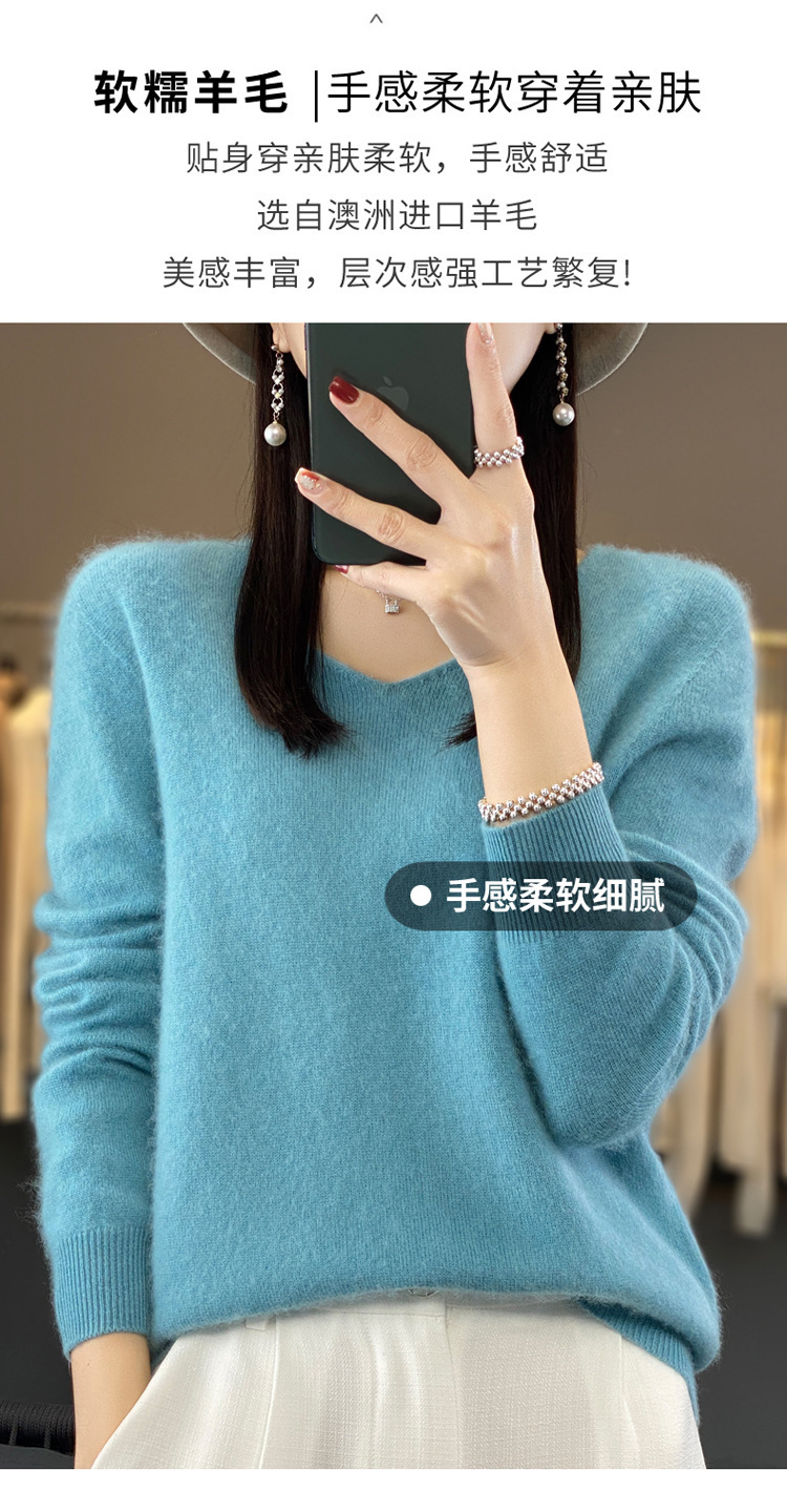 一线成衣纯羊毛2023秋冬新款V字领纯色保暖套头针织打底衫毛衣