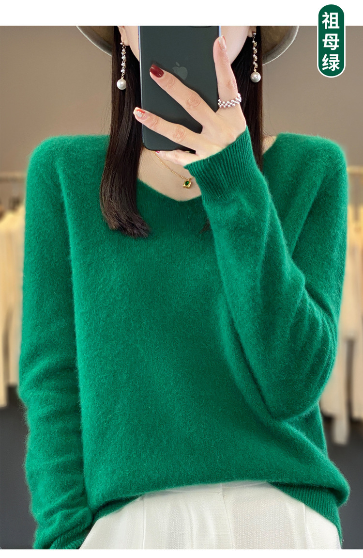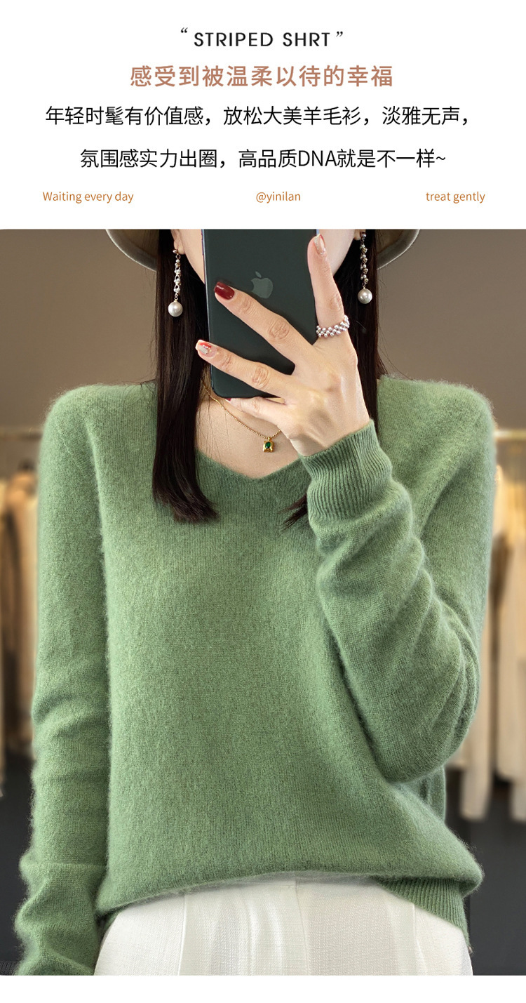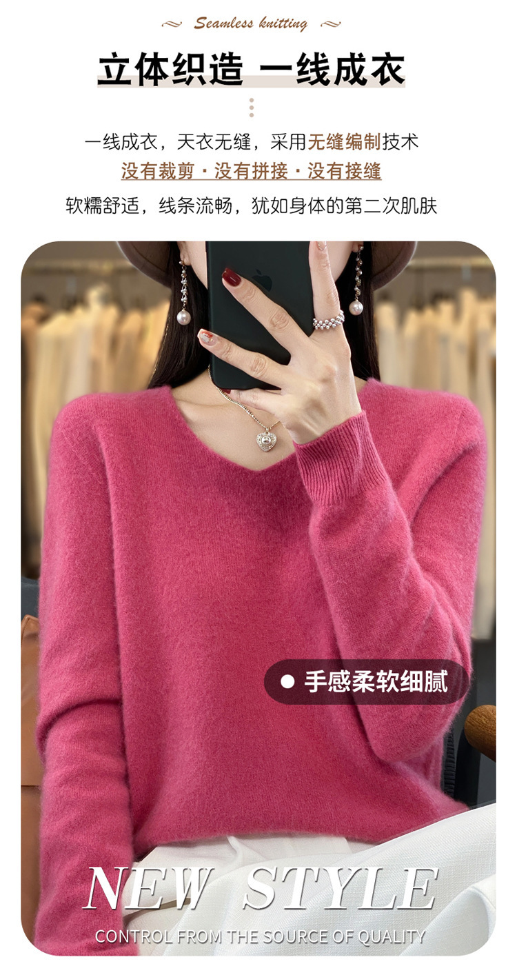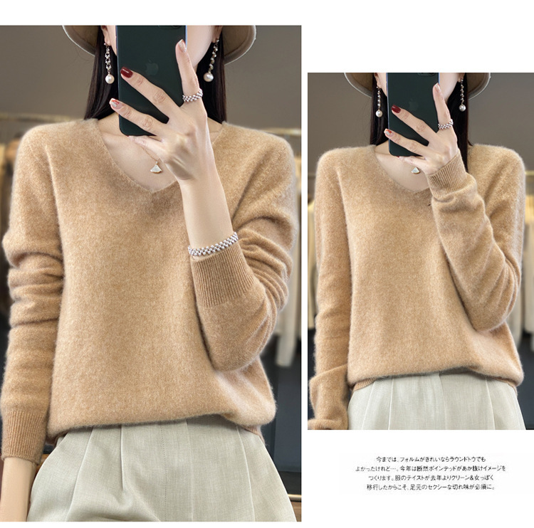 一线成衣纯羊毛2023秋冬新款V字领纯色保暖套头针织打底衫毛衣