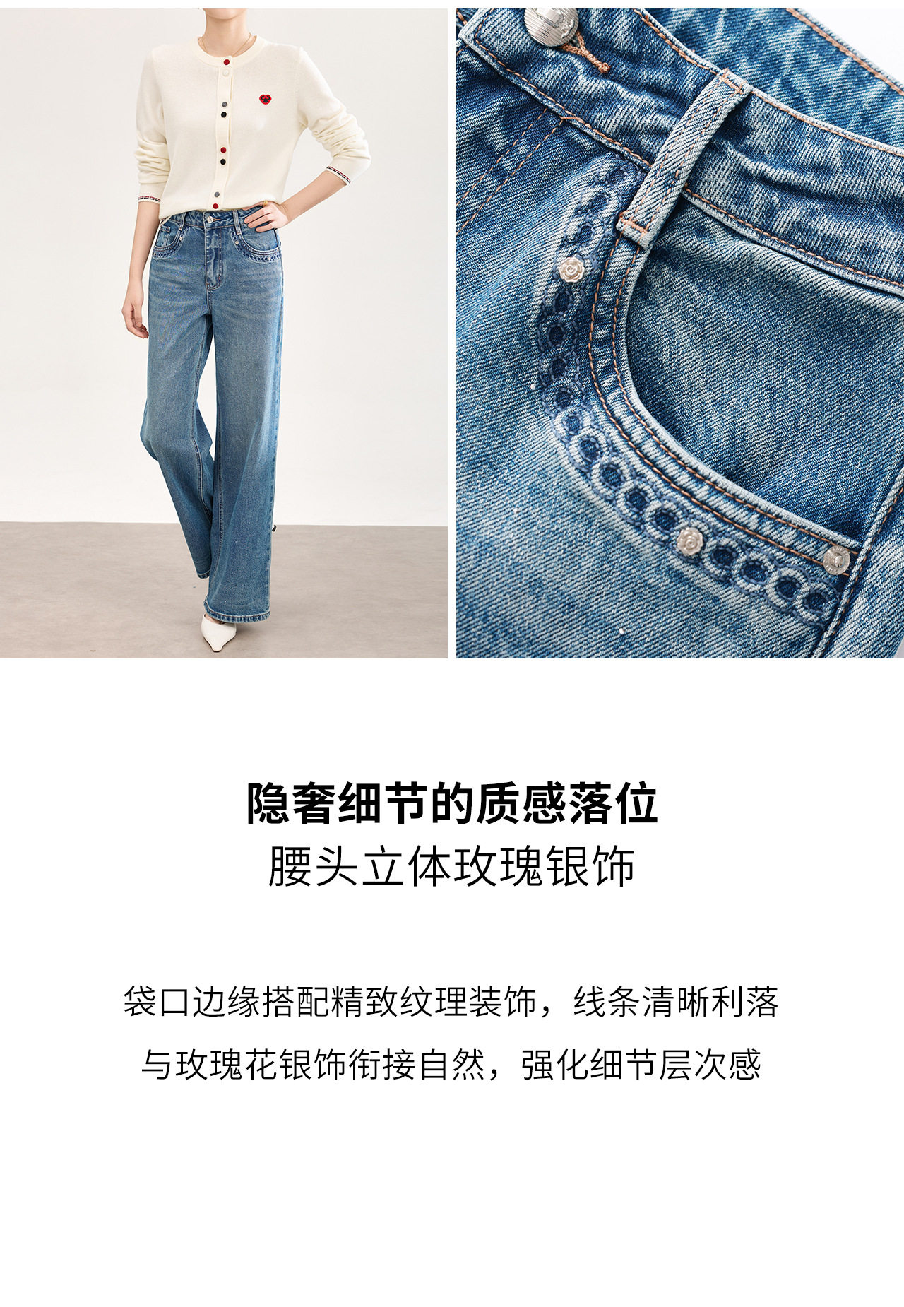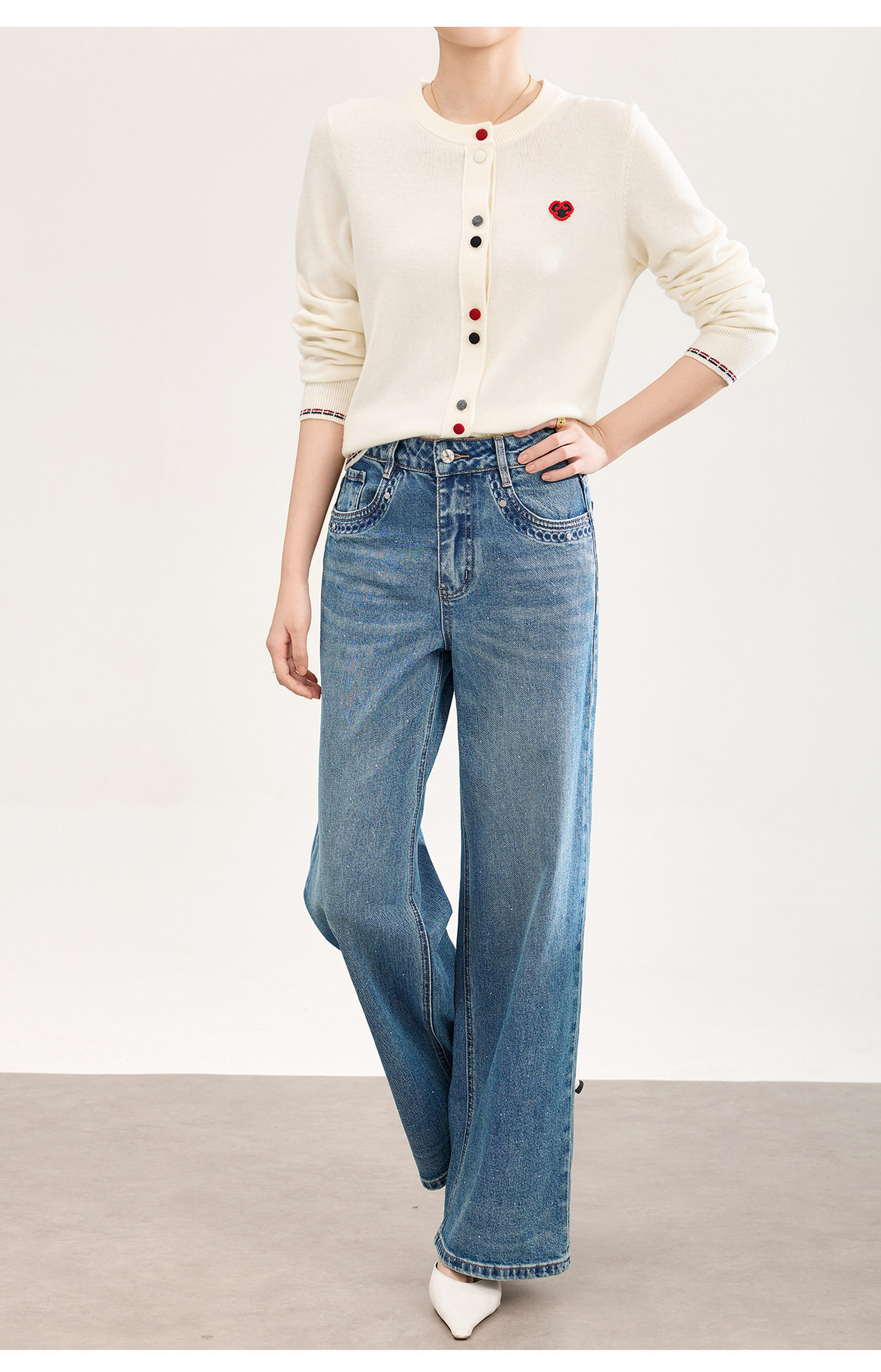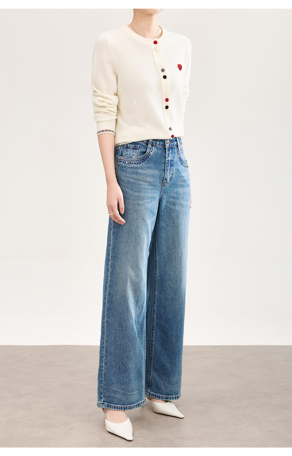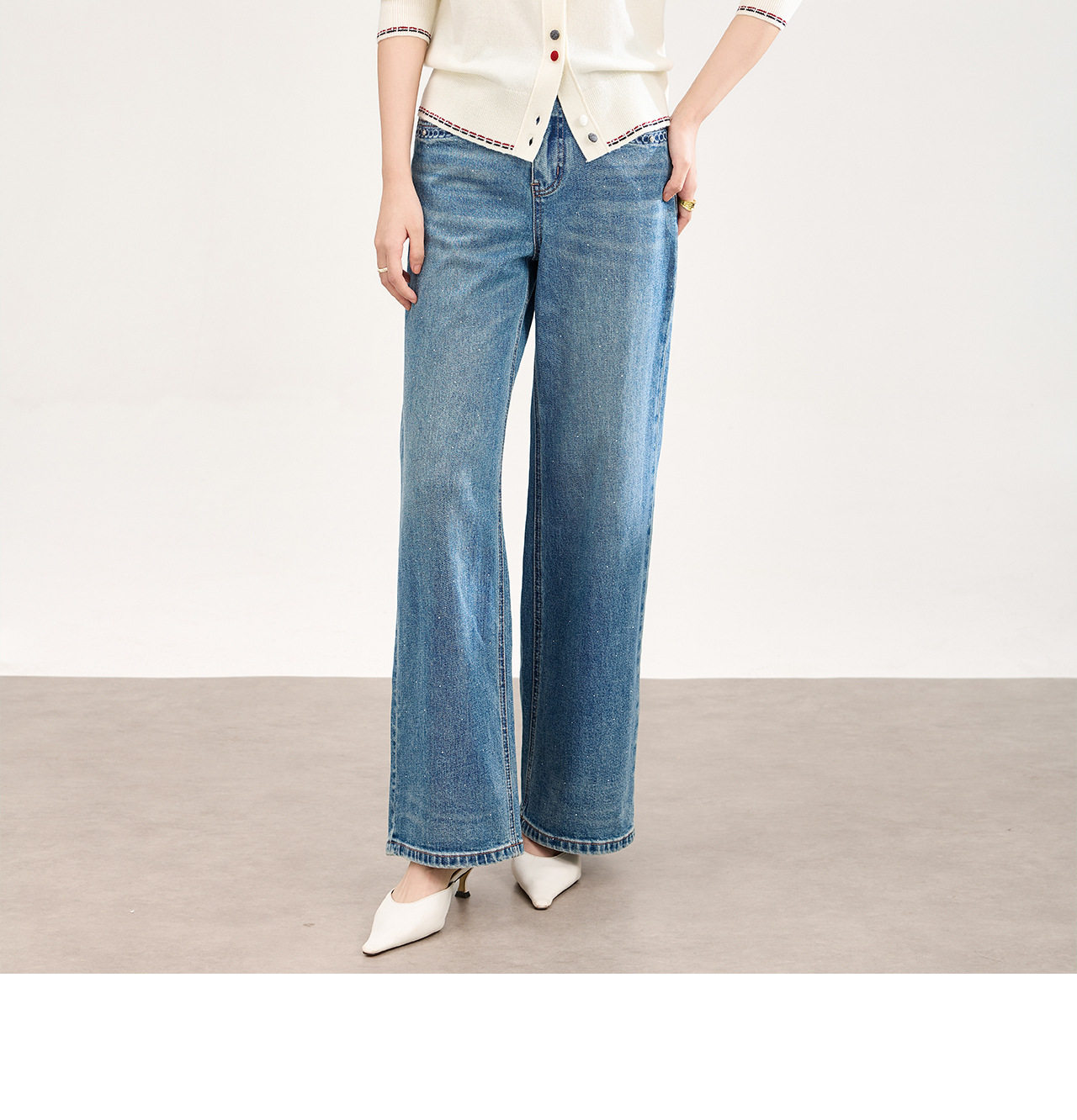 「高货wl」全新升级【铂金会员293/天猫389/差价96】(05559)洛诗琳满天星烫钻磨白牛仔裤2026春季新款宽松阔腿牛仔裤