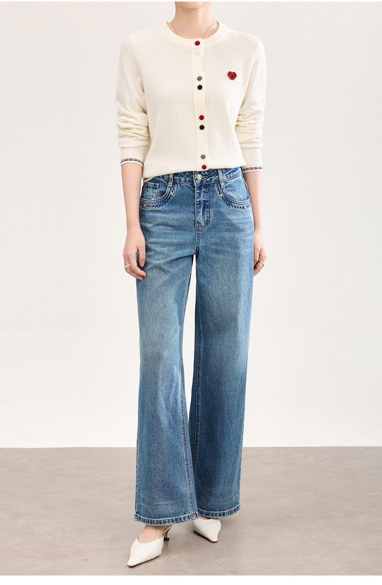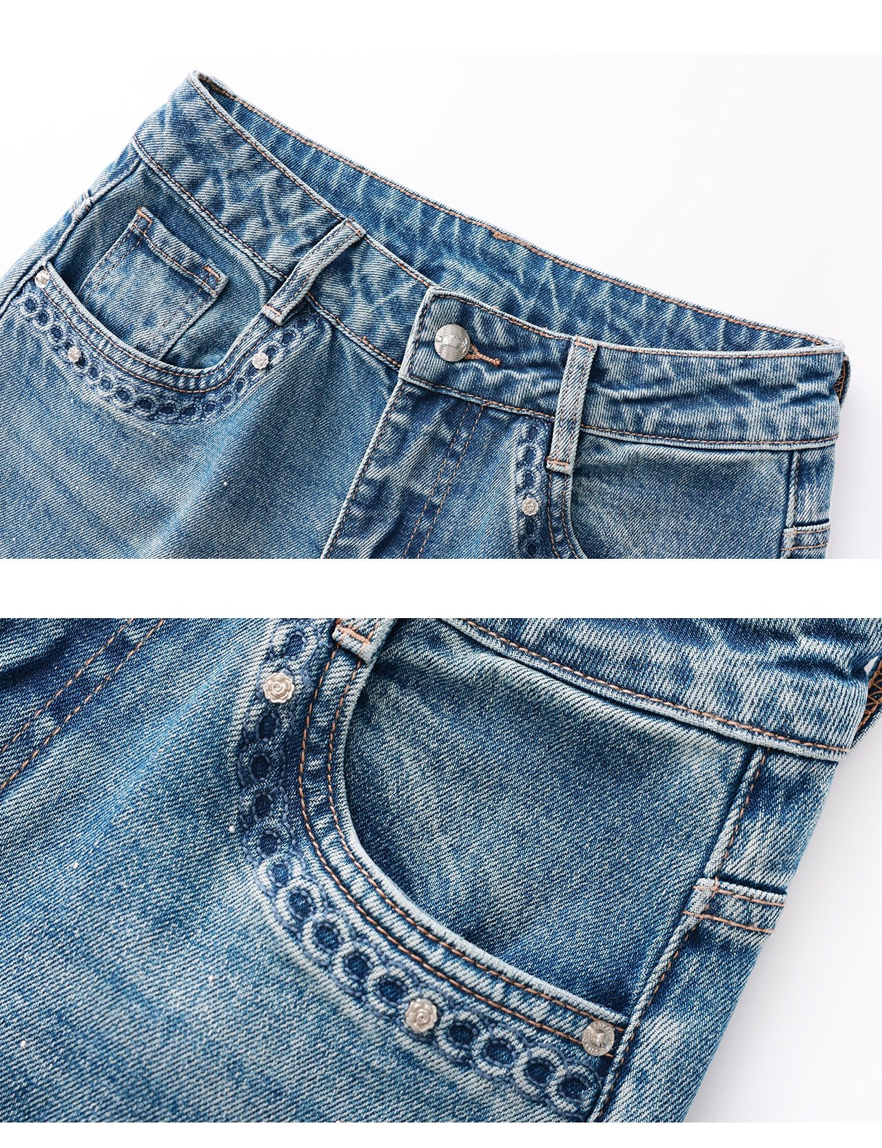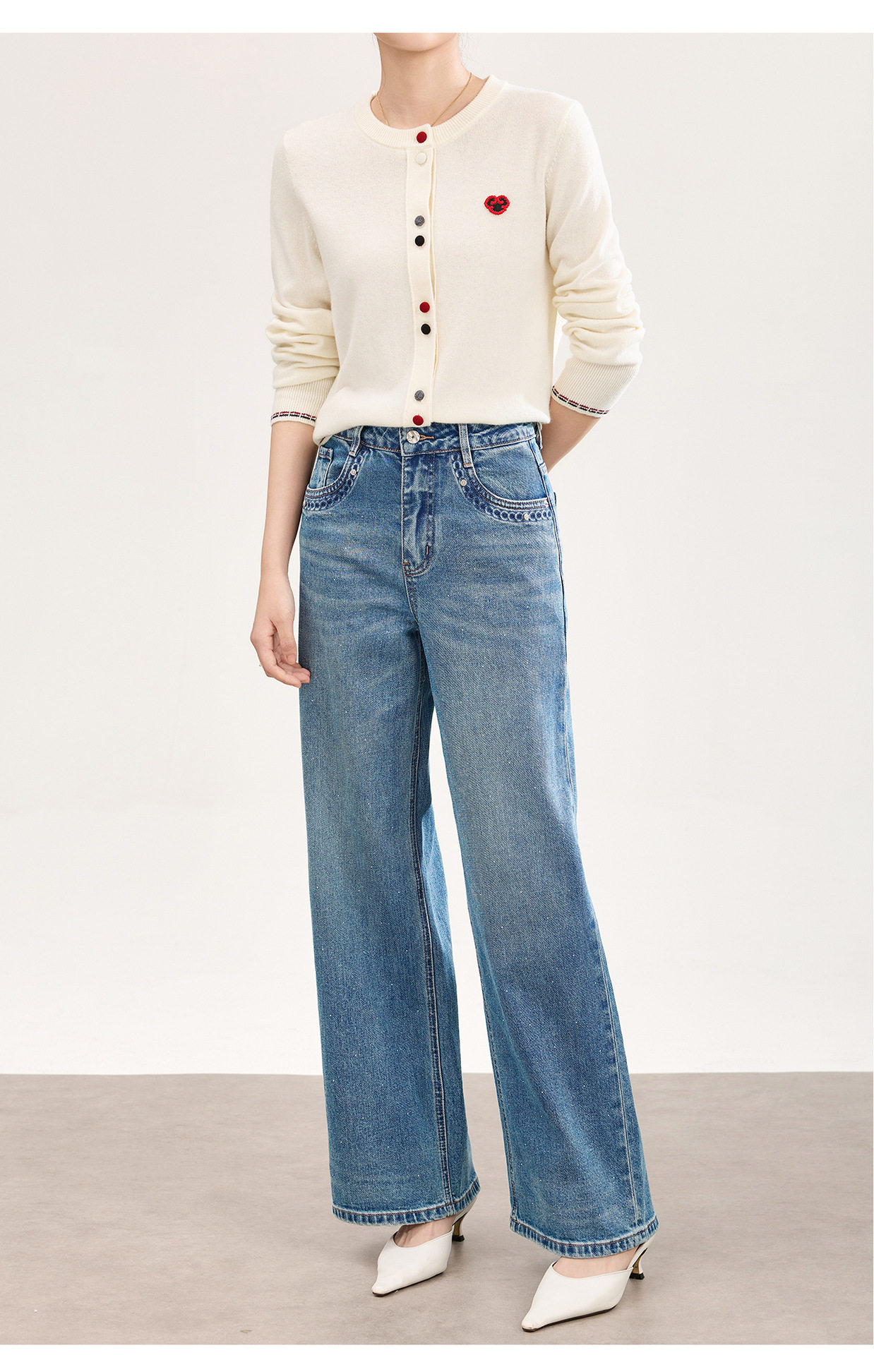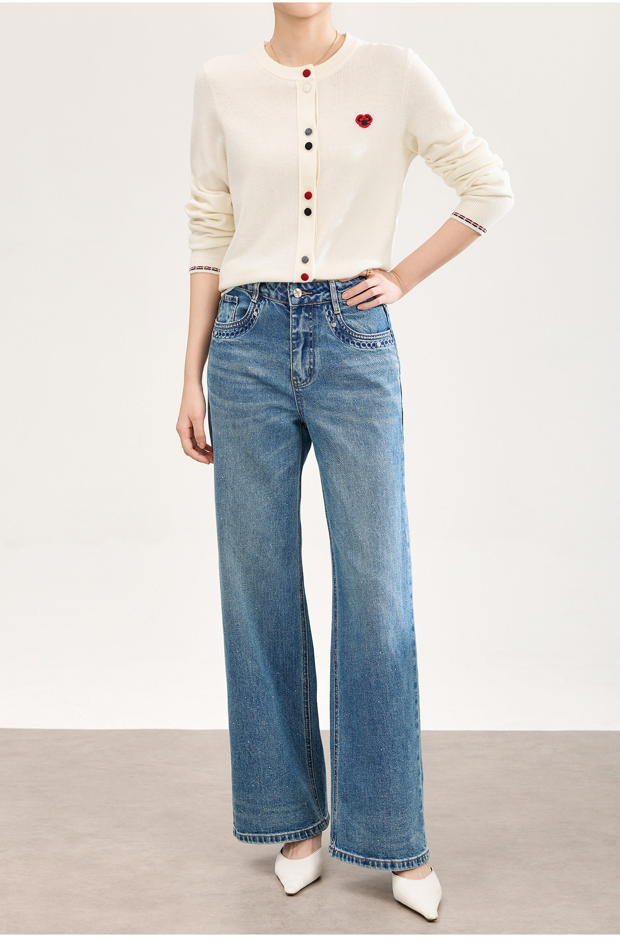 「高货wl」全新升级【铂金会员293/天猫389/差价96】(05559)洛诗琳满天星烫钻磨白牛仔裤2026春季新款宽松阔腿牛仔裤