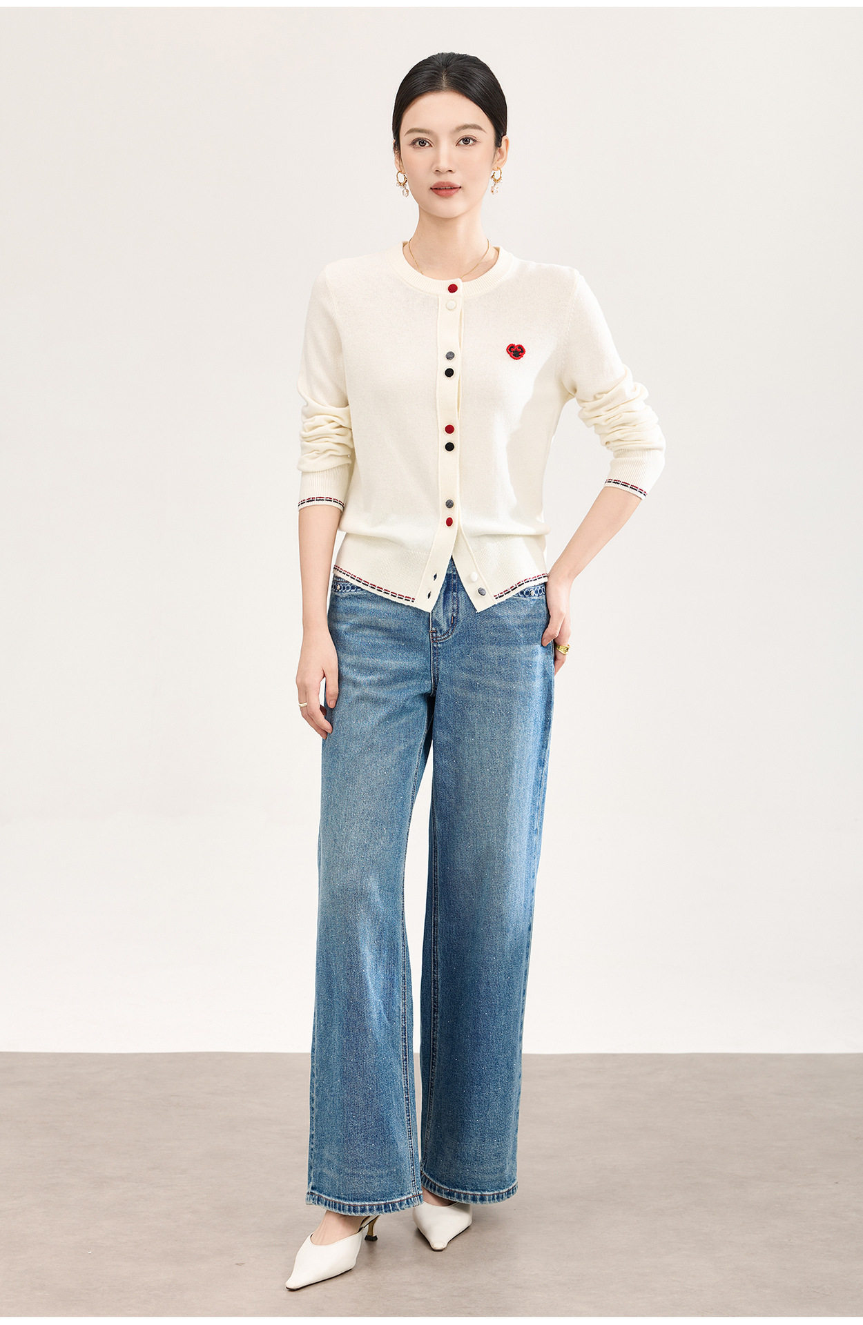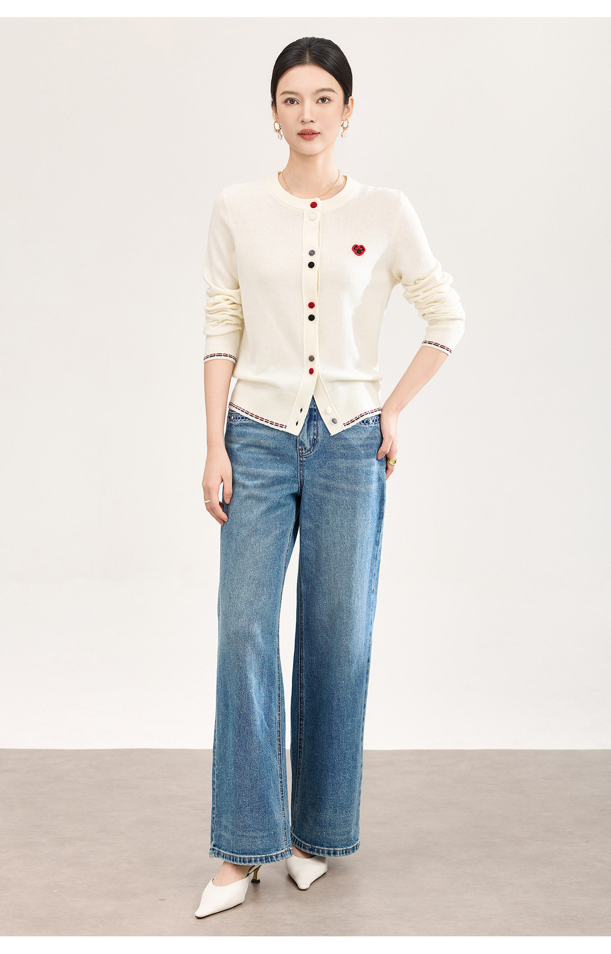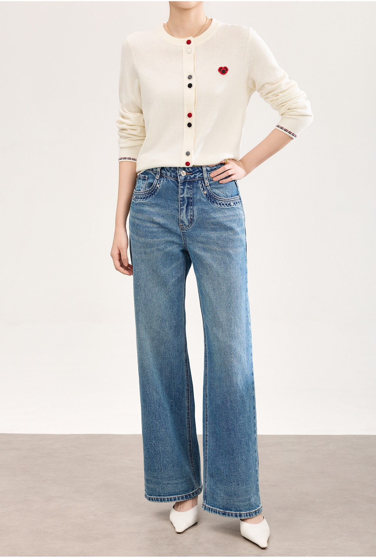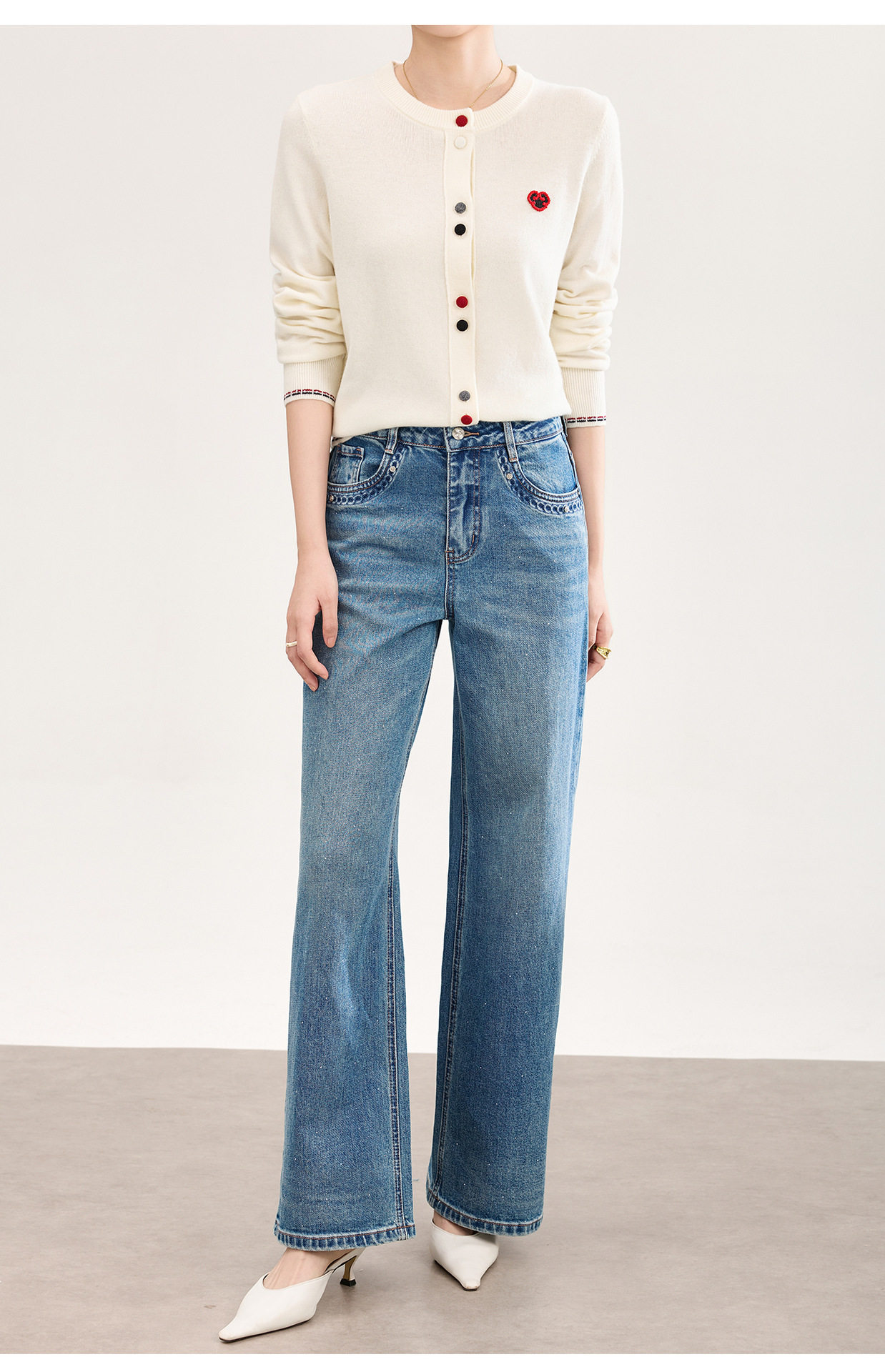 「高货wl」全新升级【铂金会员293/天猫389/差价96】(05559)洛诗琳满天星烫钻磨白牛仔裤2026春季新款宽松阔腿牛仔裤