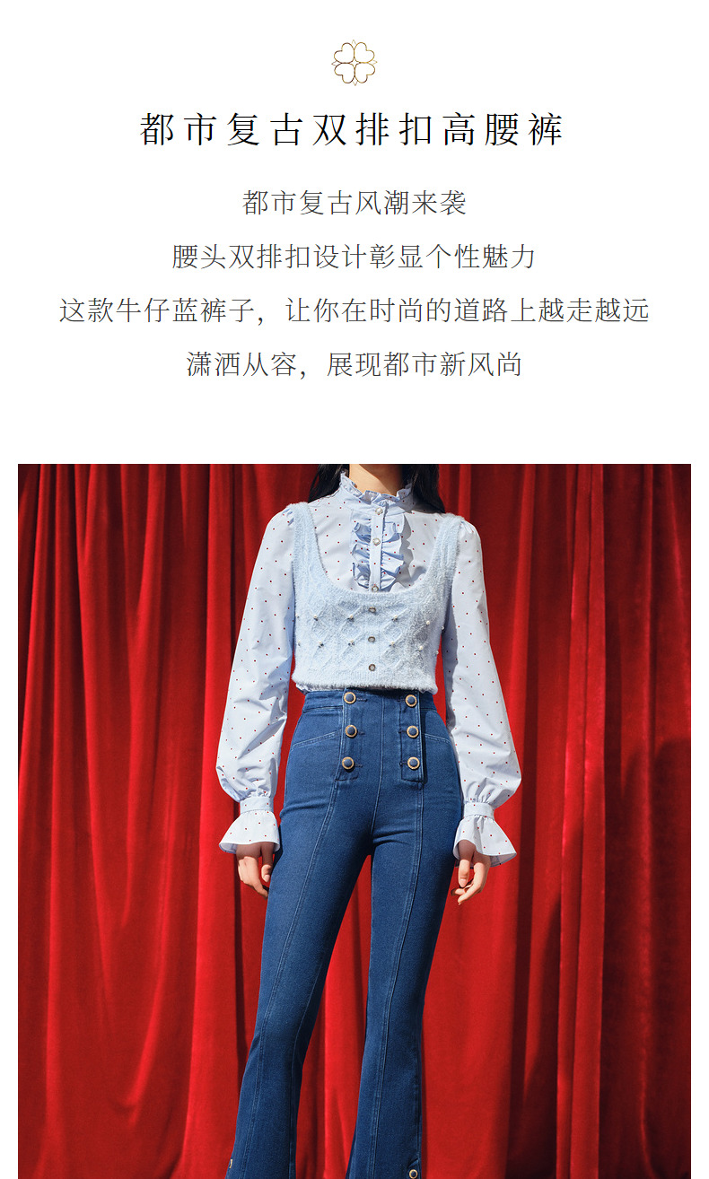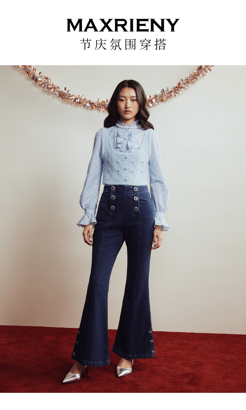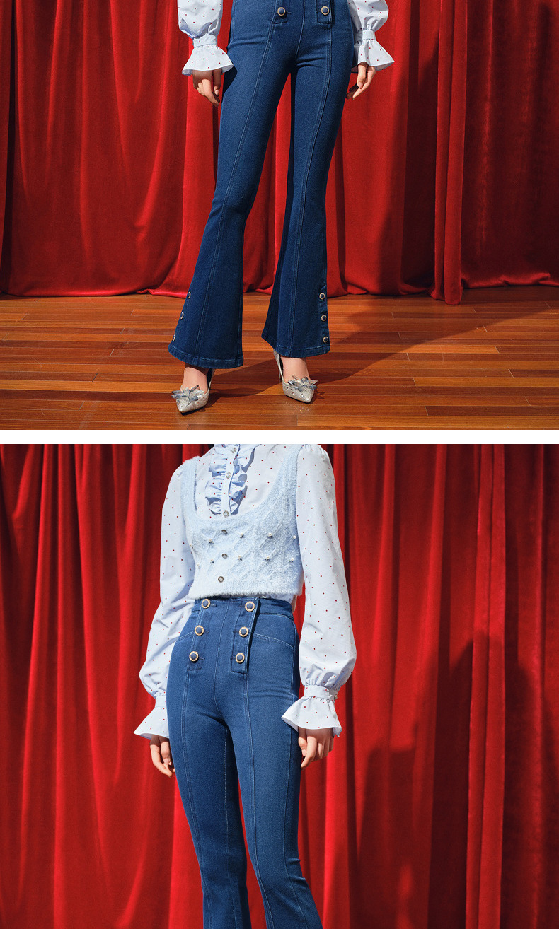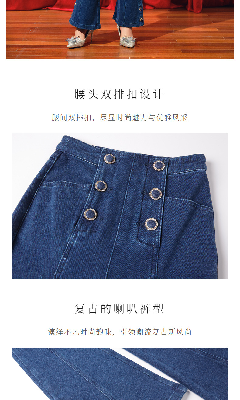 MAXRIENY都市复古感双排扣高腰喇叭牛仔裤(货号:MC88PA770)