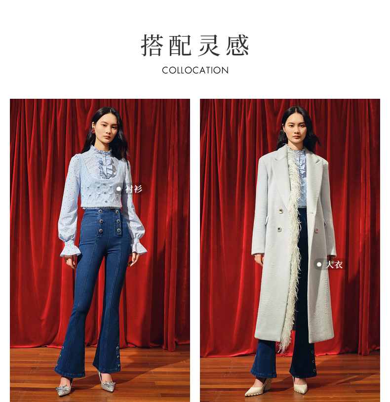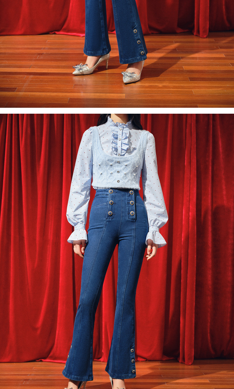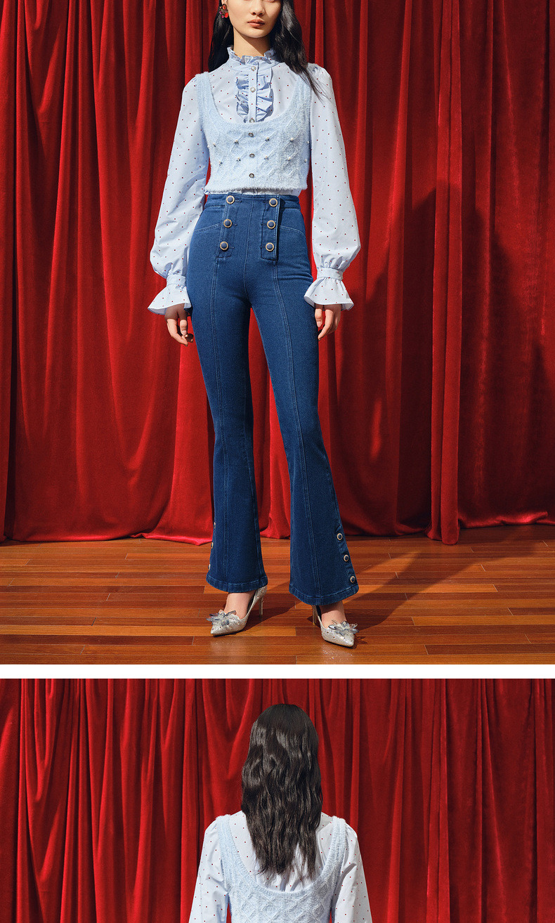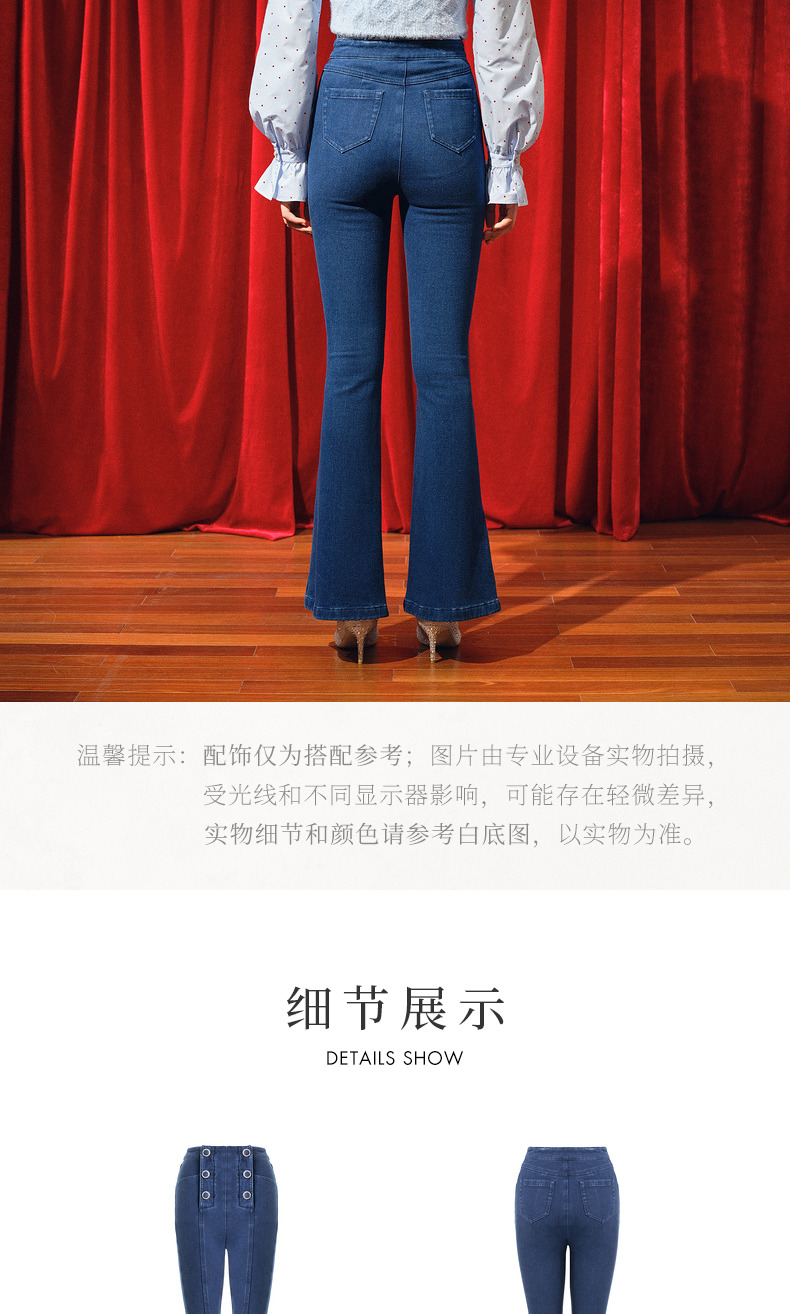 MAXRIENY都市复古感双排扣高腰喇叭牛仔裤(货号:MC88PA770)
