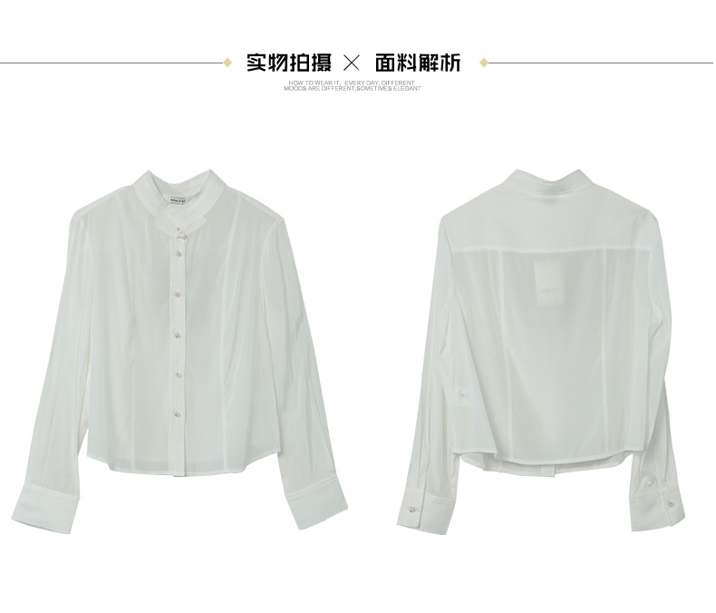 纯欲天花板 白色立领天丝衬衫 微透设计 清新长袖上衣