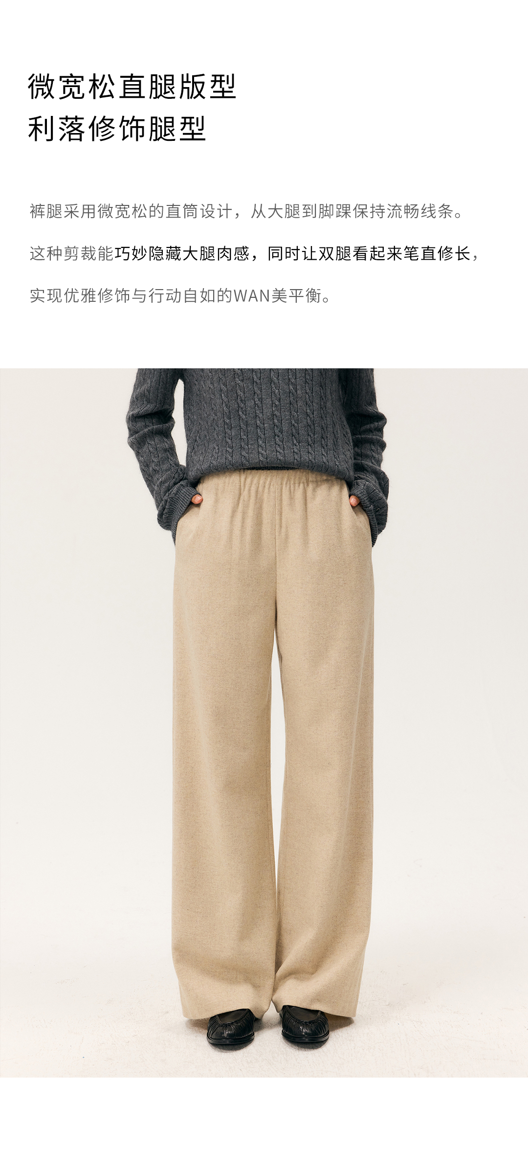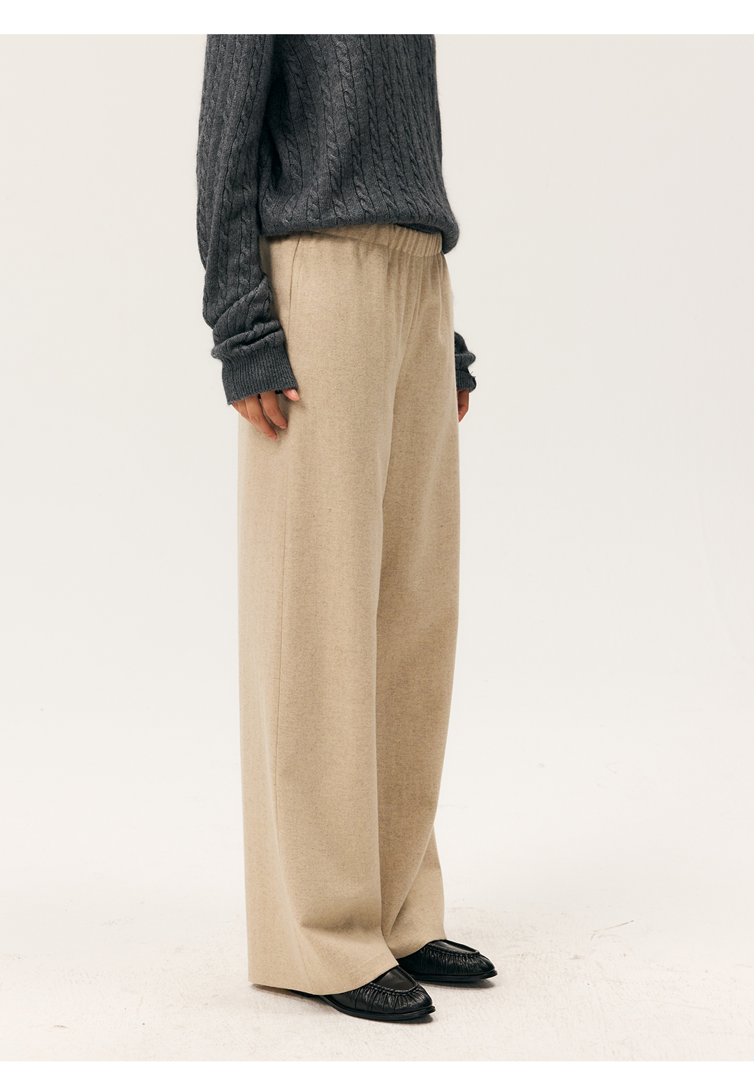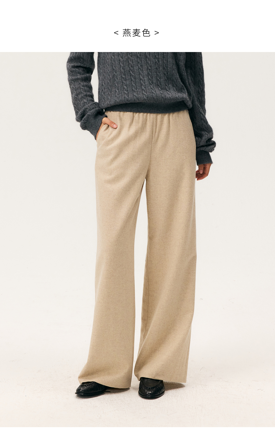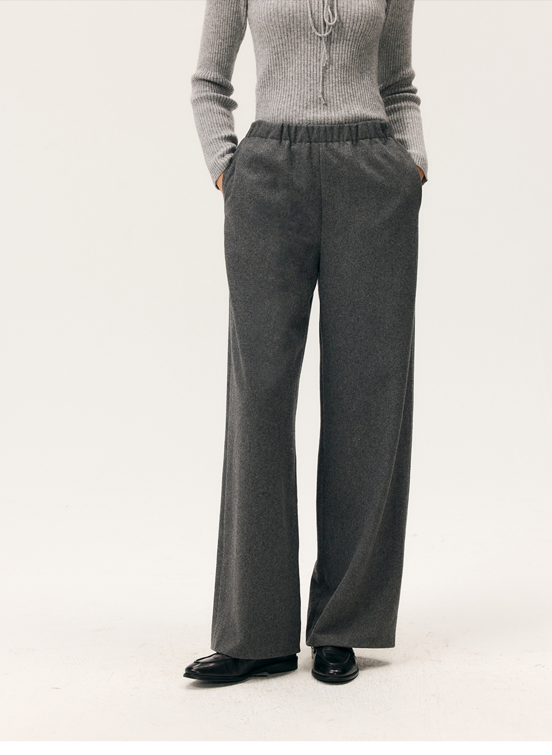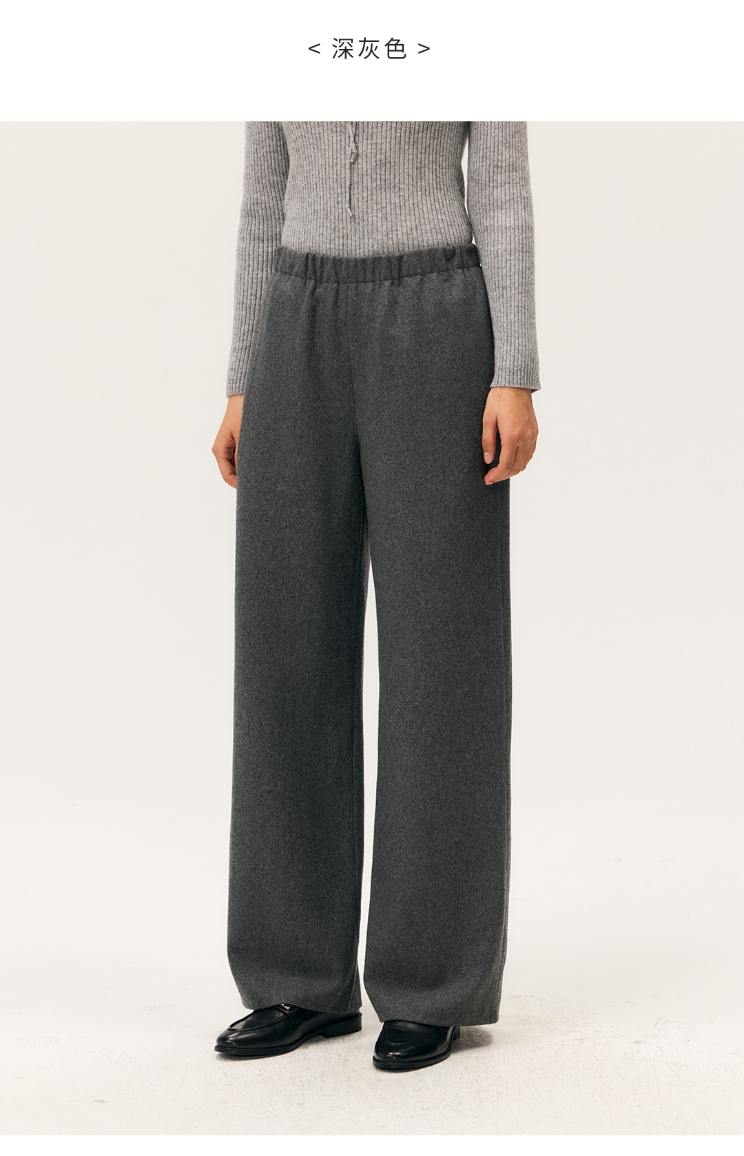 HeyDress羊毛混纺松紧腰毛呢直腿裤