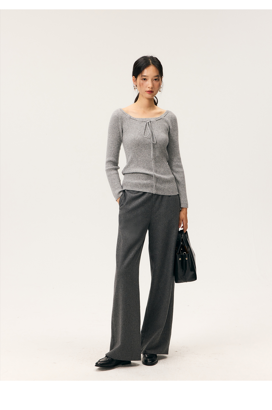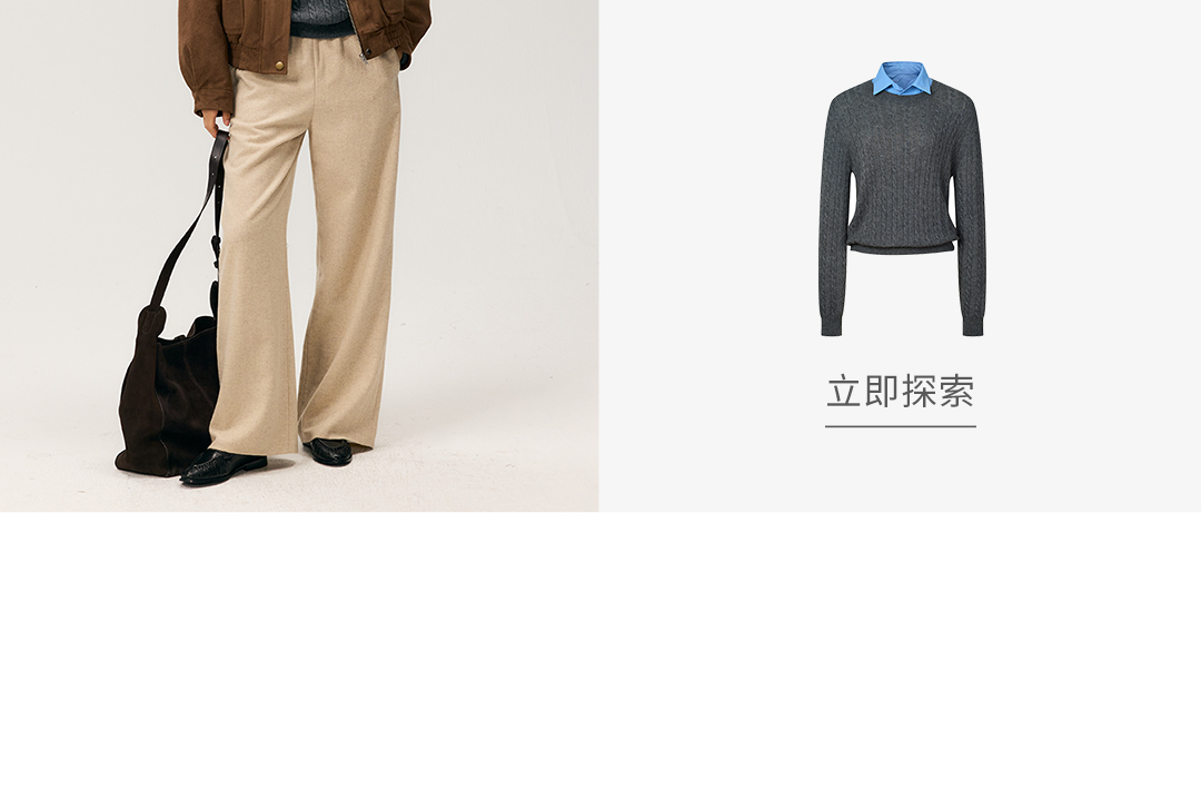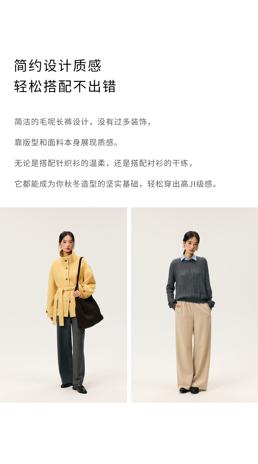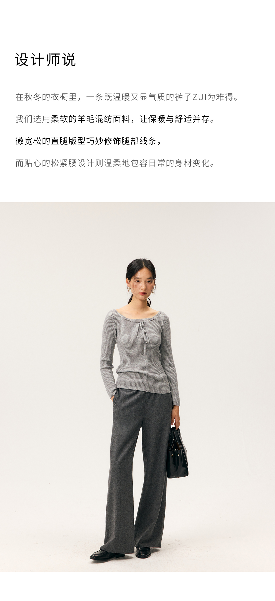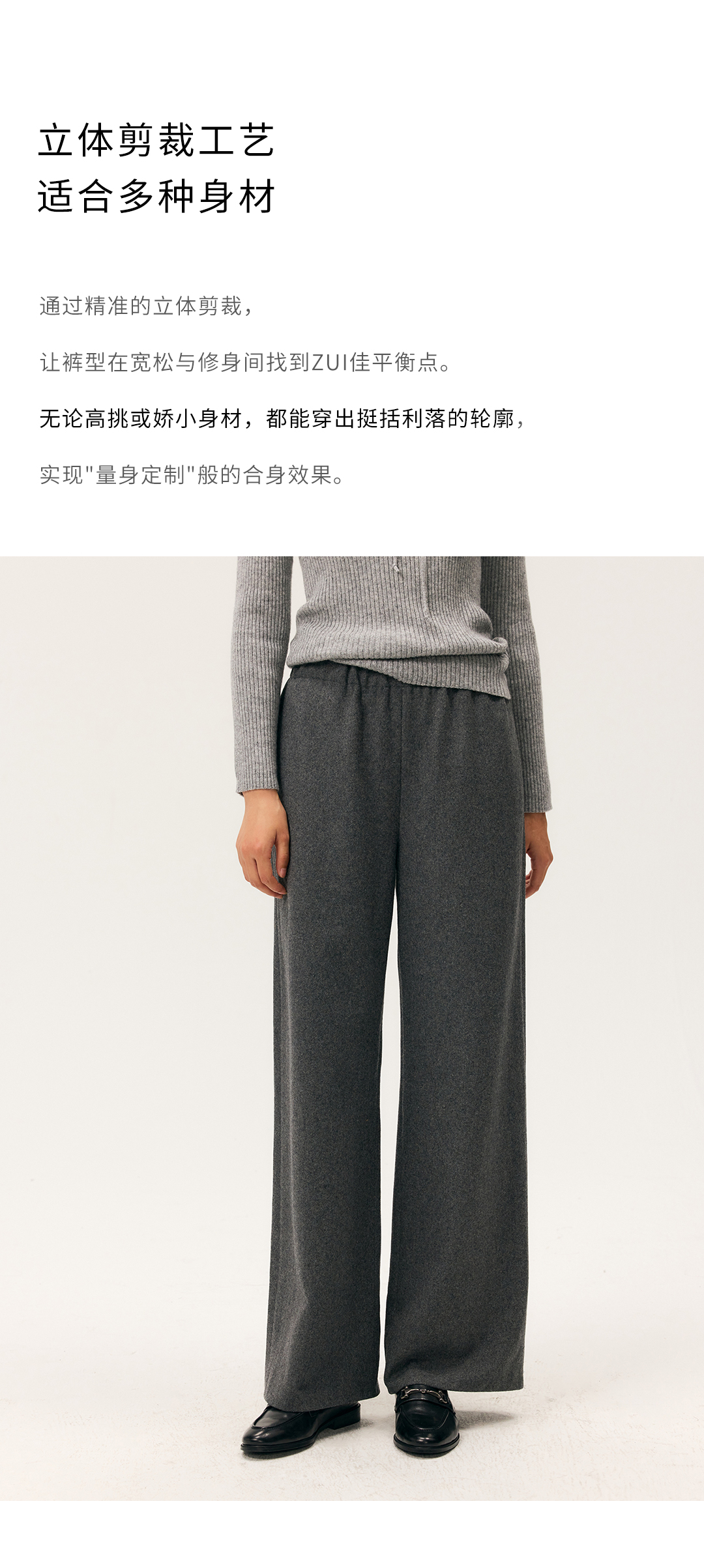 HeyDress羊毛混纺松紧腰毛呢直腿裤