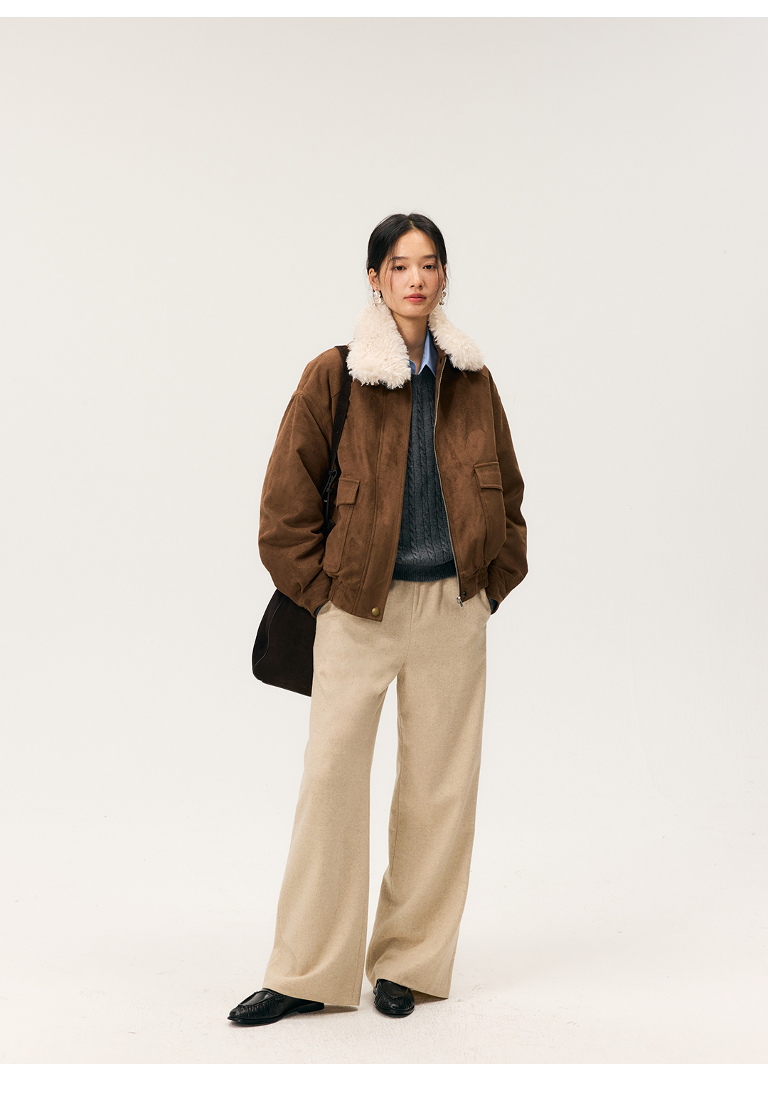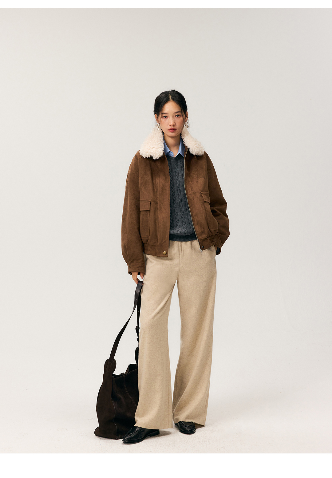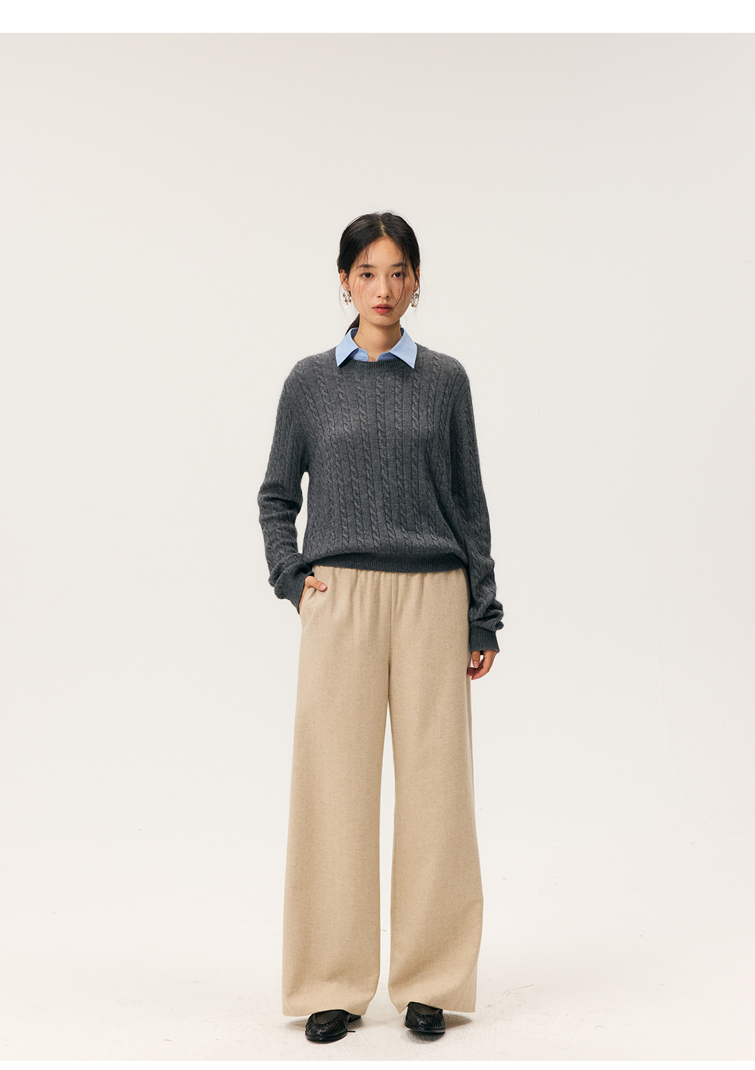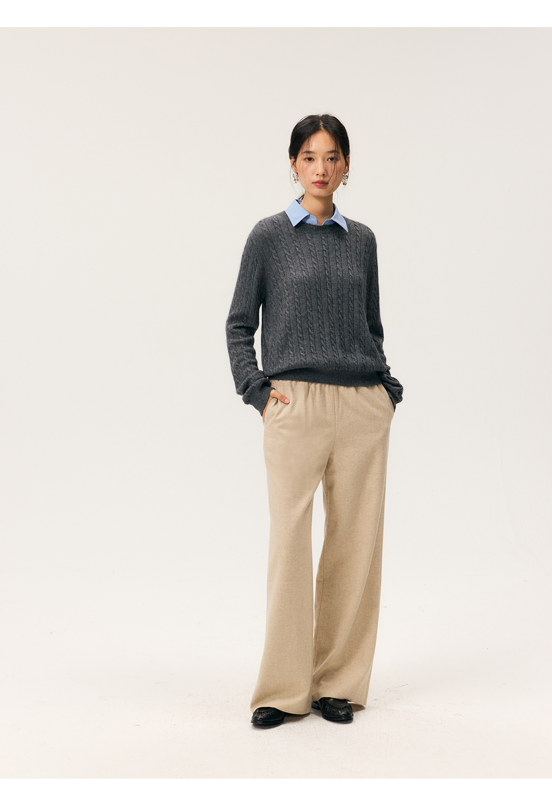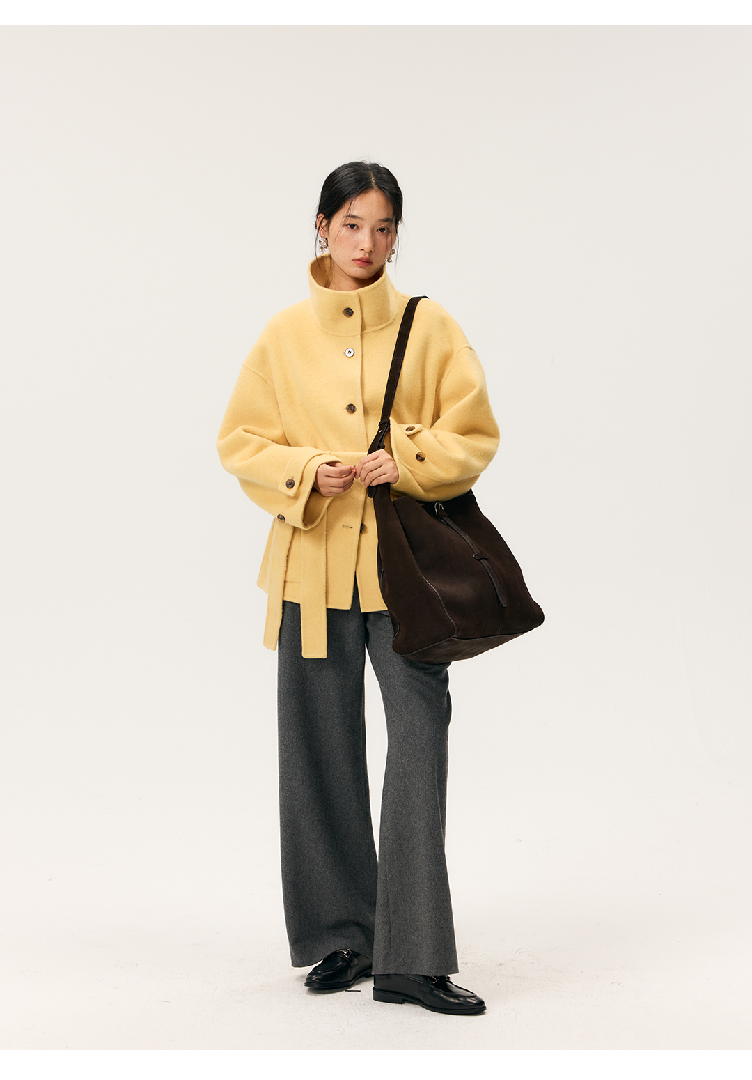 HeyDress羊毛混纺松紧腰毛呢直腿裤