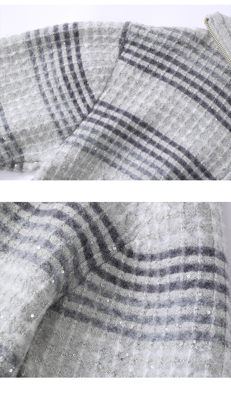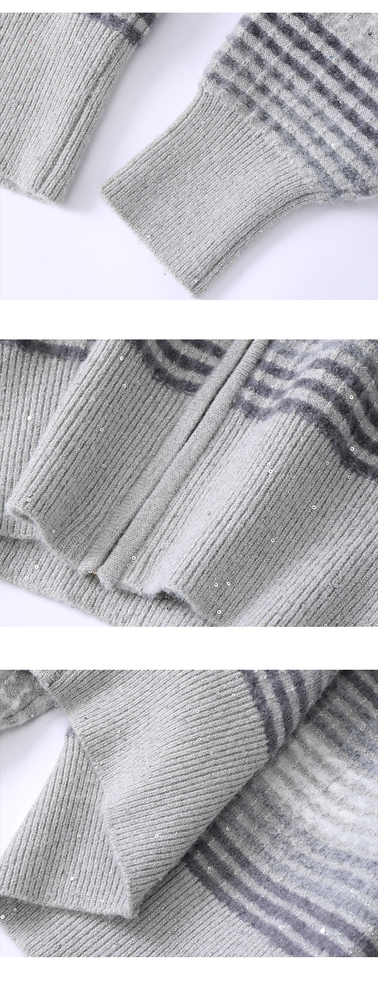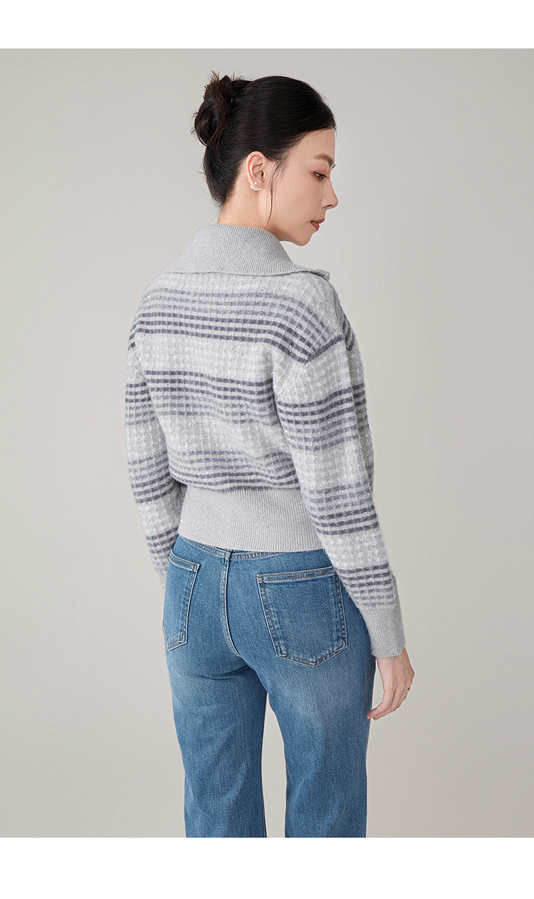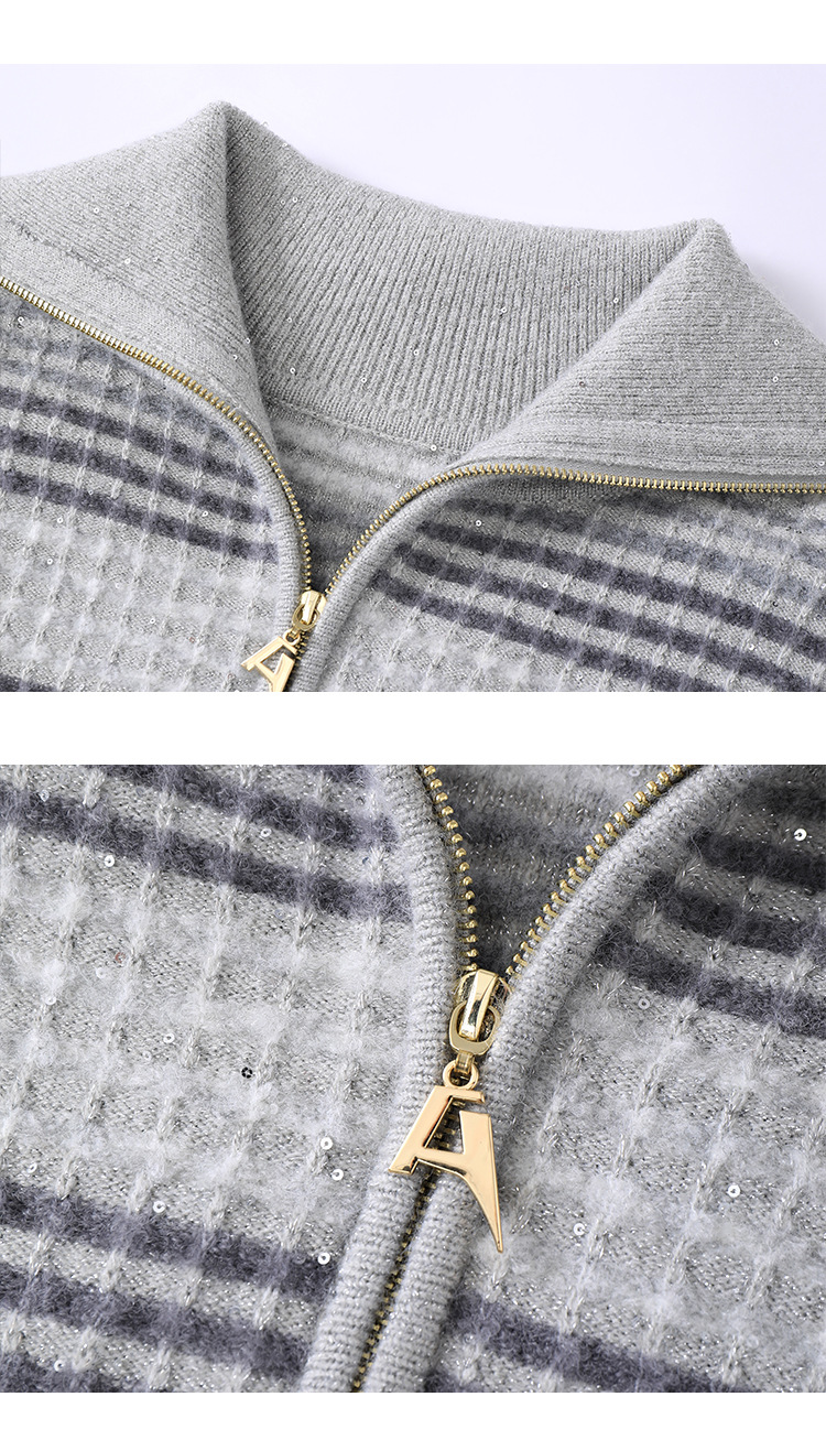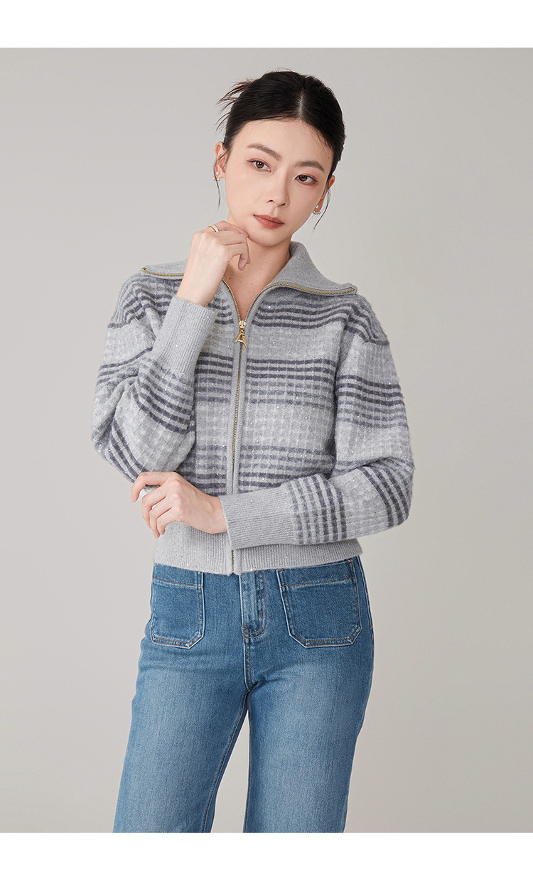 【hrf】全新升级【铂金会员293/天猫399/差价106】(33517) 洛诗琳2024秋季新款休闲时尚羊毛拉链撞色条纹针织衫外套