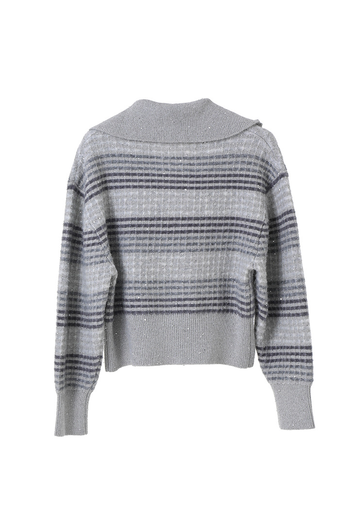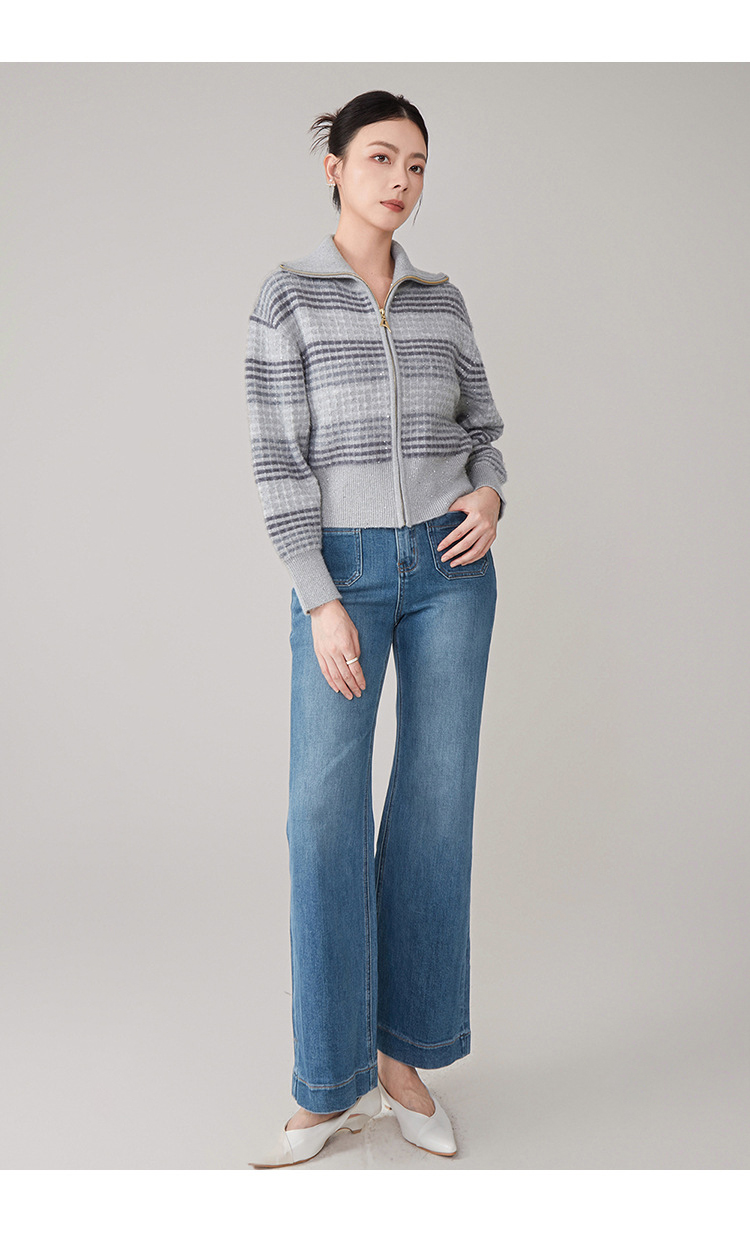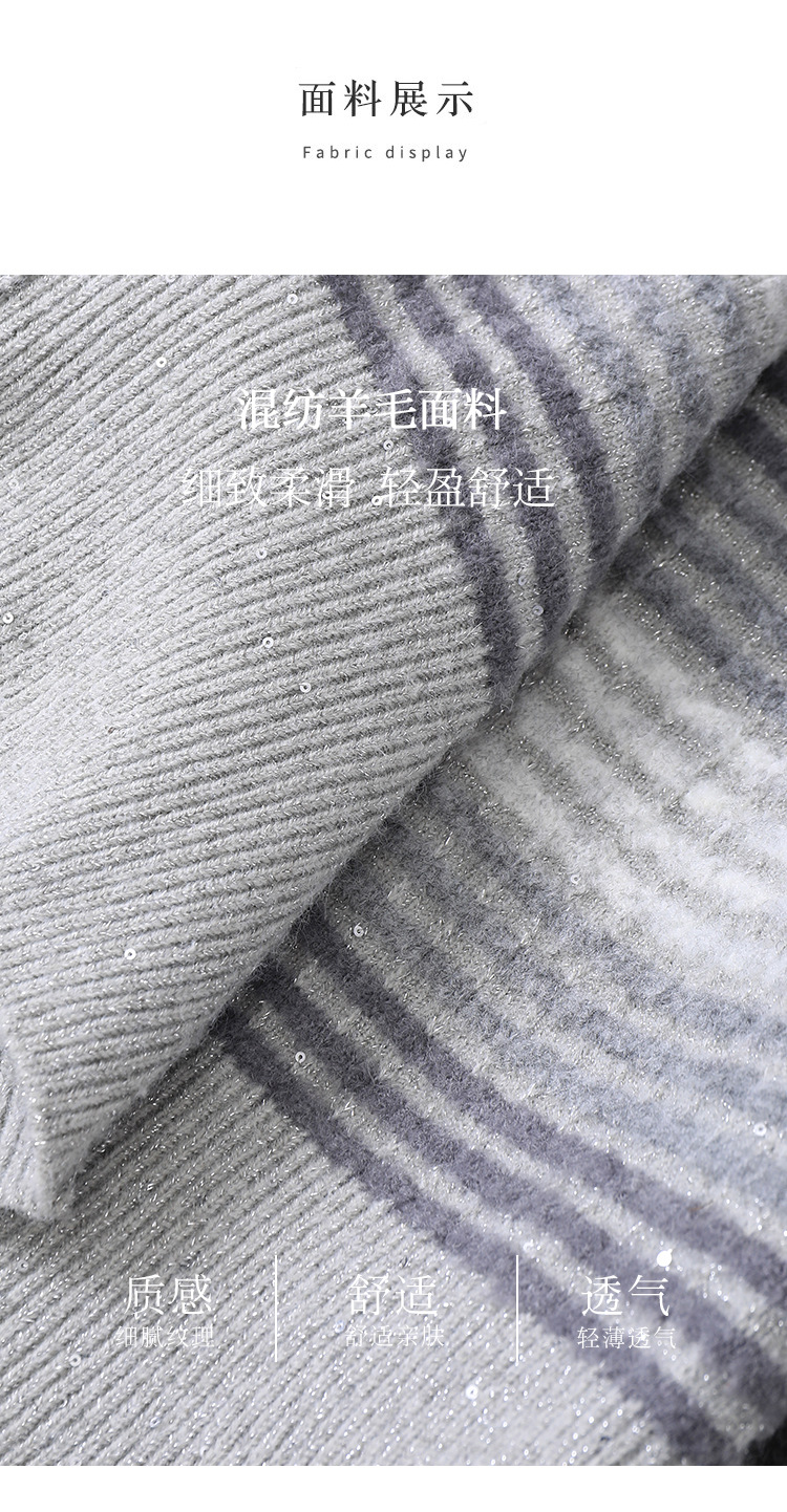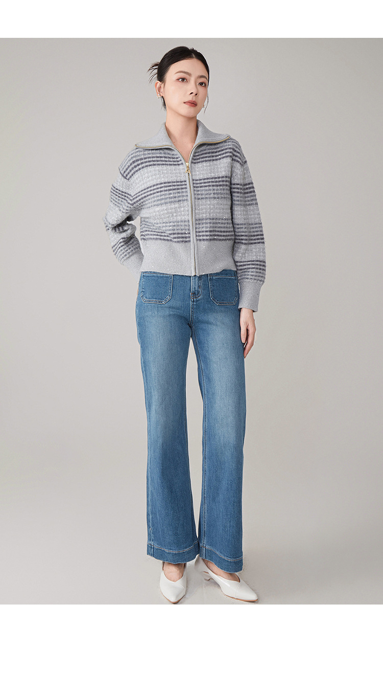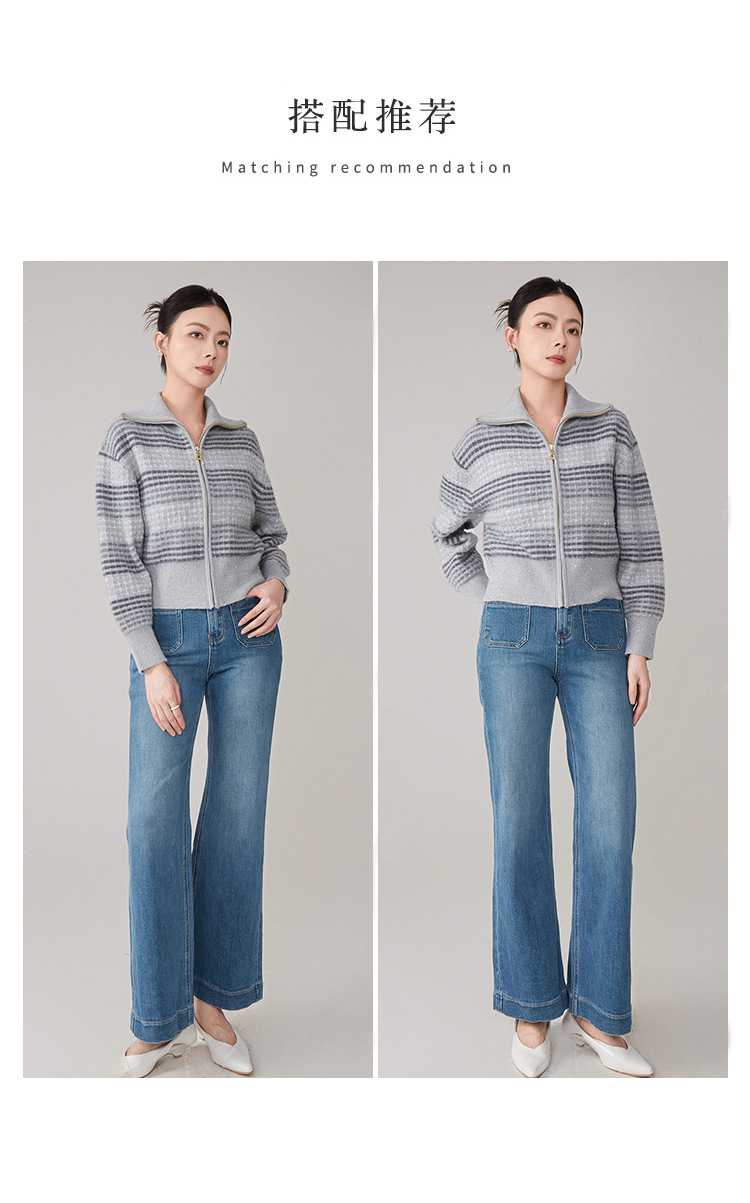 【hrf】全新升级【铂金会员293/天猫399/差价106】(33517) 洛诗琳2024秋季新款休闲时尚羊毛拉链撞色条纹针织衫外套