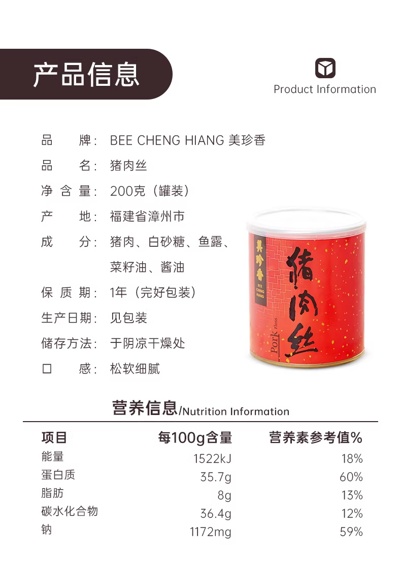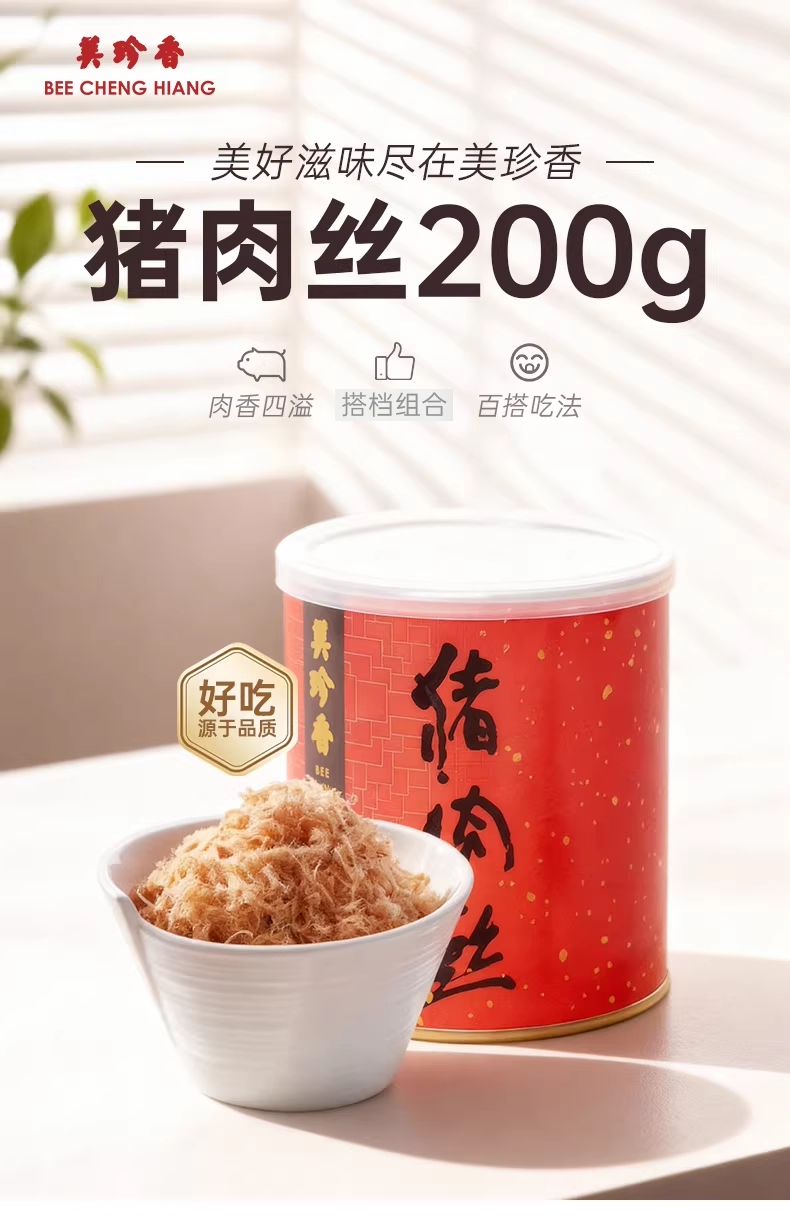 美珍香脆猪肉松180g新加坡特产寿司烘焙香脆可口即食零食罐装锁味