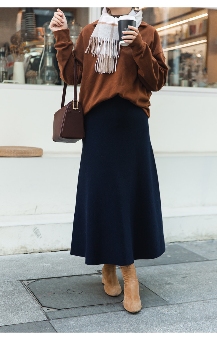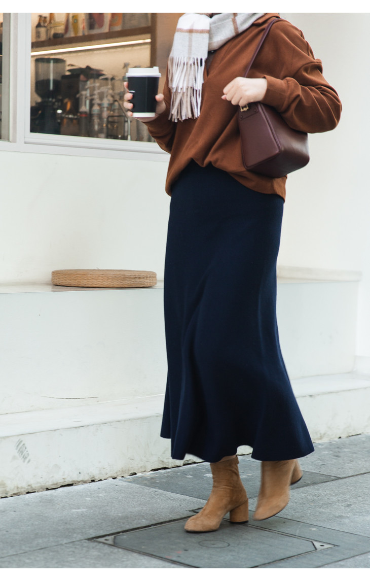 这是一条经典的高腰中长裙针织A字版半裙。