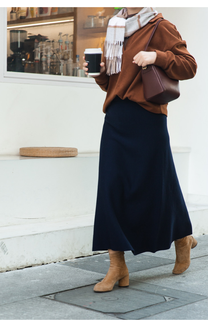 【关于版型搭配】对梨形身材特别友好,如果是H版针织会凸显我们腹部及臀部脂肪。A字版就轻松避免这些尴尬。
