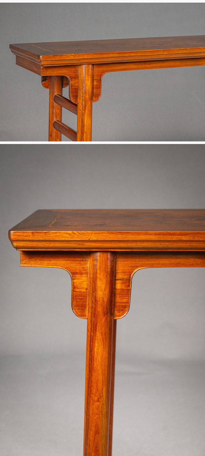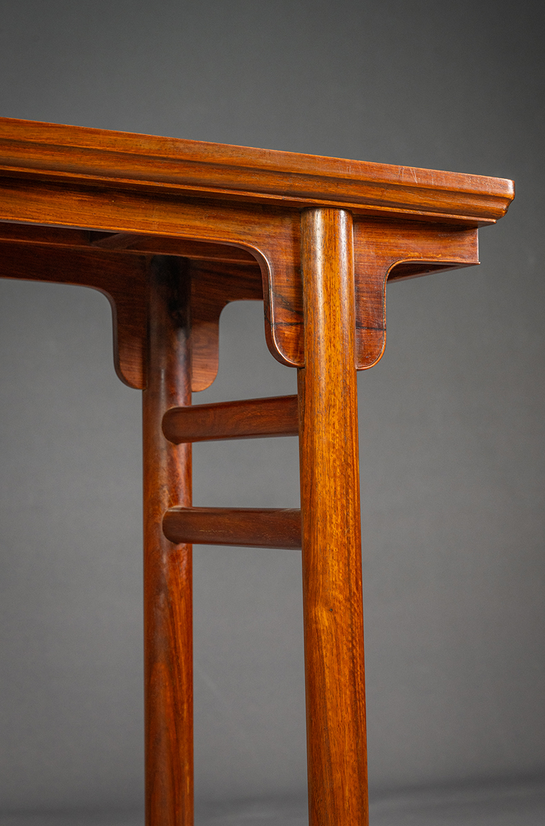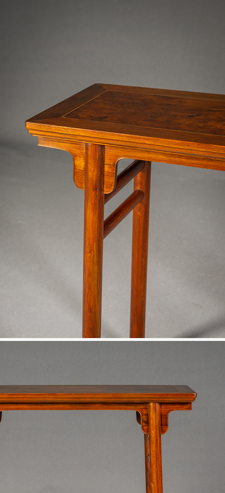 红木镶瘿木面夹头榫刀牙板平头案