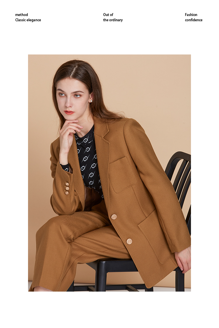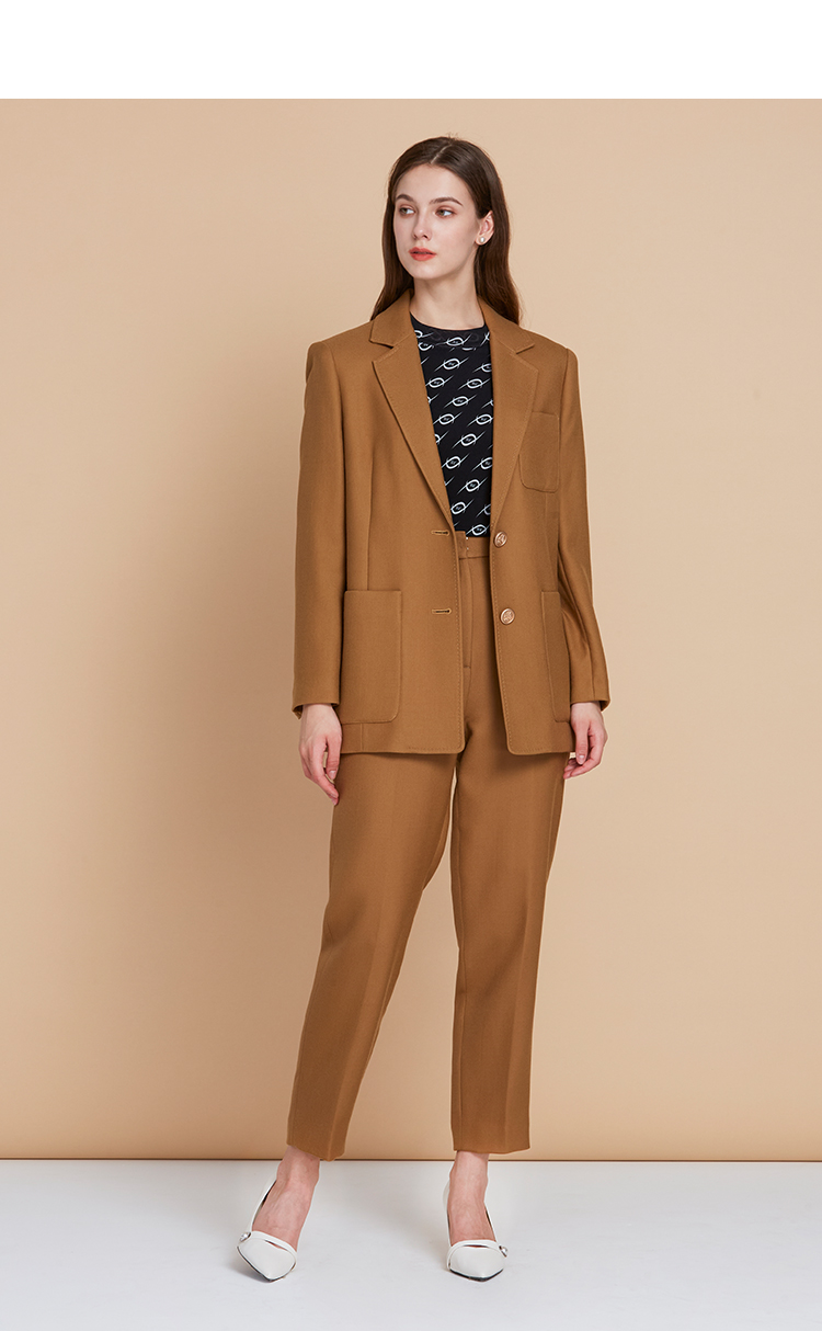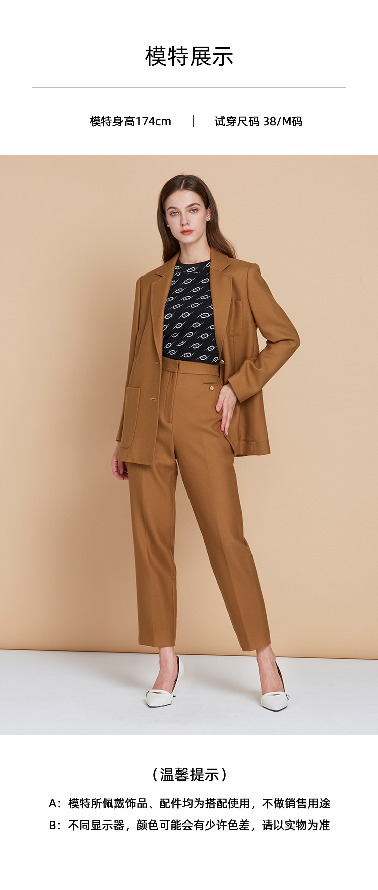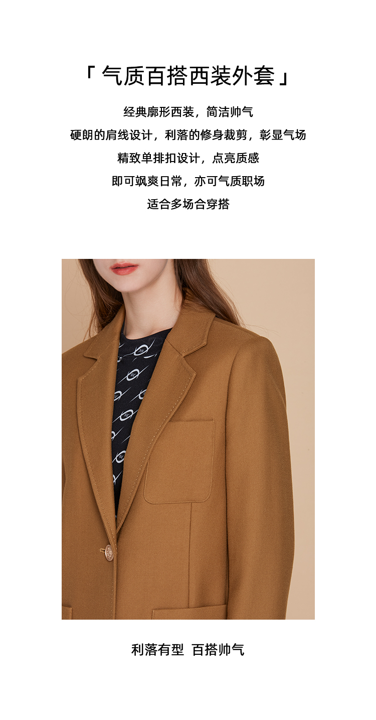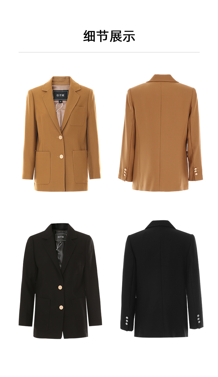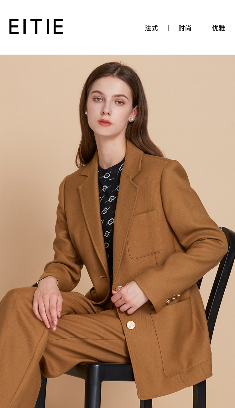 EITIE爱特爱冬季新款气质通勤修身显瘦干练100%绵羊毛毛呢西装外套603301
