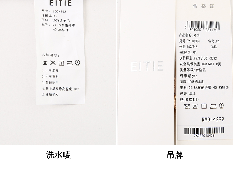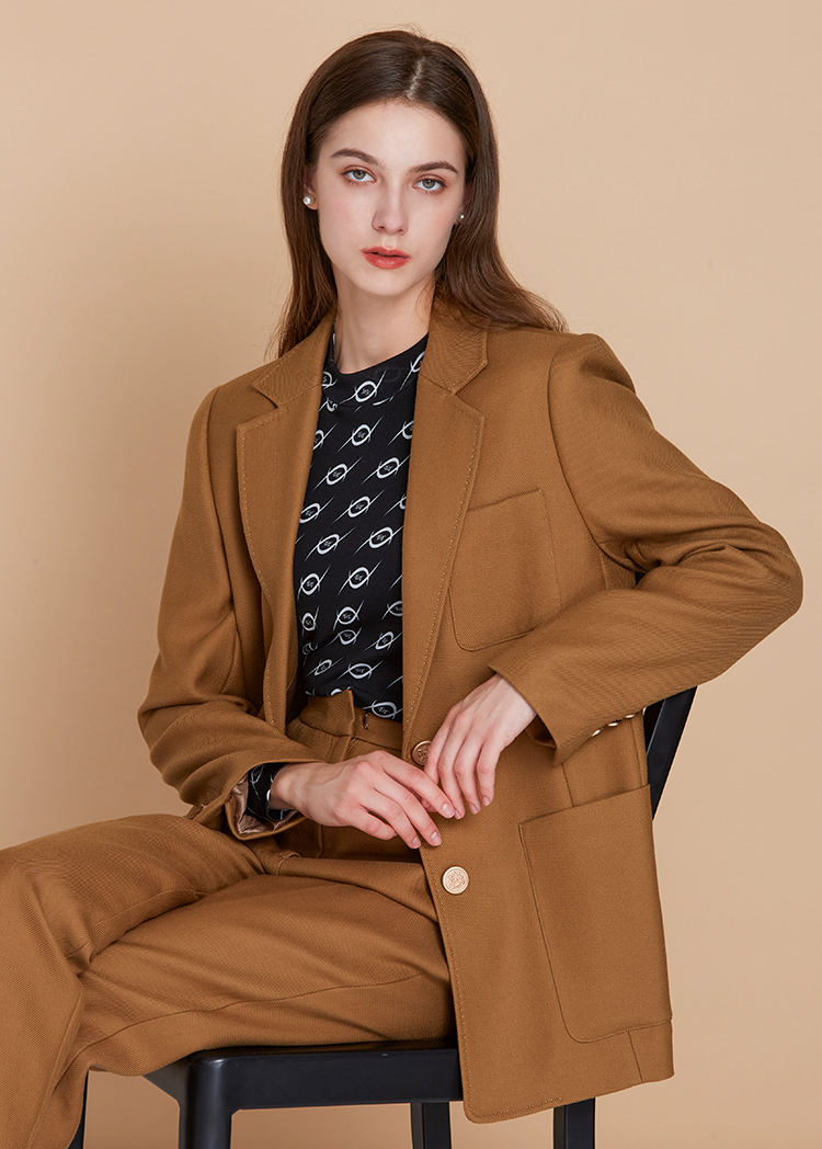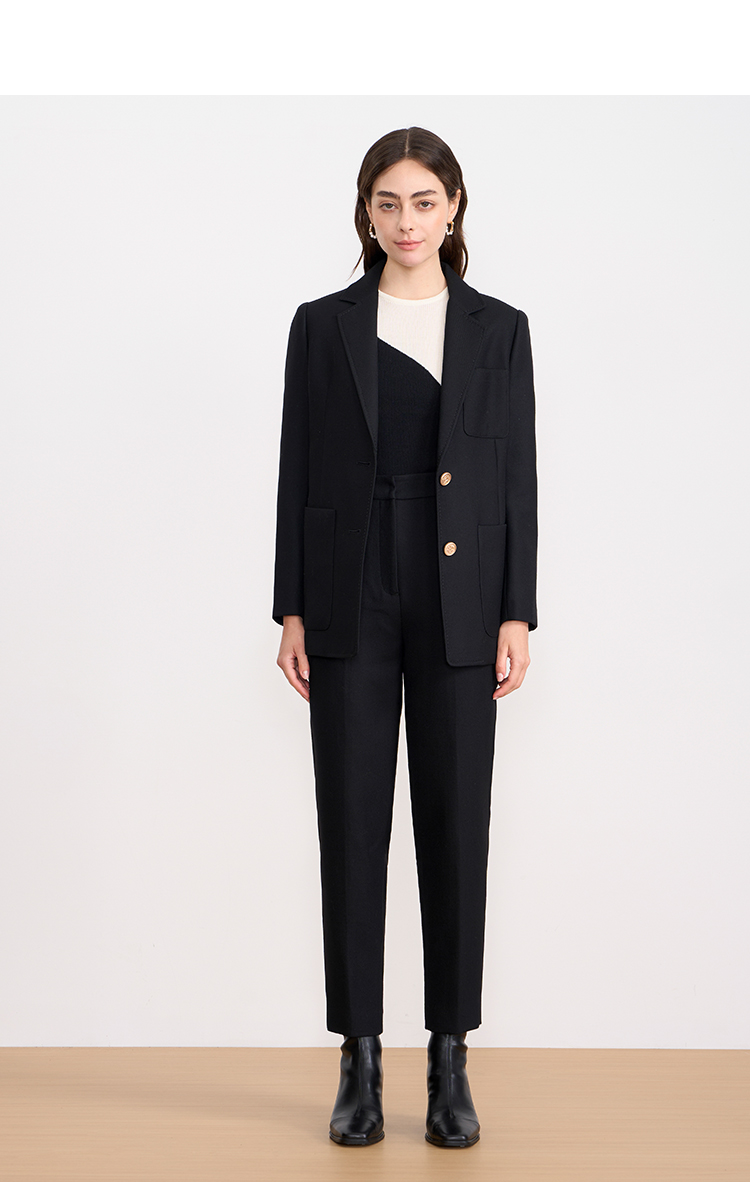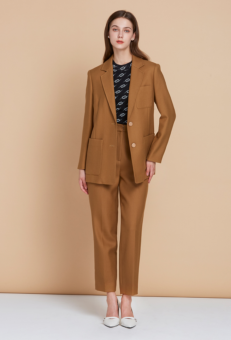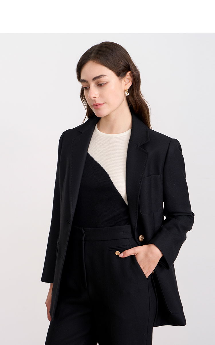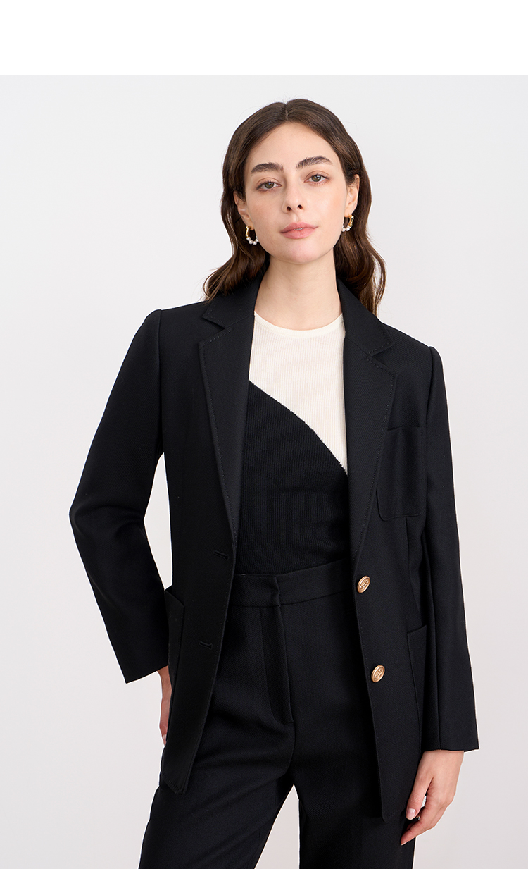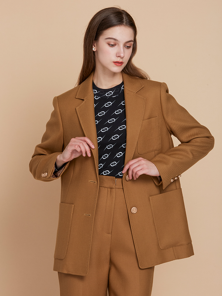 EITIE爱特爱冬季新款气质通勤修身显瘦干练100%绵羊毛毛呢西装外套603301