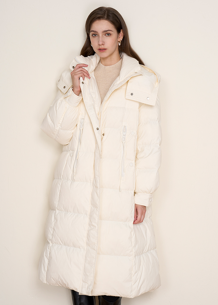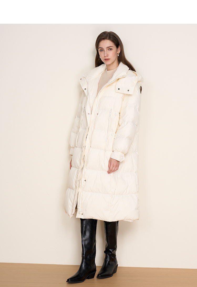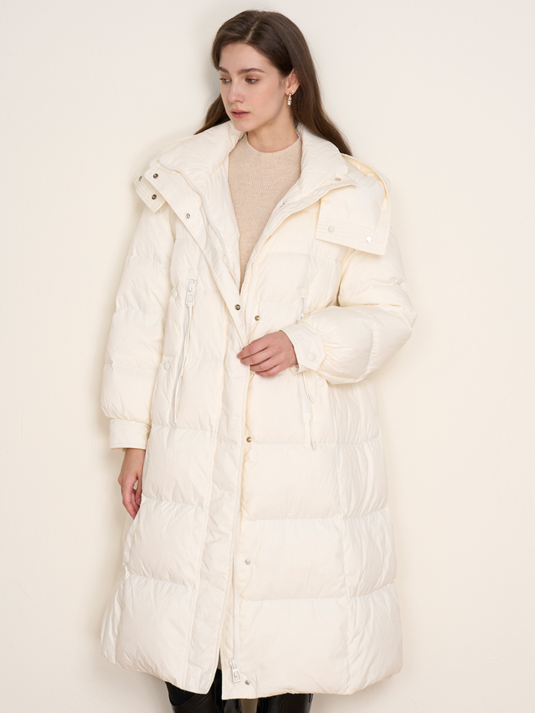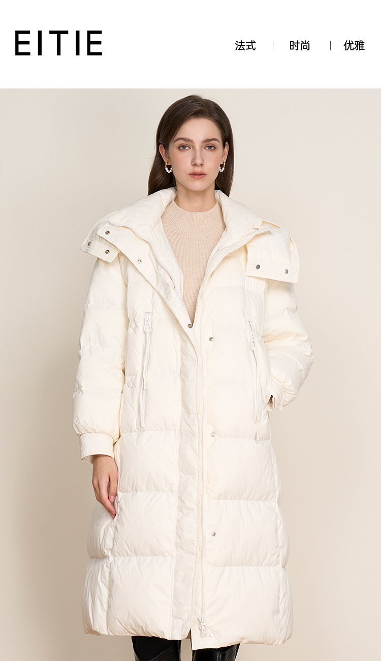 EITIE爱特爱冬季新款加厚保暖直筒显瘦立领连帽长款纯色羽绒服D2411409