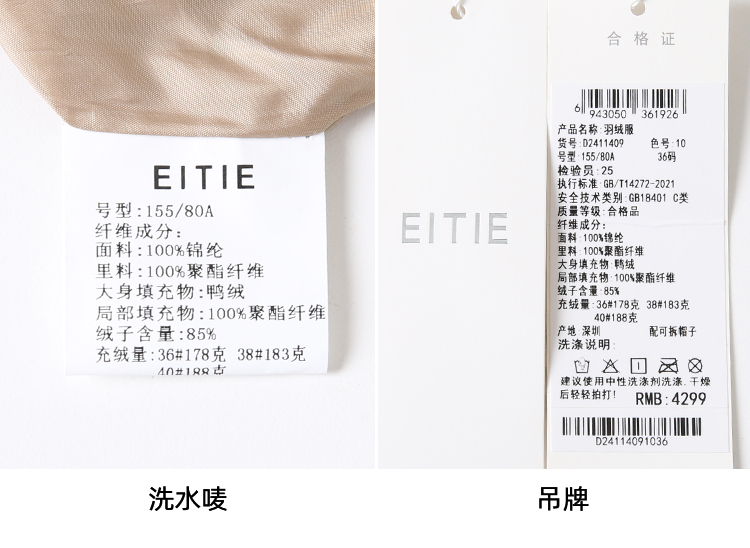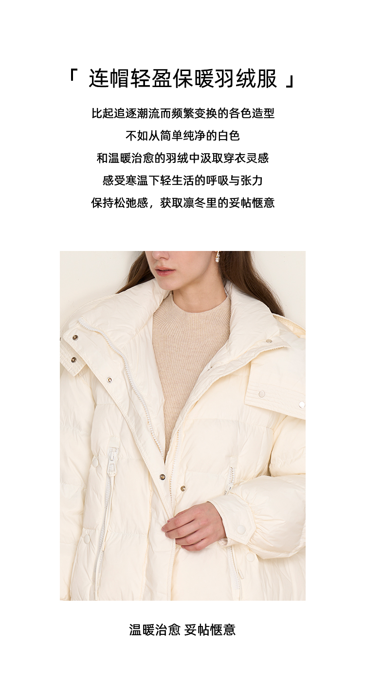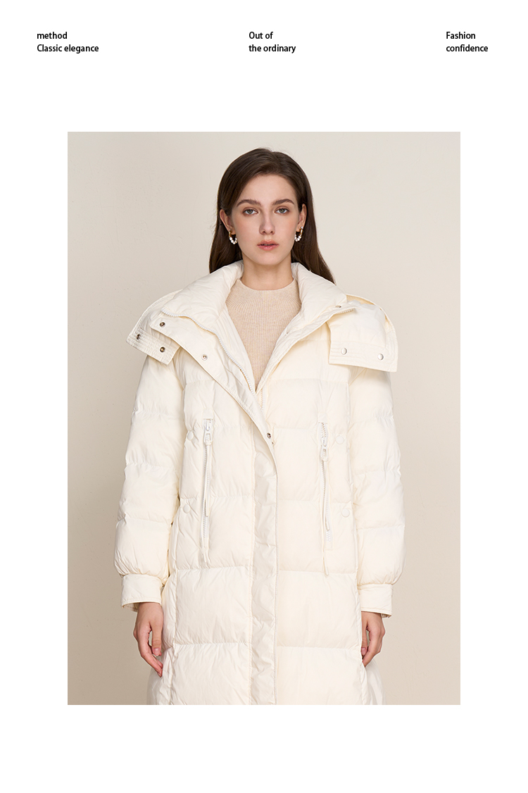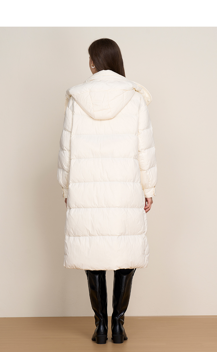 EITIE爱特爱冬季新款加厚保暖直筒显瘦立领连帽长款纯色羽绒服D2411409