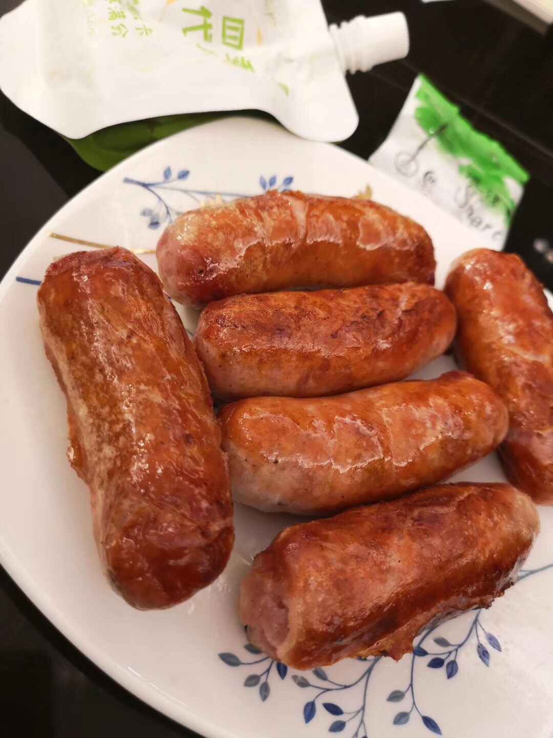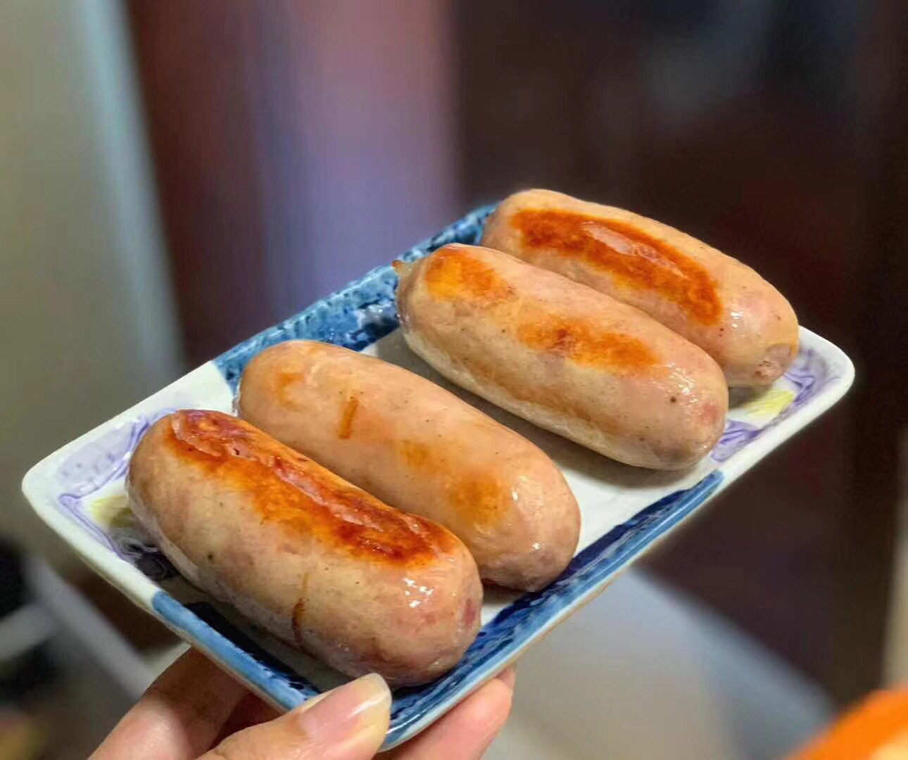 【日式飙汁脆皮香肠】鲜嫩多汁的脆皮香肠来啦[奸笑]和飙汁猪排同一供应商,都是肉,上好的肉肉!口感鲜甜脆嫩多汁[色]解冻后,180度烤箱15分钟或平底锅煎一下🍳 搭配煎蛋 制作热狗🌭 非常好吃😋