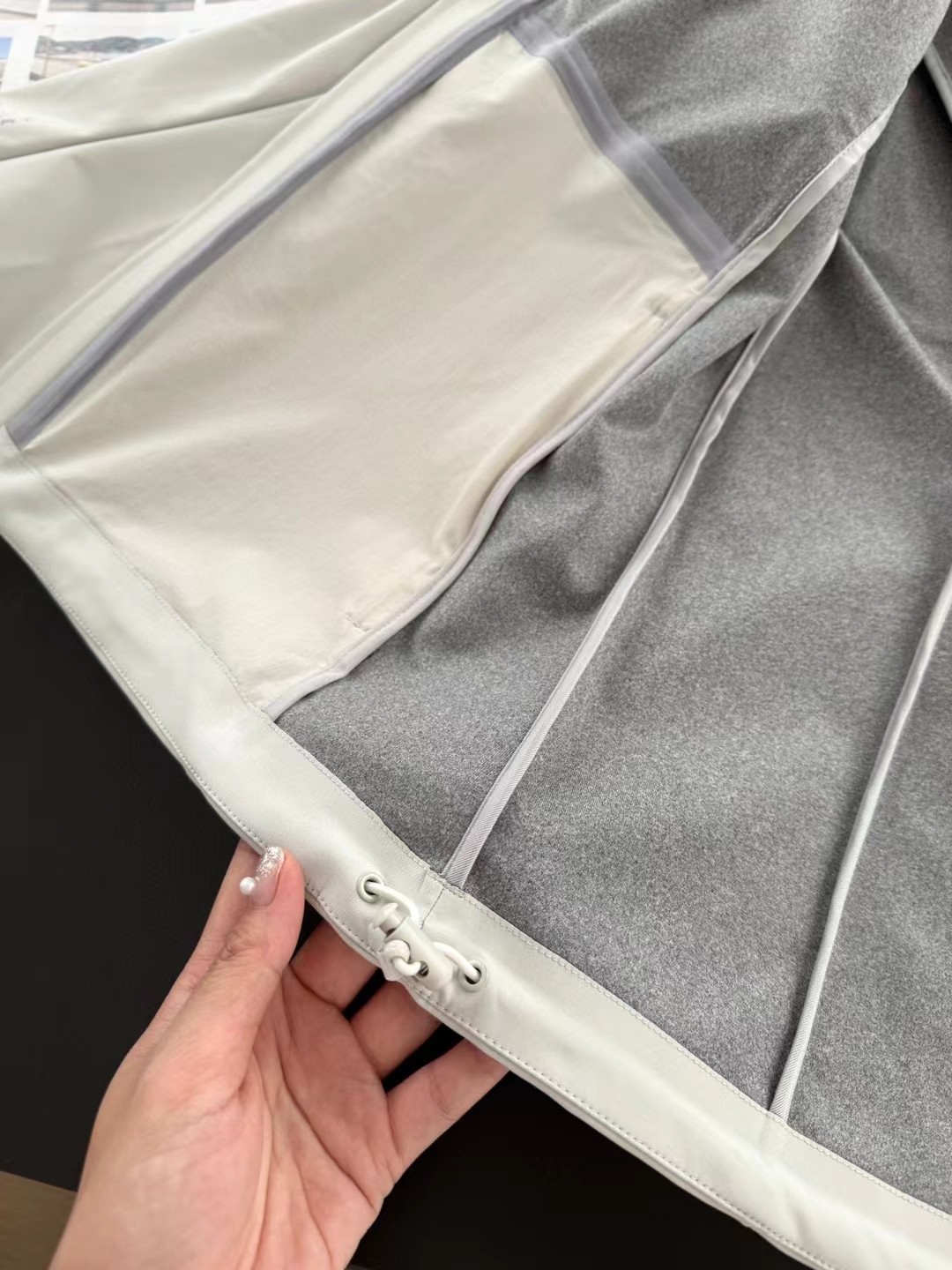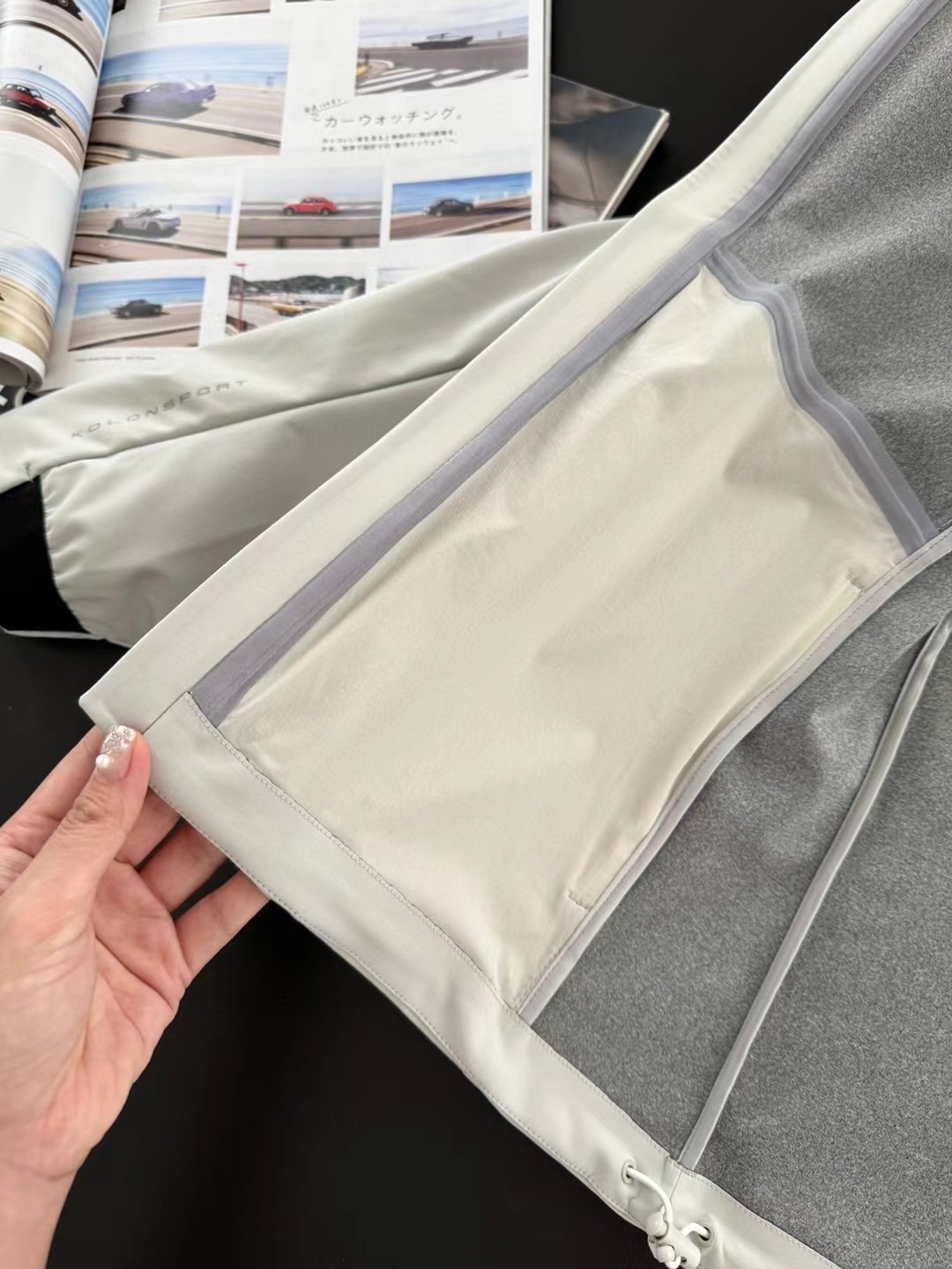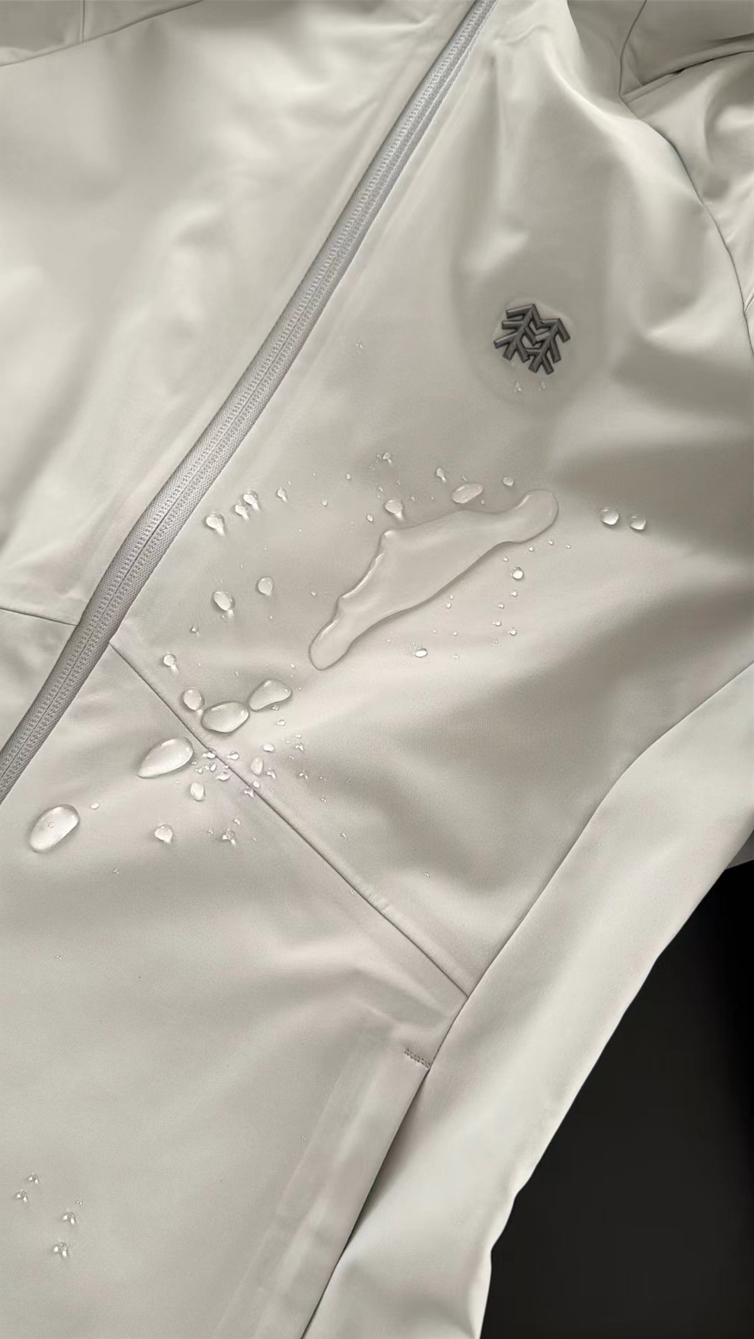 内里每一条拼缝线全部做包边包条处理!在细节关键处,比如门襟内、帽子内的接缝,均采用压胶工艺,牢牢挡住水滴渗透,同时立体性和舒适性又能得到满足!