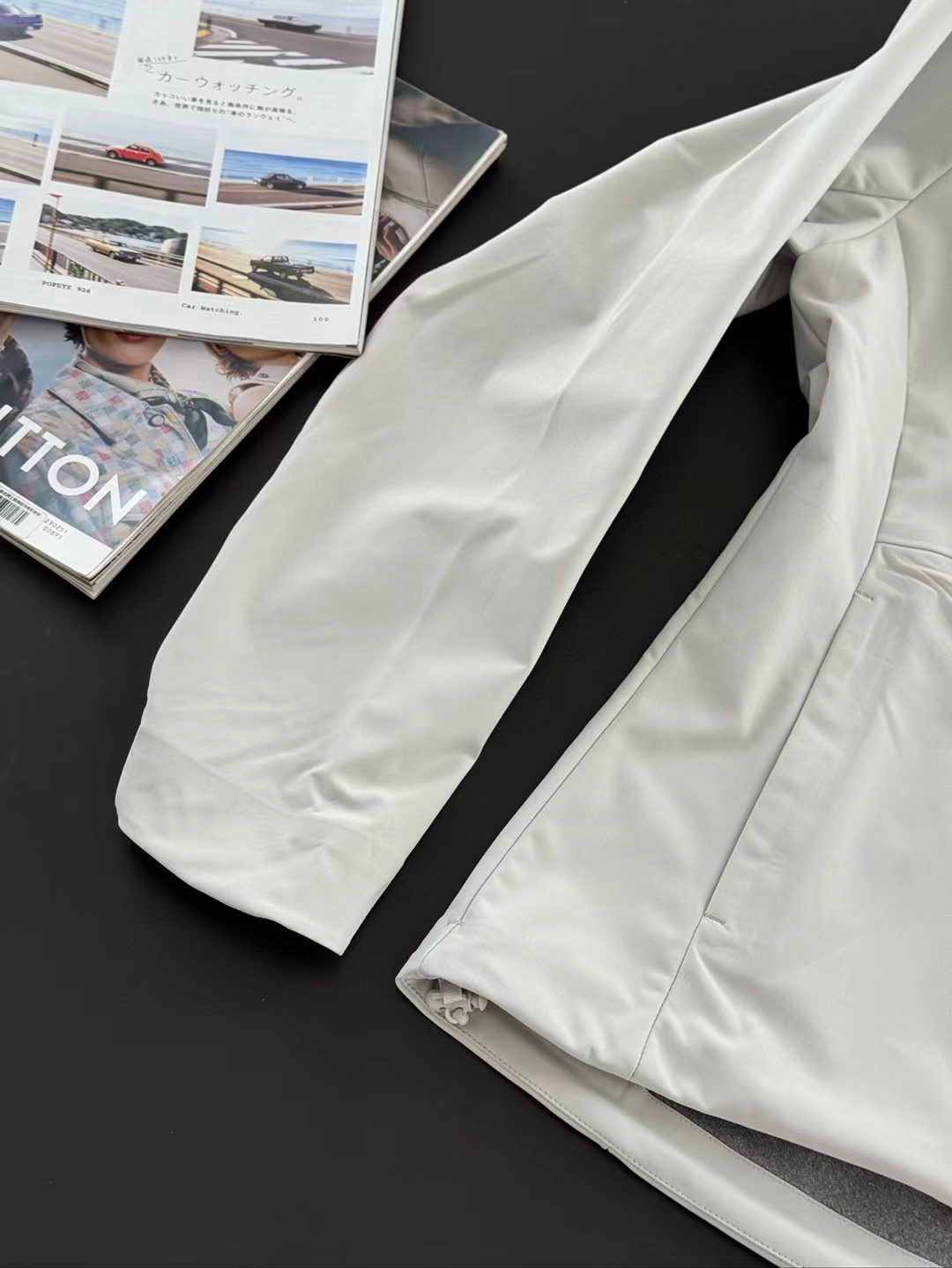 ➡️ 版型谁穿谁夸!斜插拼裁宽正肩,侧缝前移、腰身弧度收省,前短后长弧形底边,关键后背的内收弧线剪裁,腰身最纤细处更是拼接加宽弹力带,掐出蛮腰,围度立体有活动空间,又特别合身有型!上身一穿直角肩蚂蚁腰,视觉显瘦二十斤!上身很fit还很灵活!没有一般夹克的束缚感~