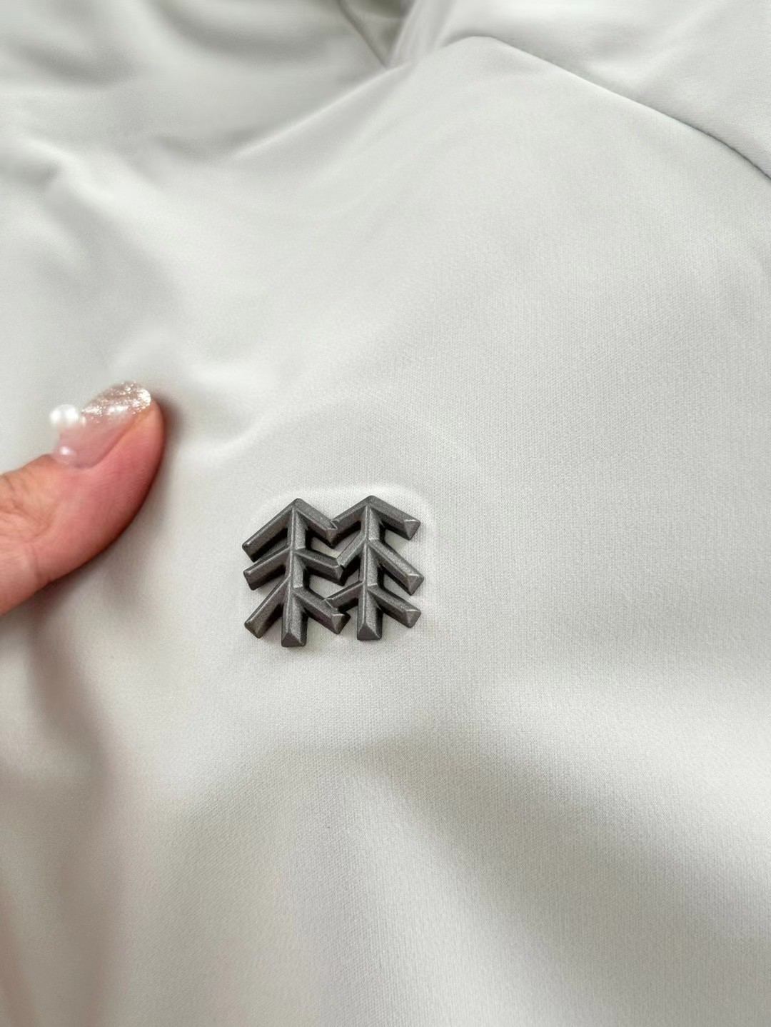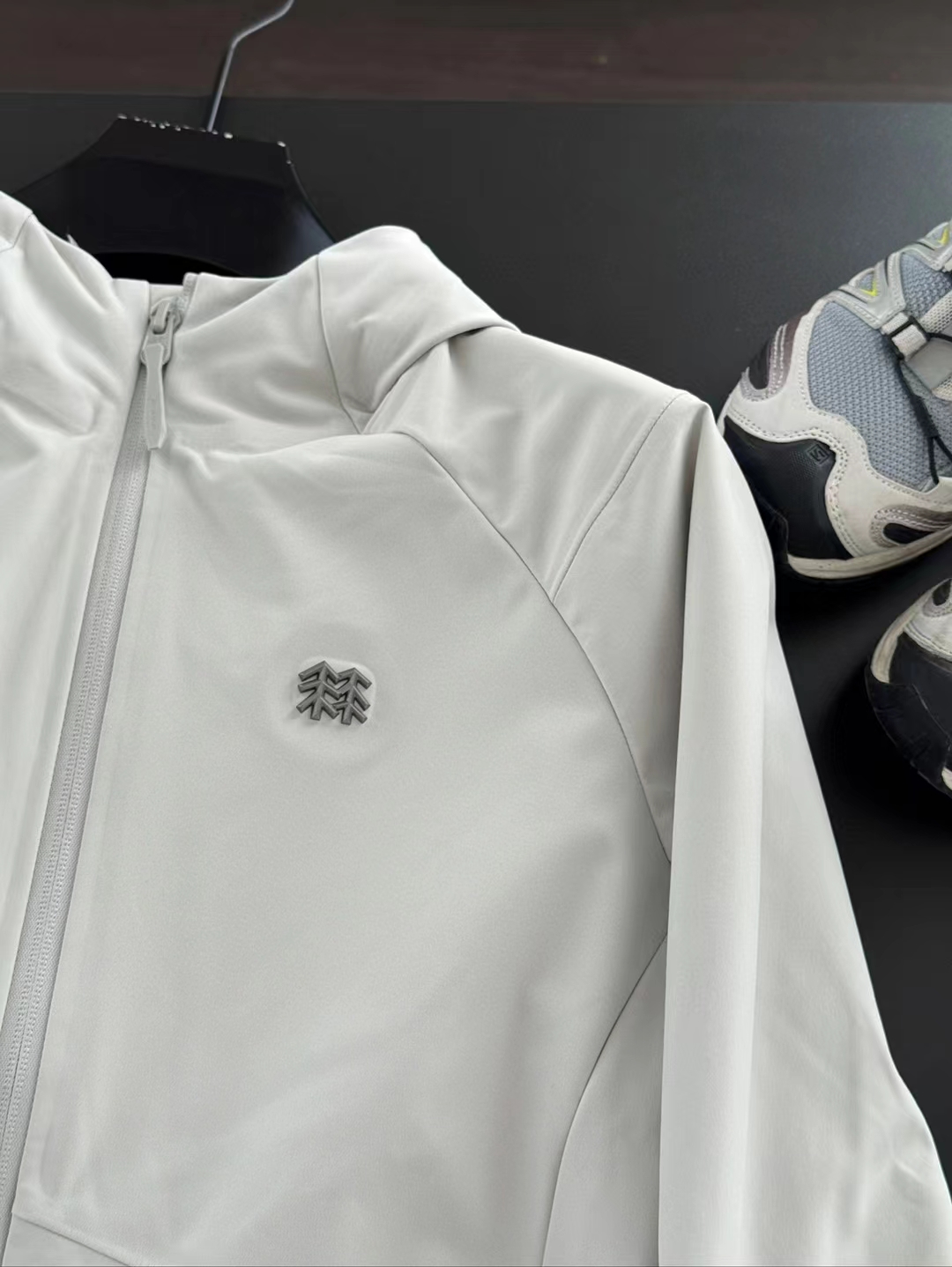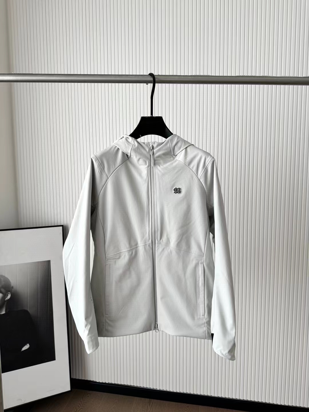 加高立领一体连帽,不可拆卸,帽檐压胶反光logo印花,胸前嵌入压胶立体logo,双头YKK拉链门襟,开合顺滑耐用~两面拉链口袋,下摆内侧抽绳可调节