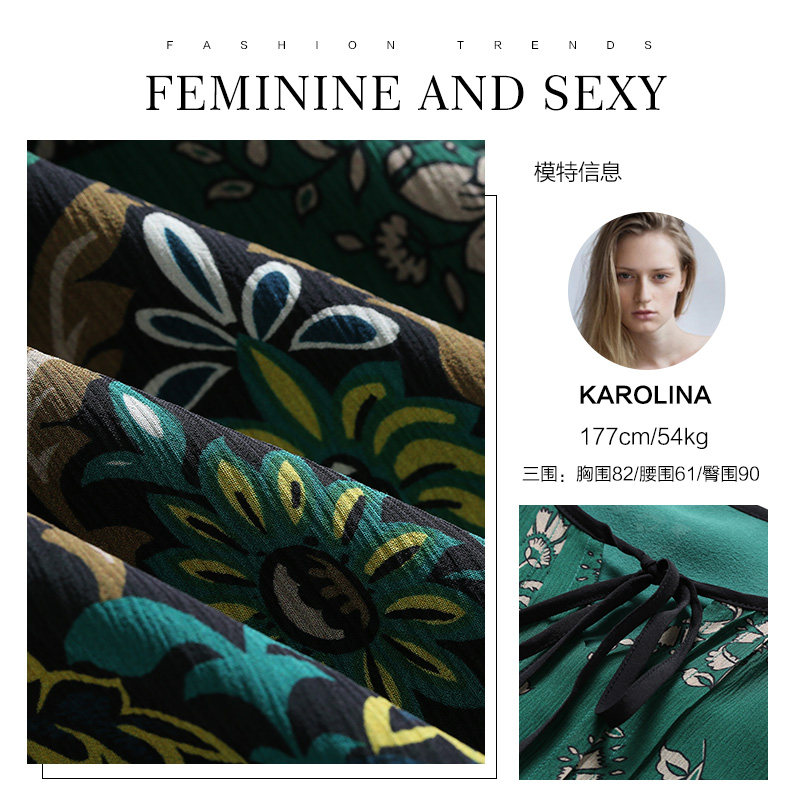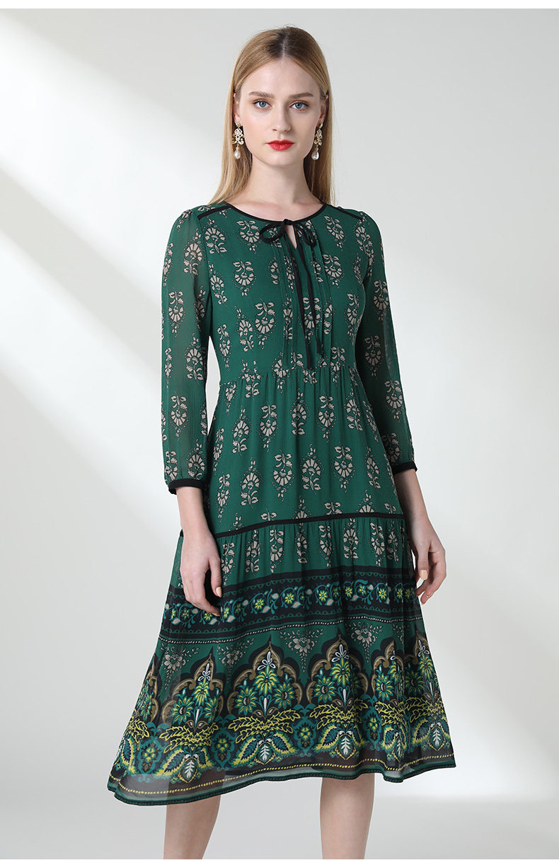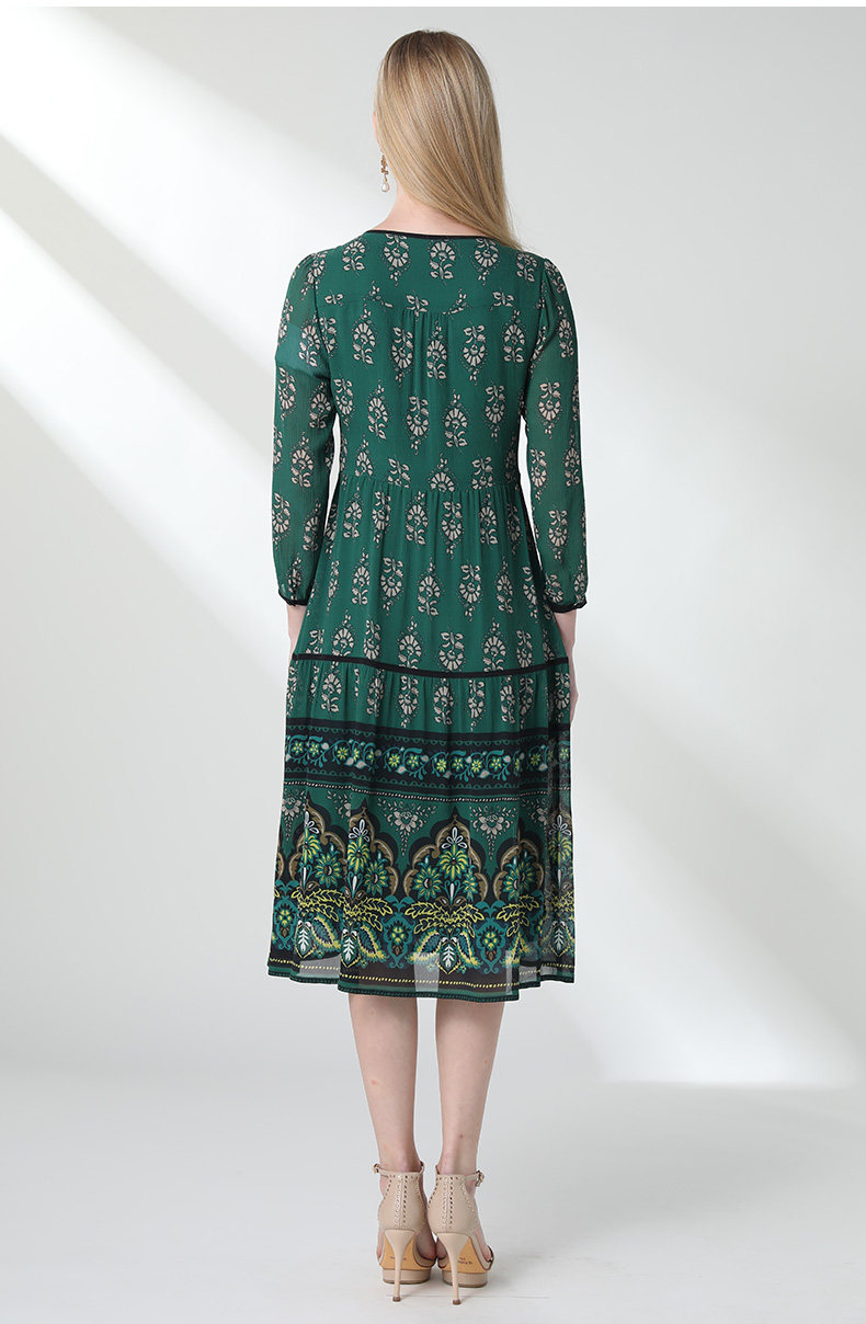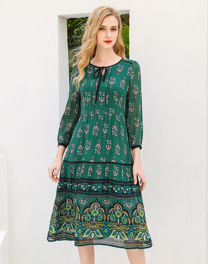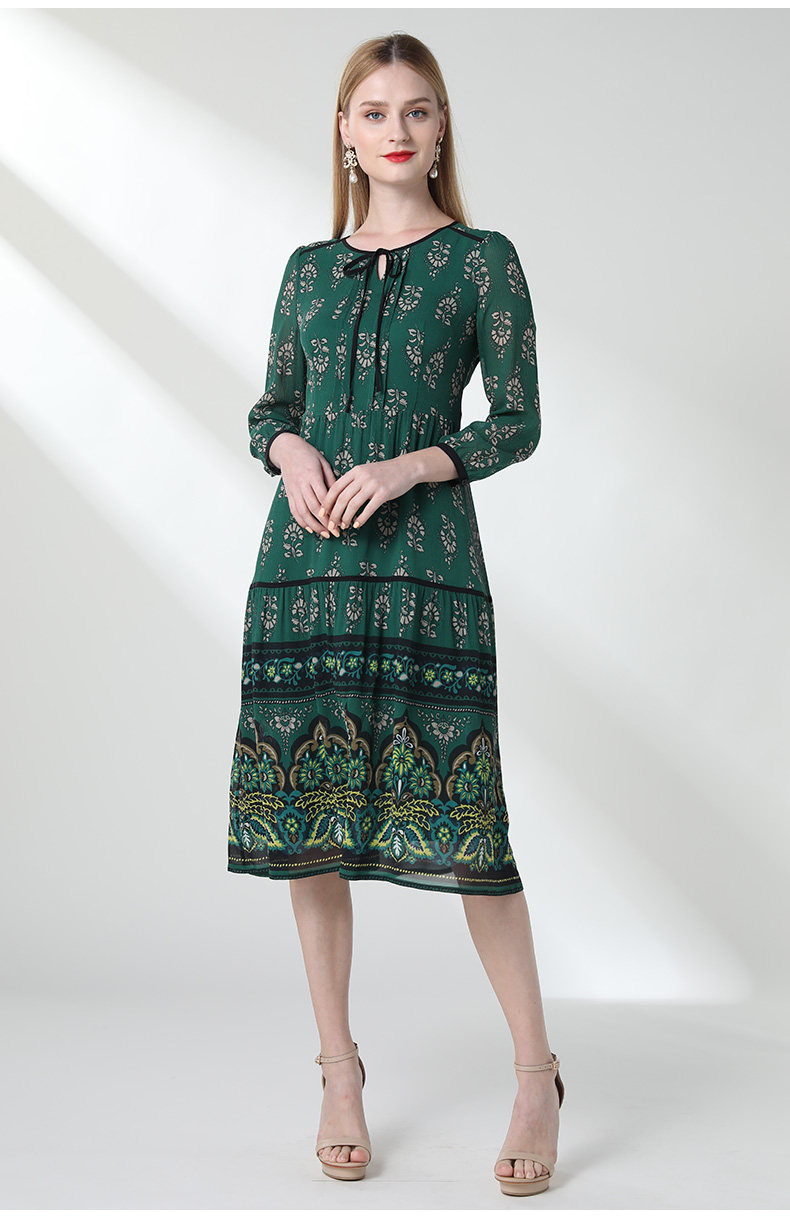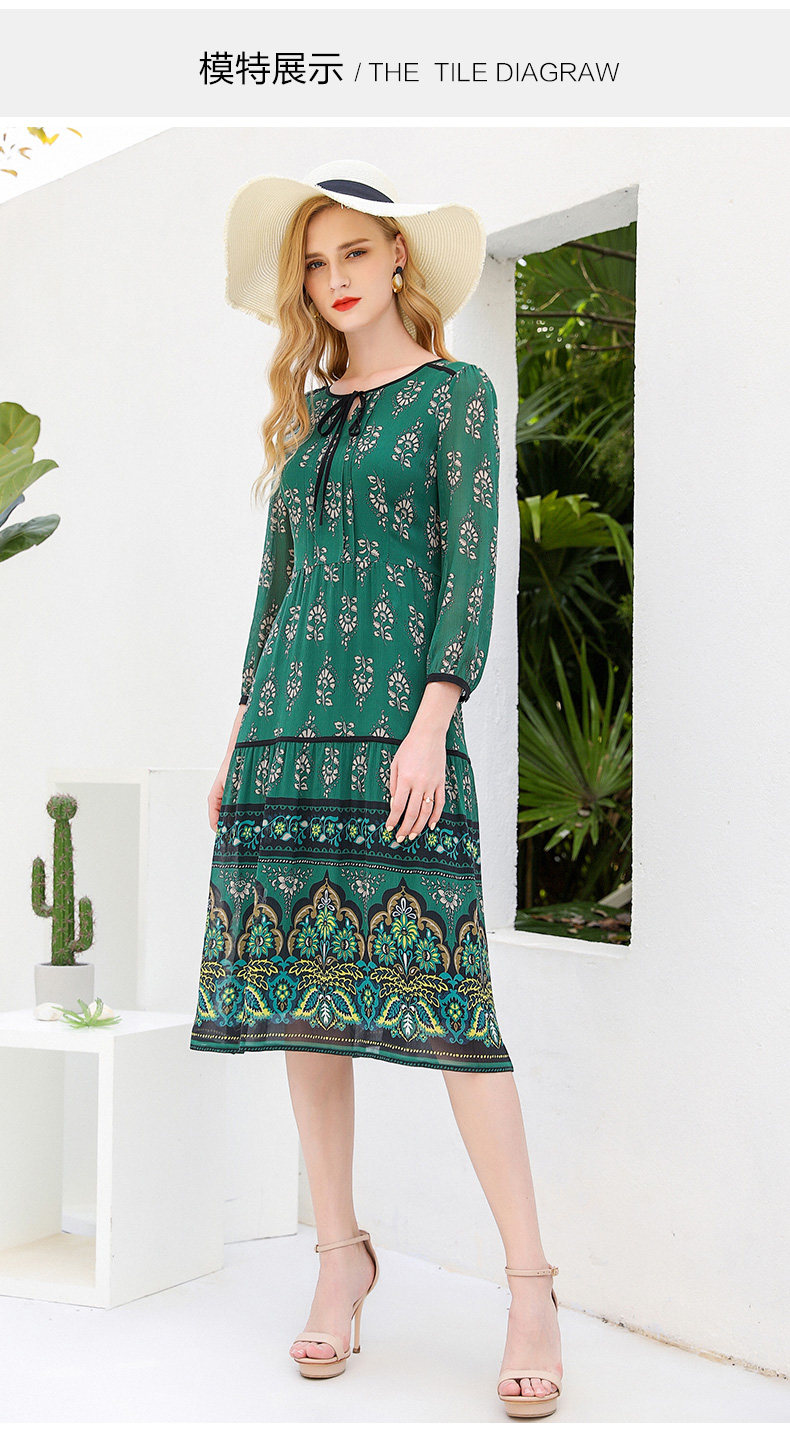 乔万尼夏流行长款过膝桑蚕丝连衣裙宽松印花真丝长裙女EN2E599