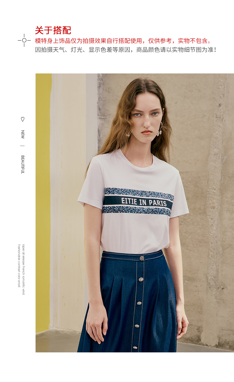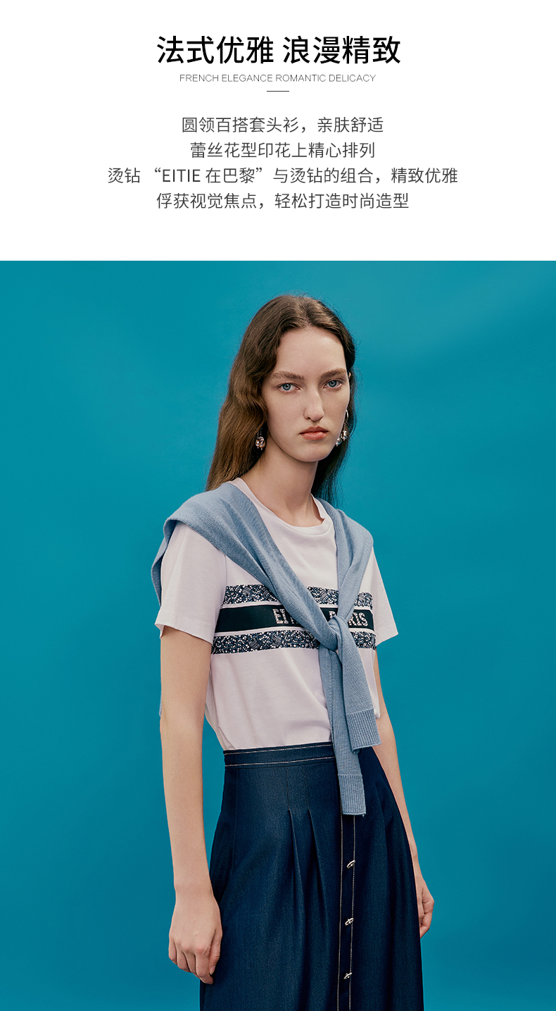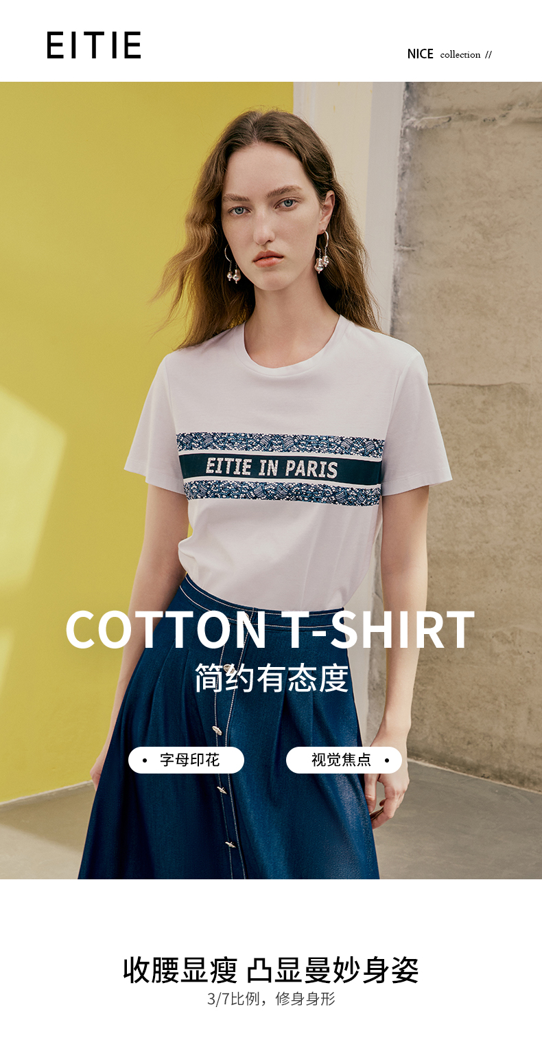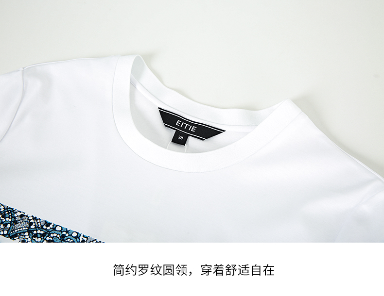 EITIE爱特爱夏季新款时尚百搭打底舒适圆领印花T恤7402105