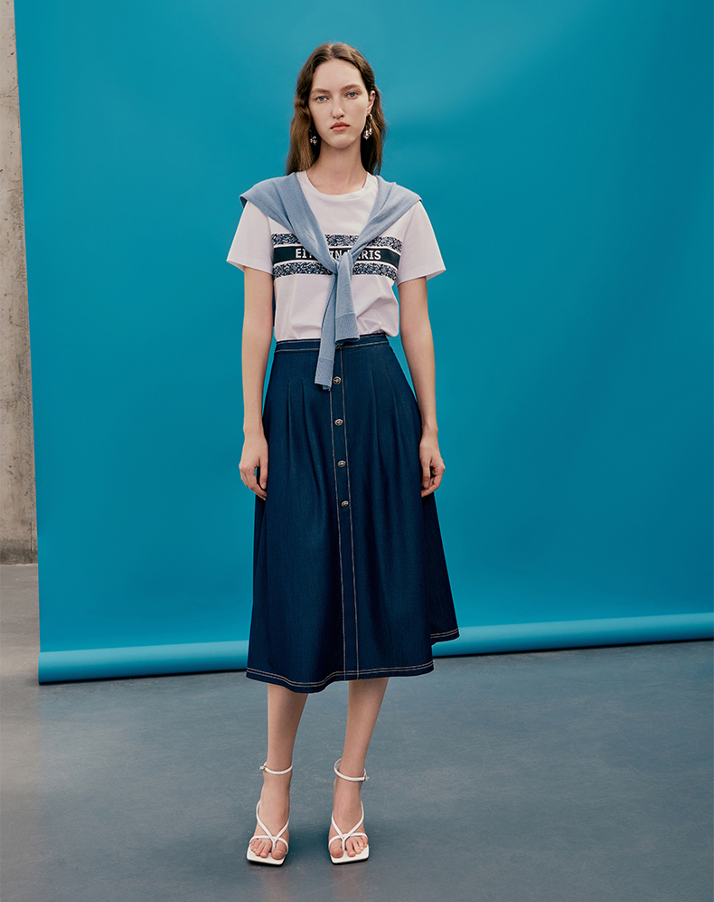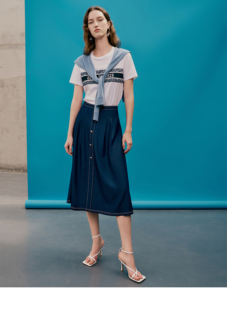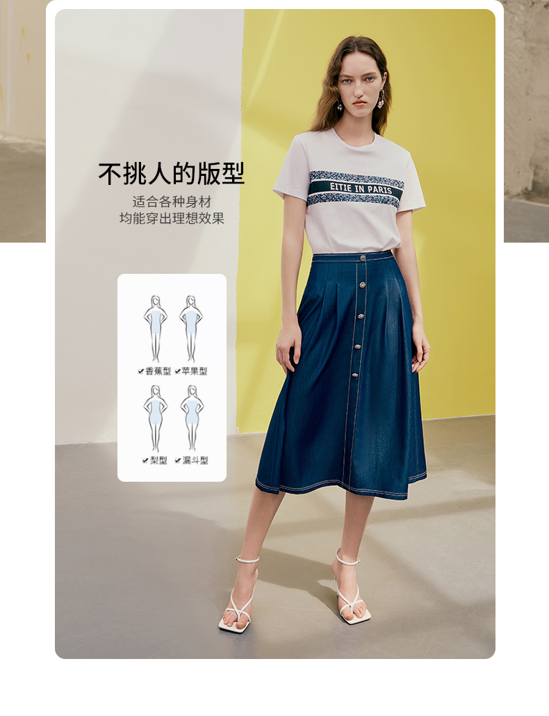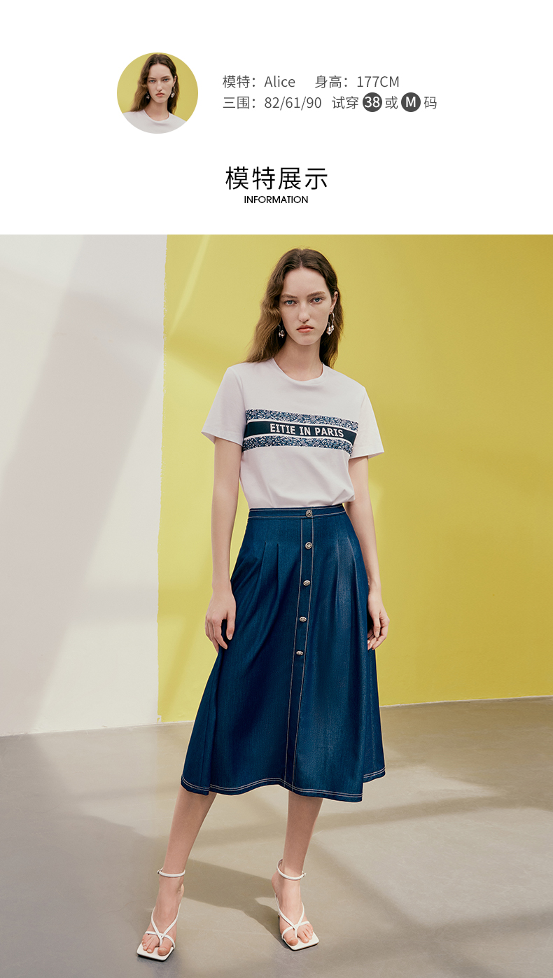 EITIE爱特爱夏季新款时尚百搭打底舒适圆领印花T恤7402105