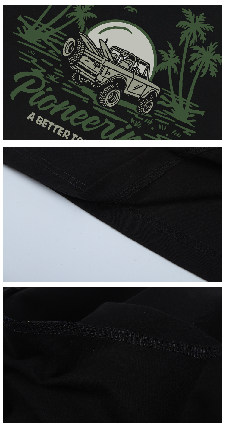 自由基地夏季露营户外复古印花短袖T恤衫潮牌中性复古棉男女休闲T NMT-1872