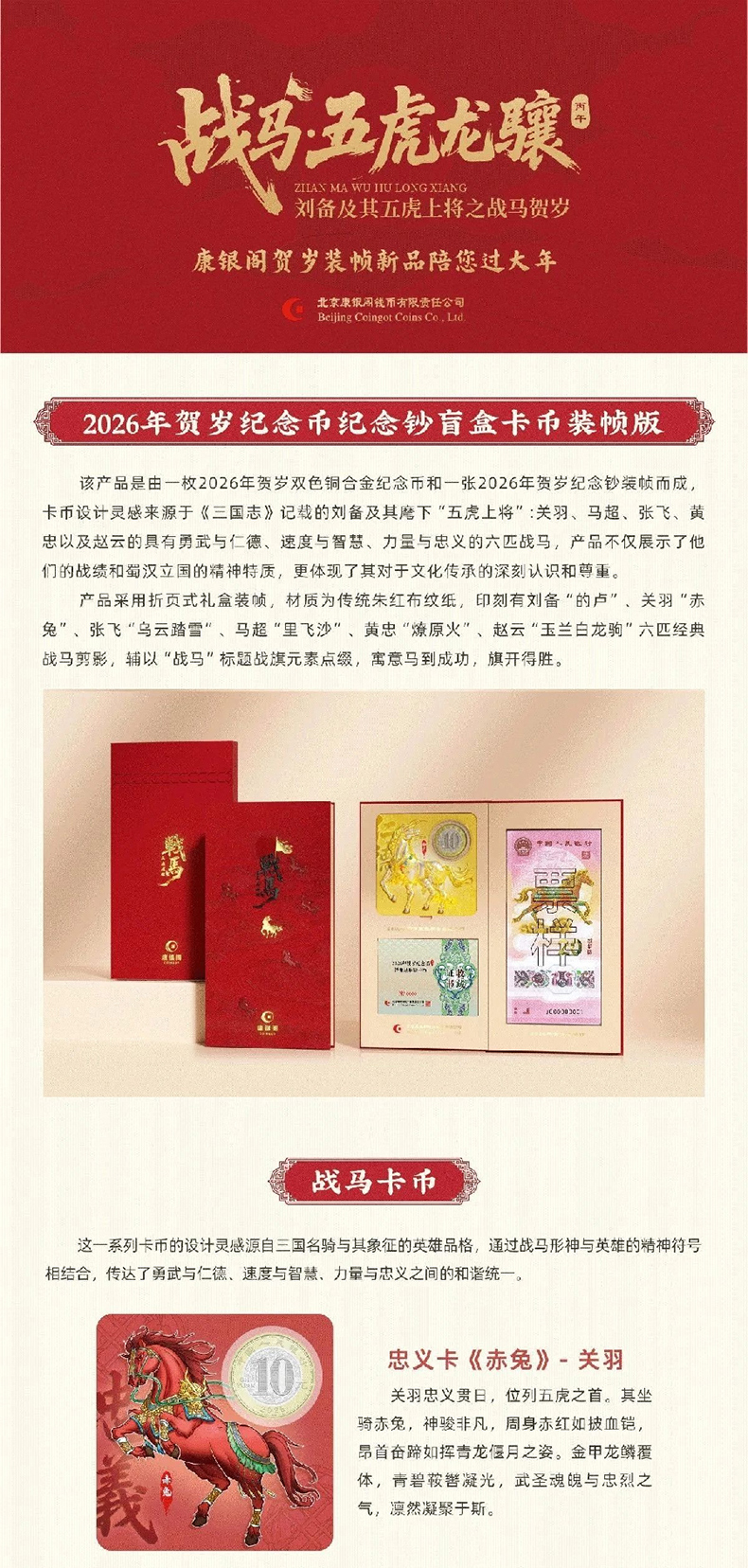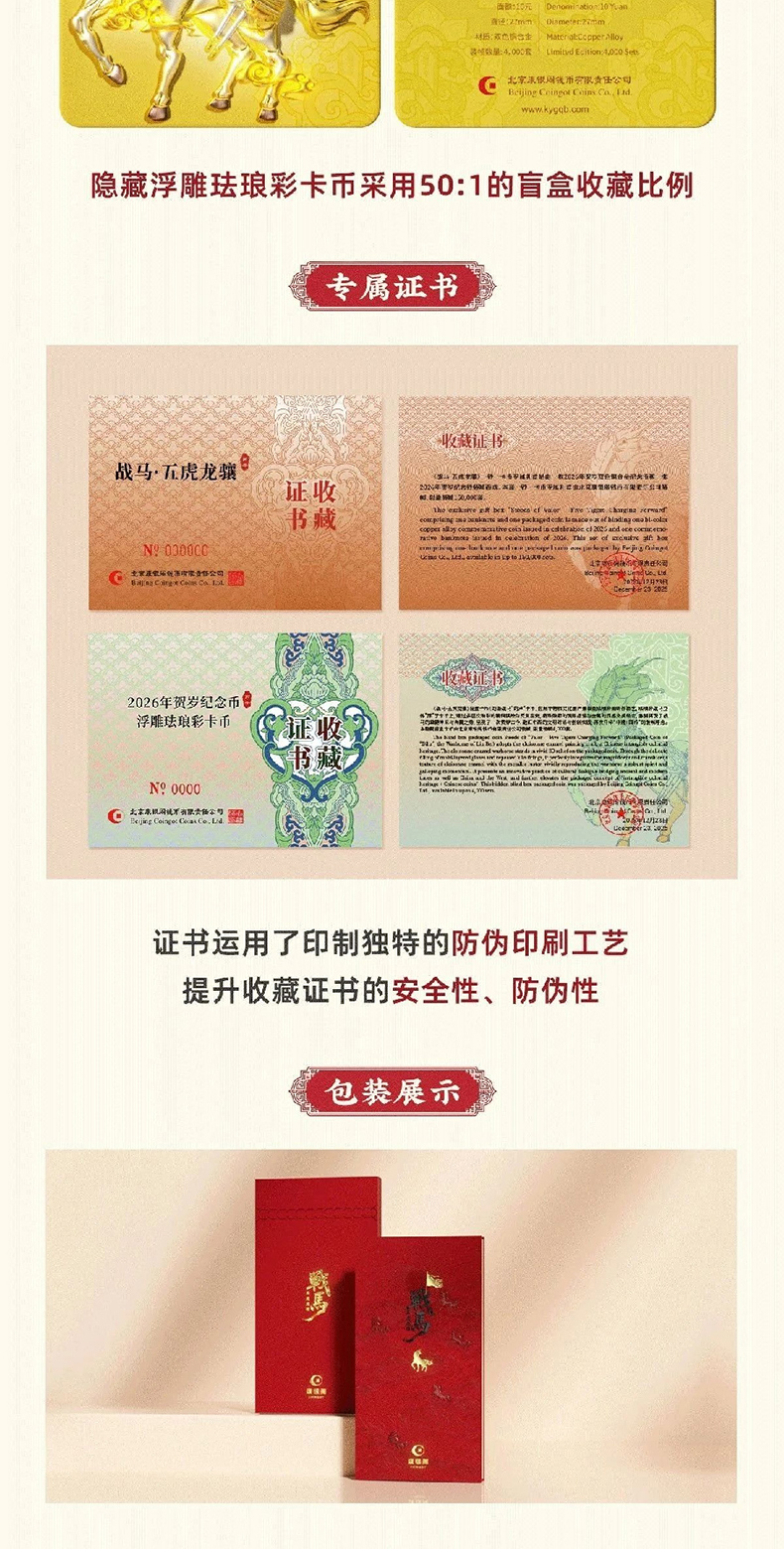 【新品现货】康银阁装帧马币马钞 战马·五虎龙骧盲盒(一币一钞)