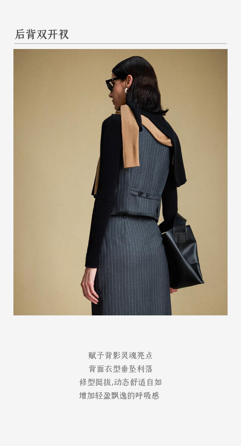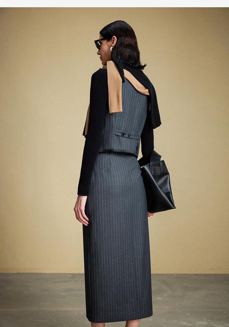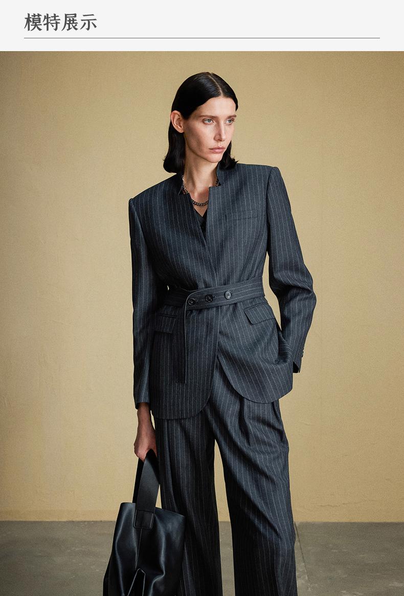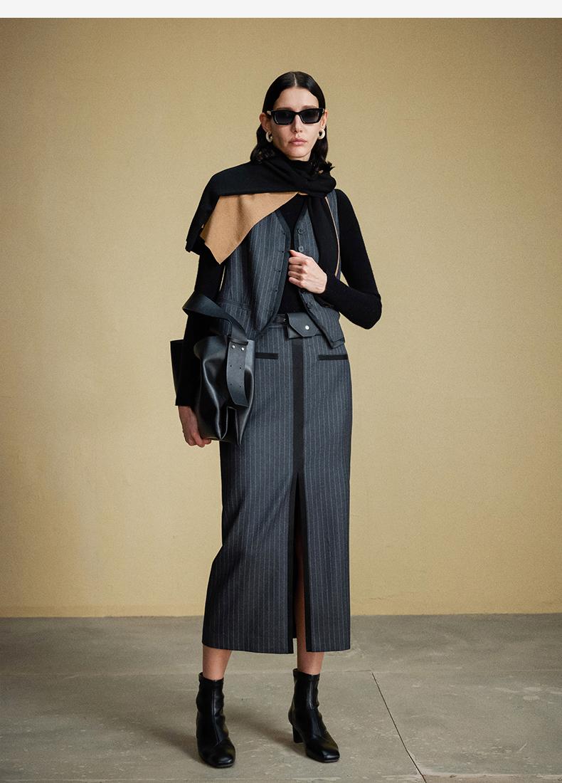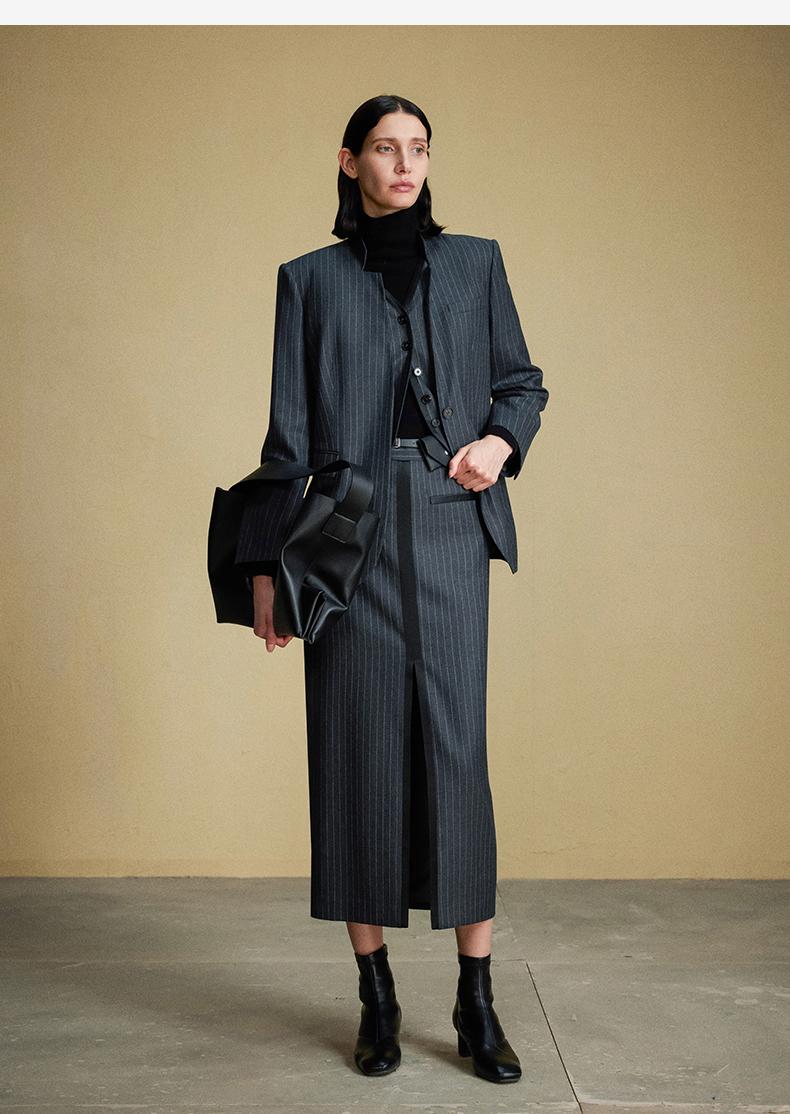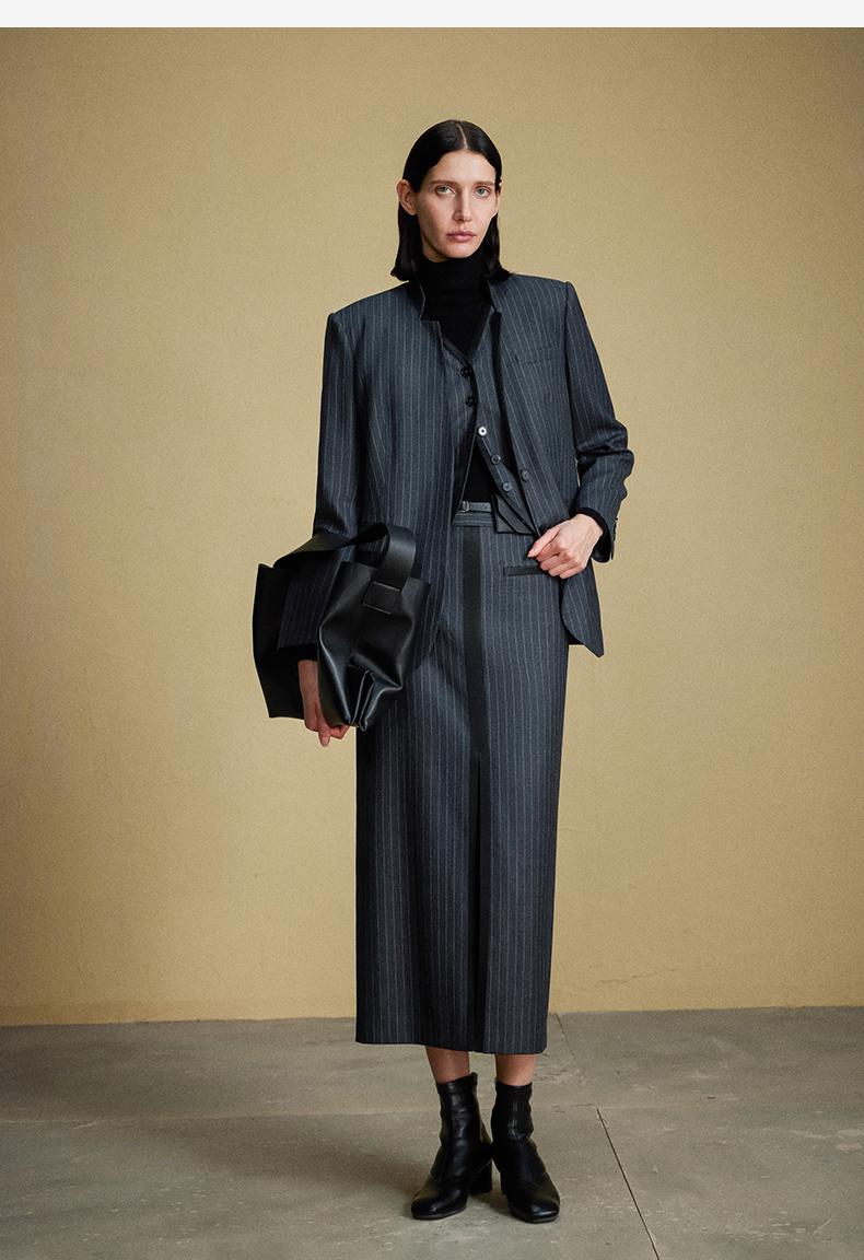 西嘉C+IMPRESS/西嘉羊毛条纹西装套装女腰带马甲半裙西装裤搭配一整套WT2304048