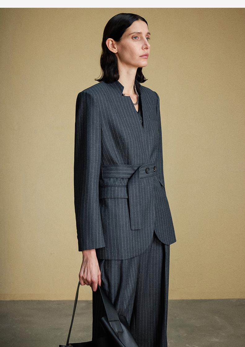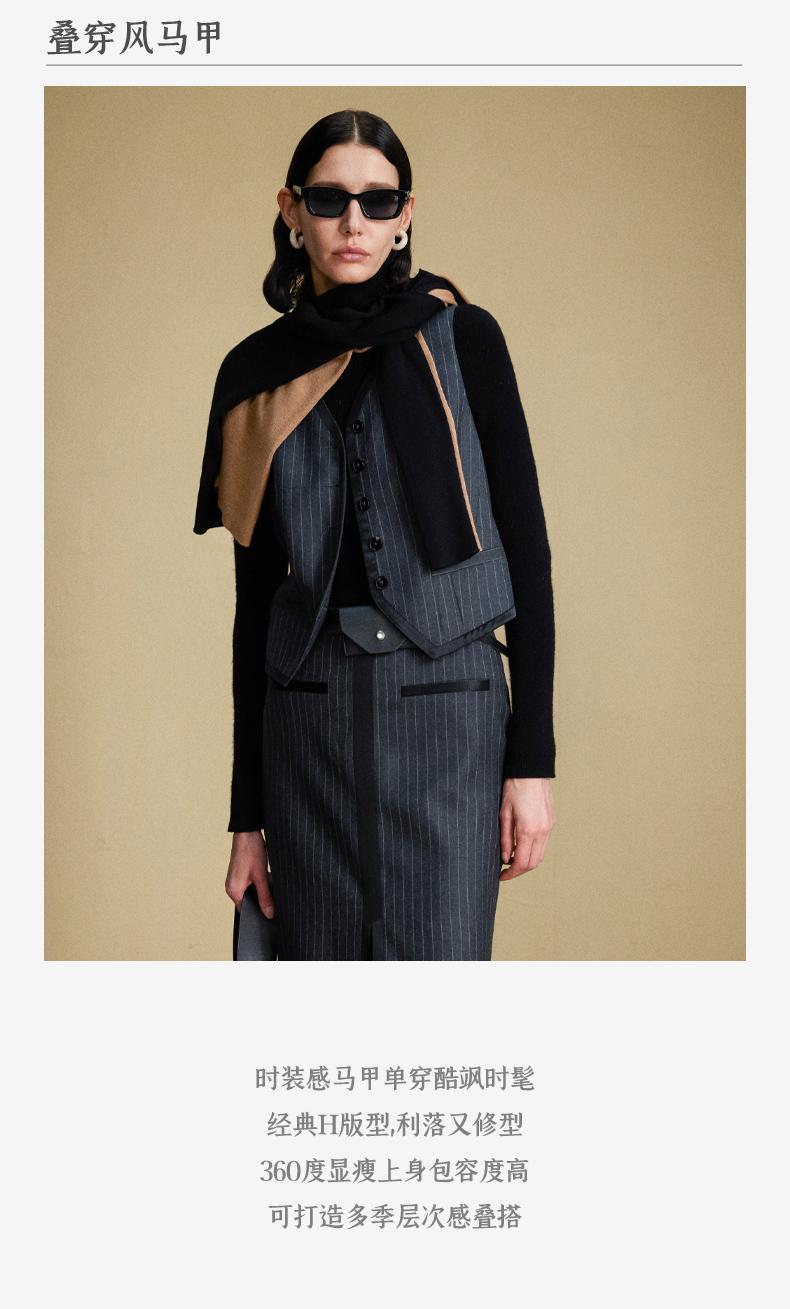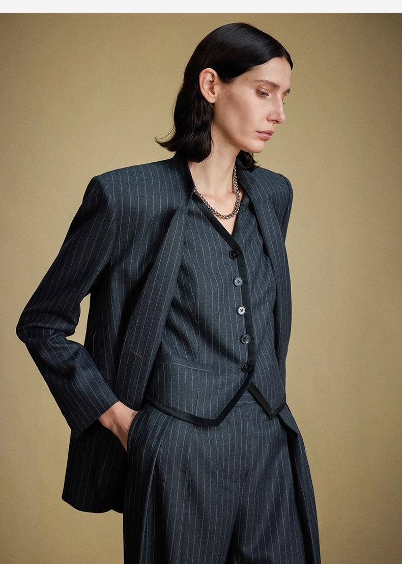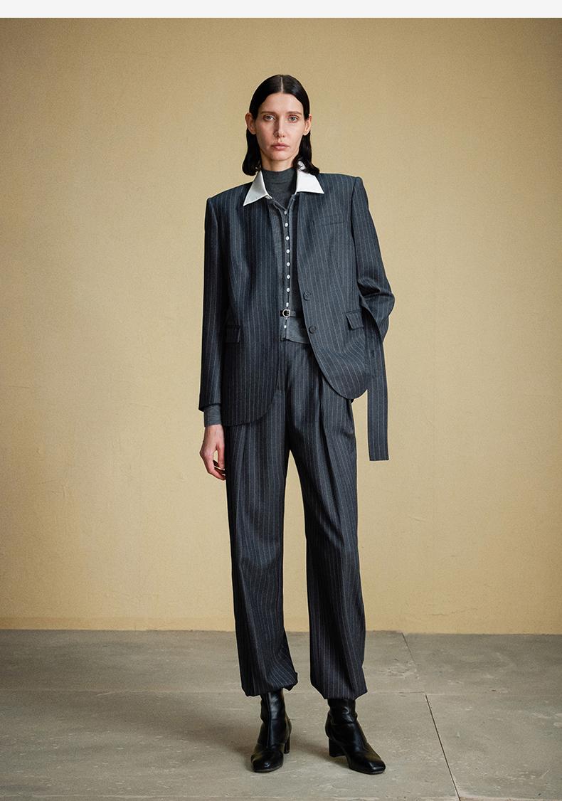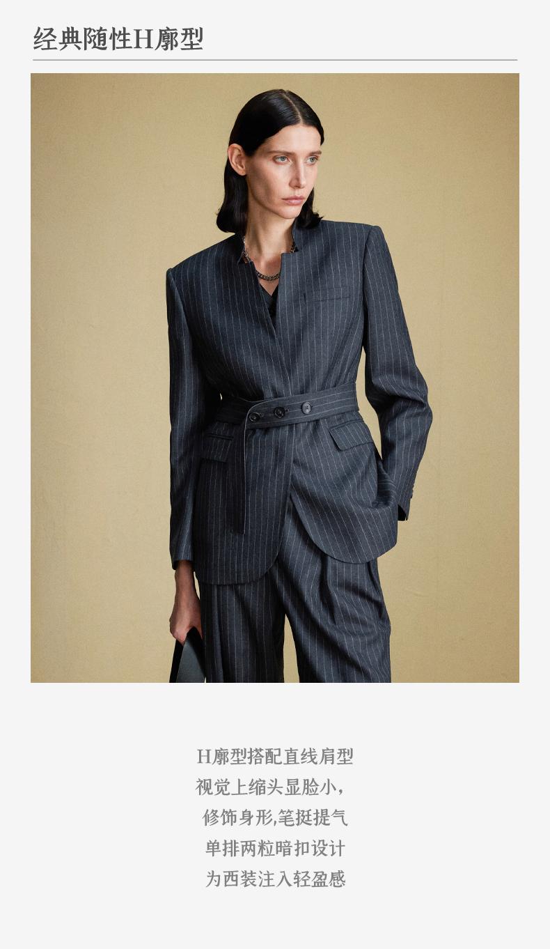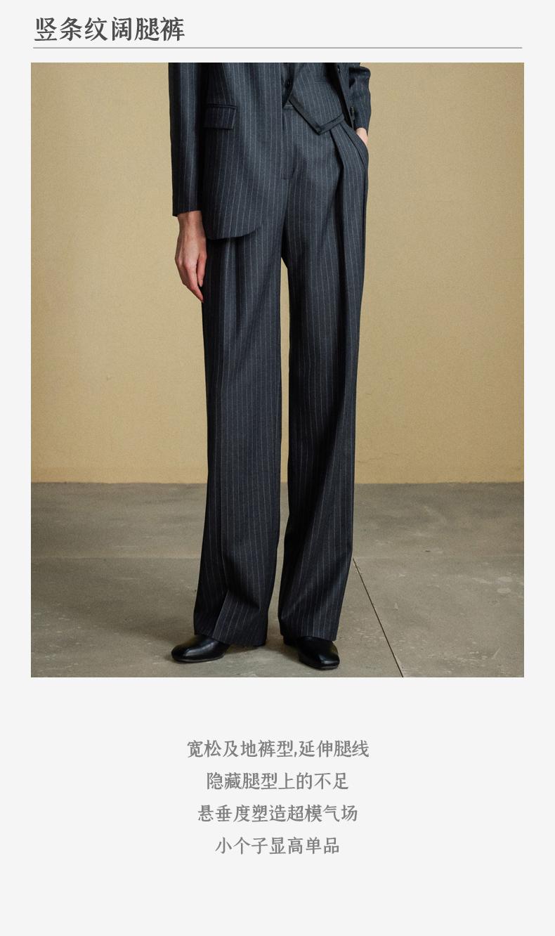 西嘉C+IMPRESS/西嘉羊毛条纹西装套装女腰带马甲半裙西装裤搭配一整套WT2304048