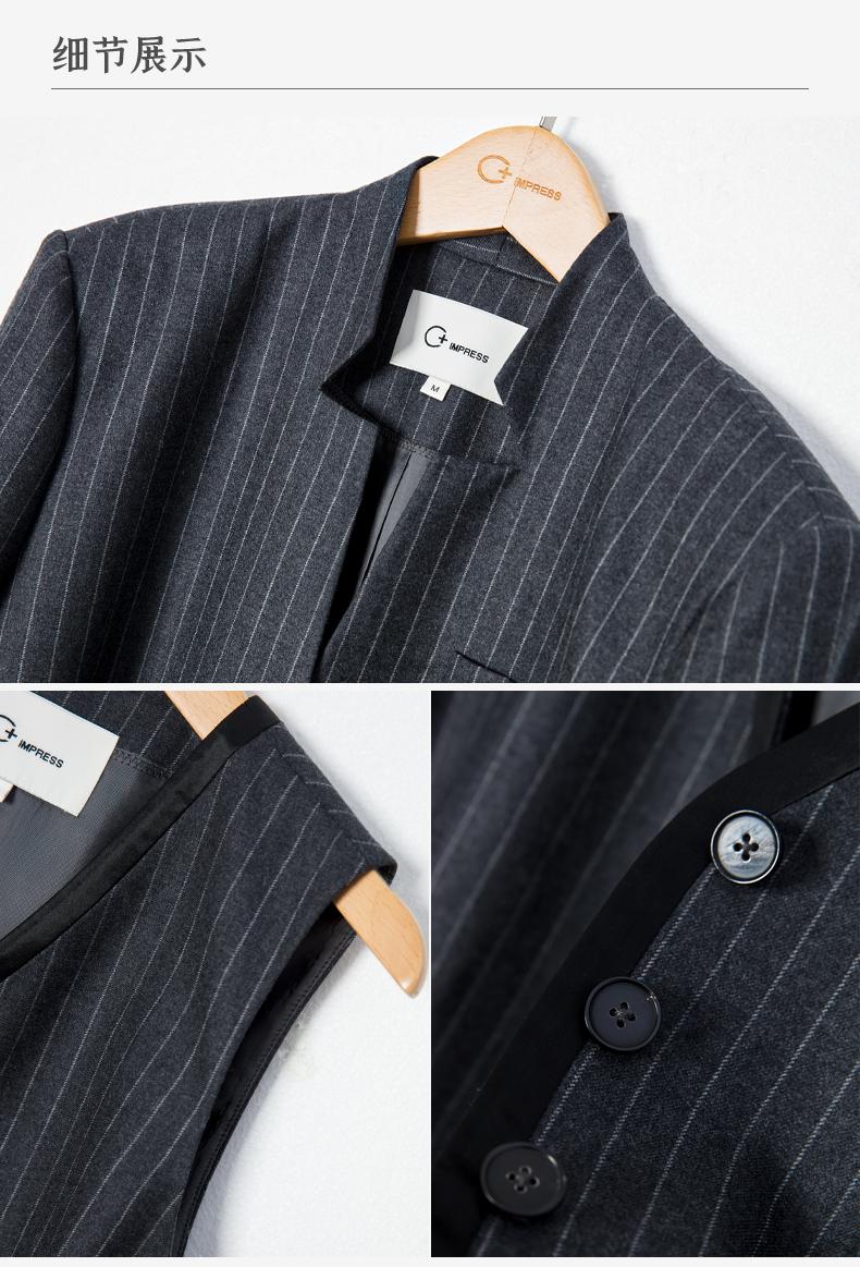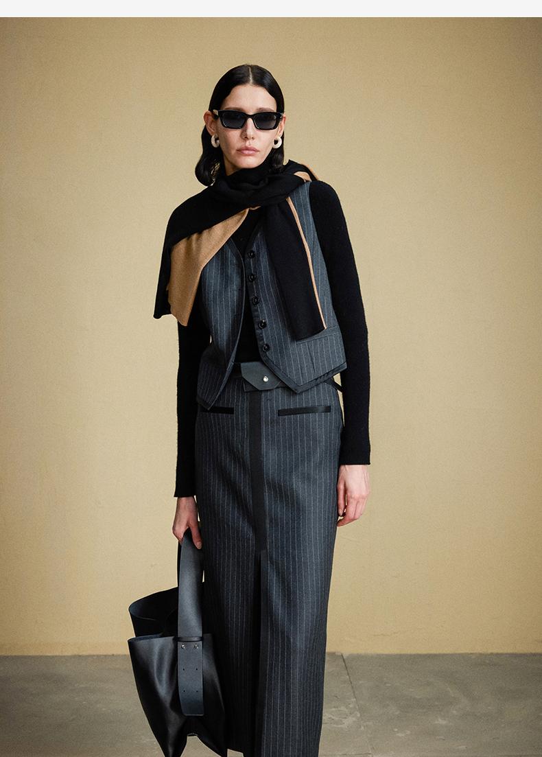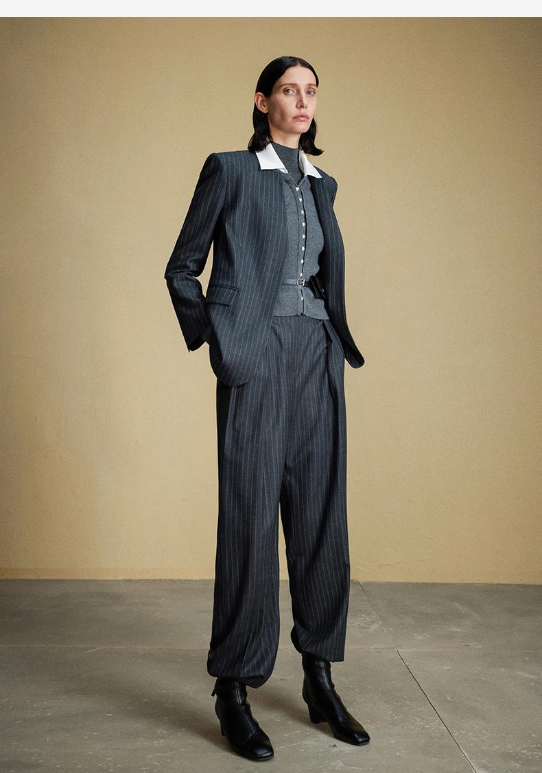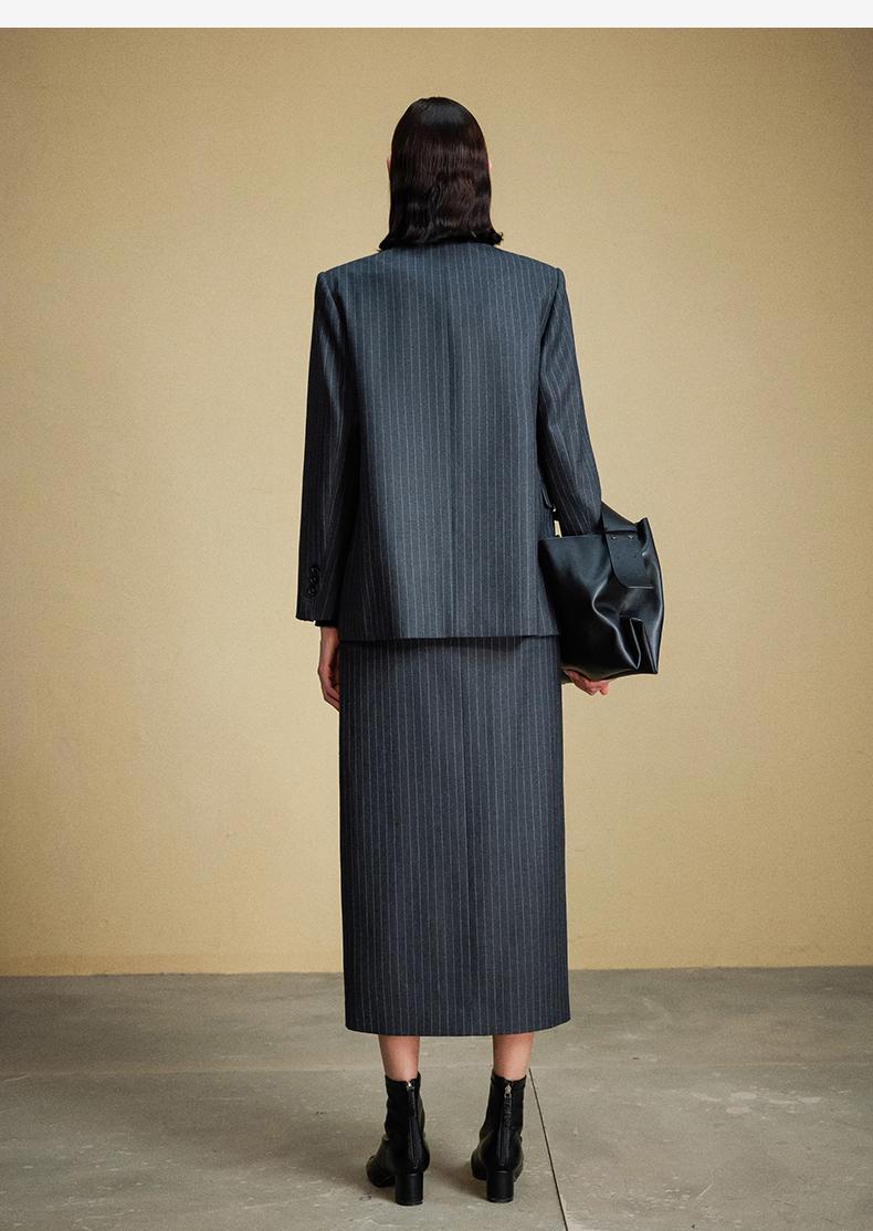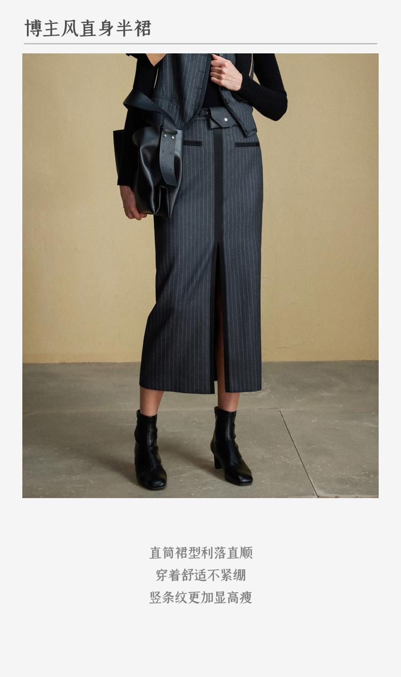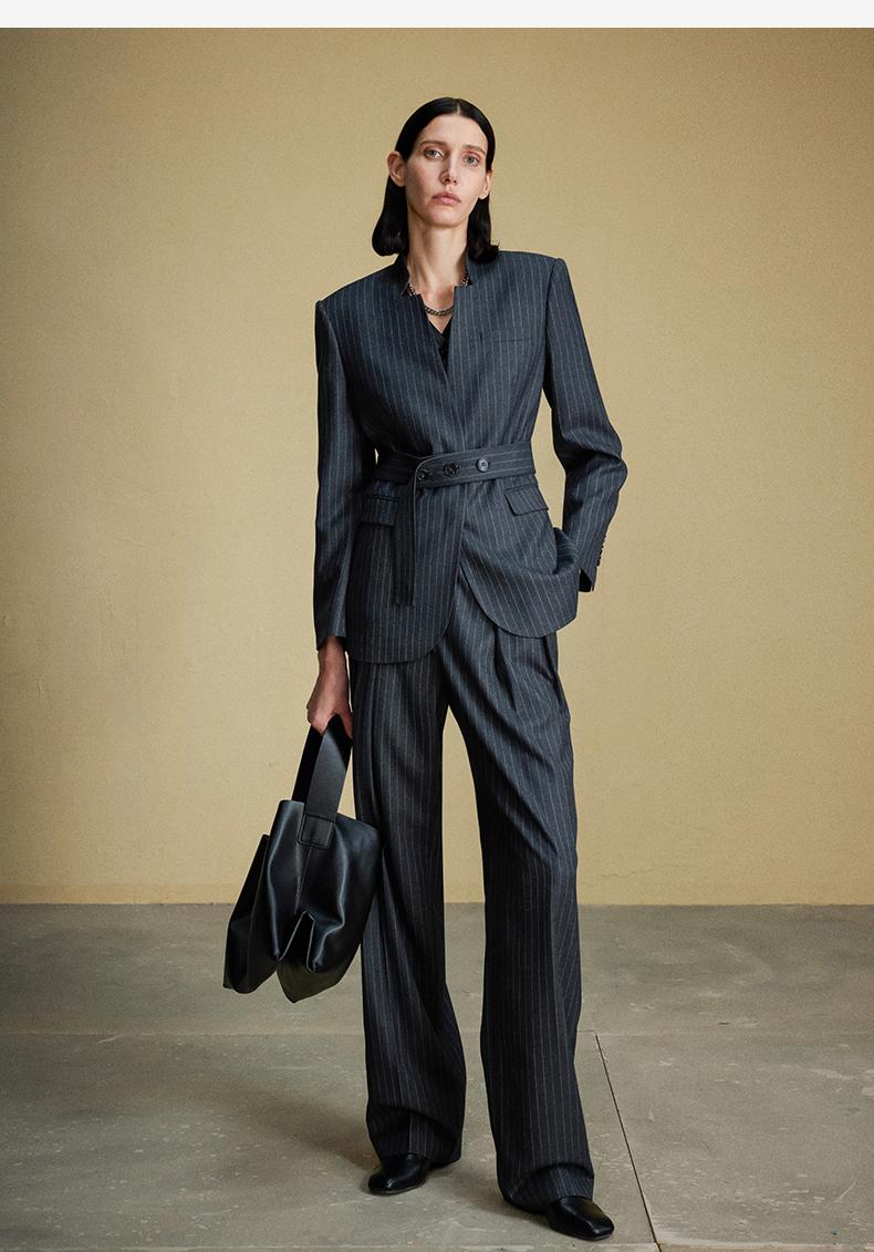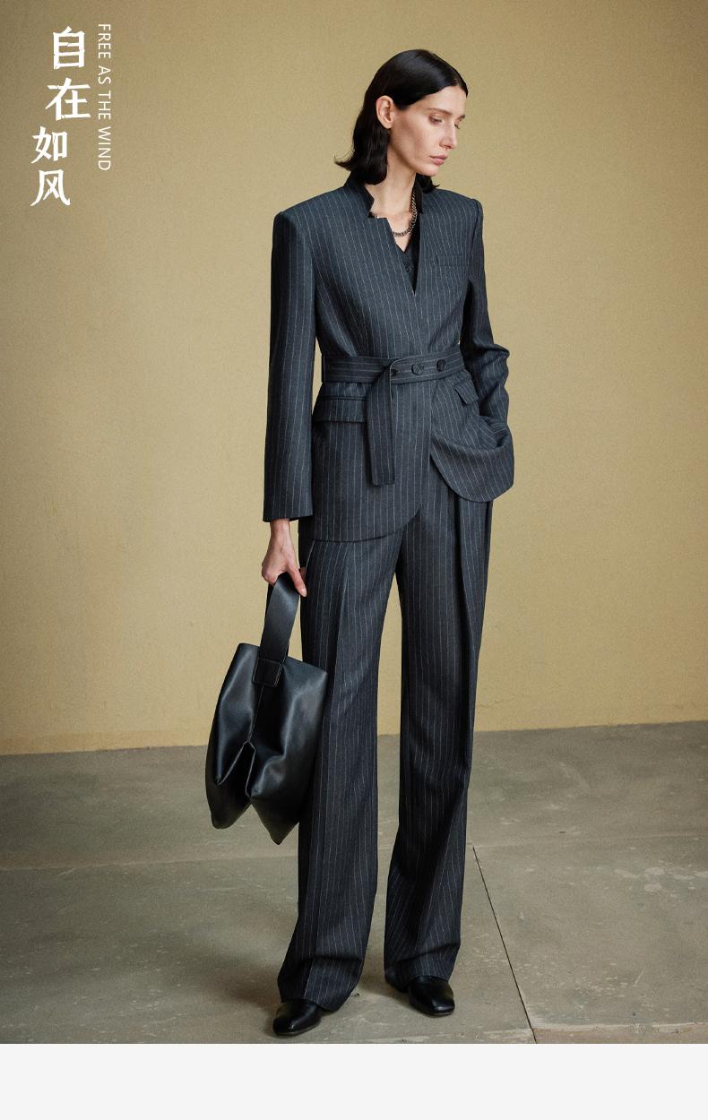 西嘉C+IMPRESS/西嘉羊毛条纹西装套装女腰带马甲半裙西装裤搭配一整套WT2304048
