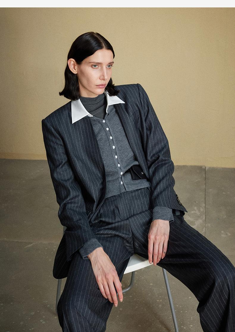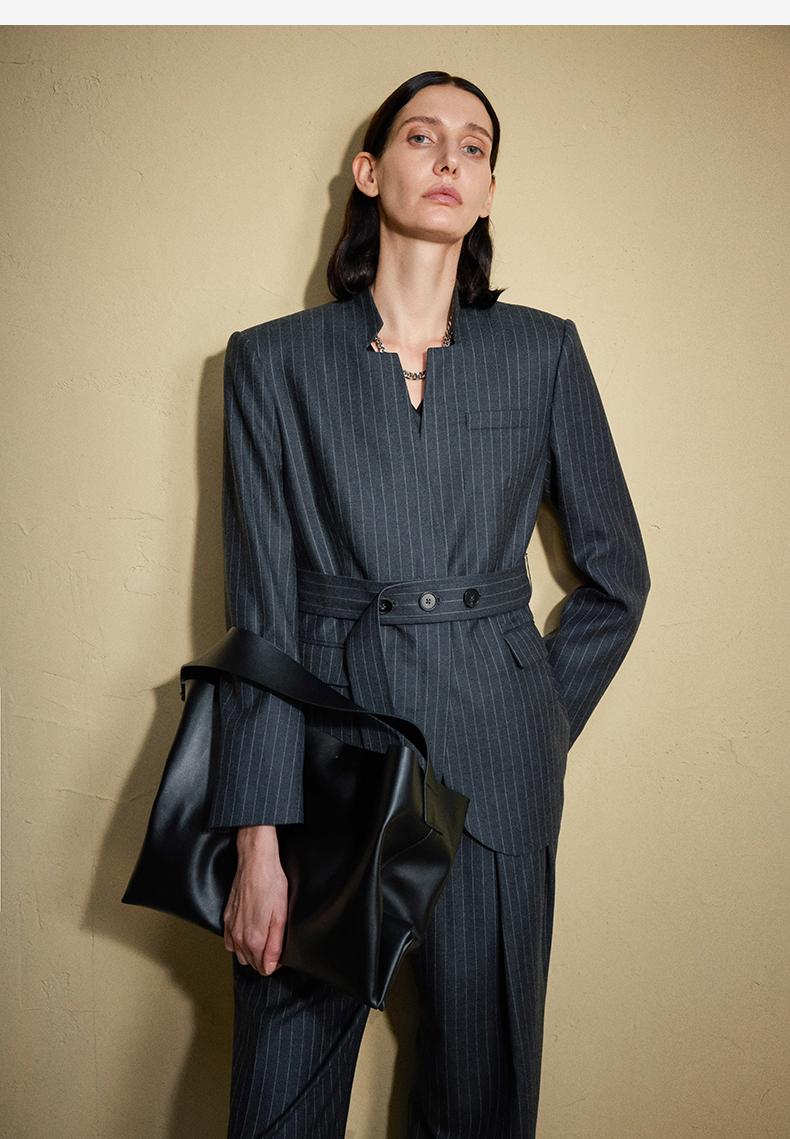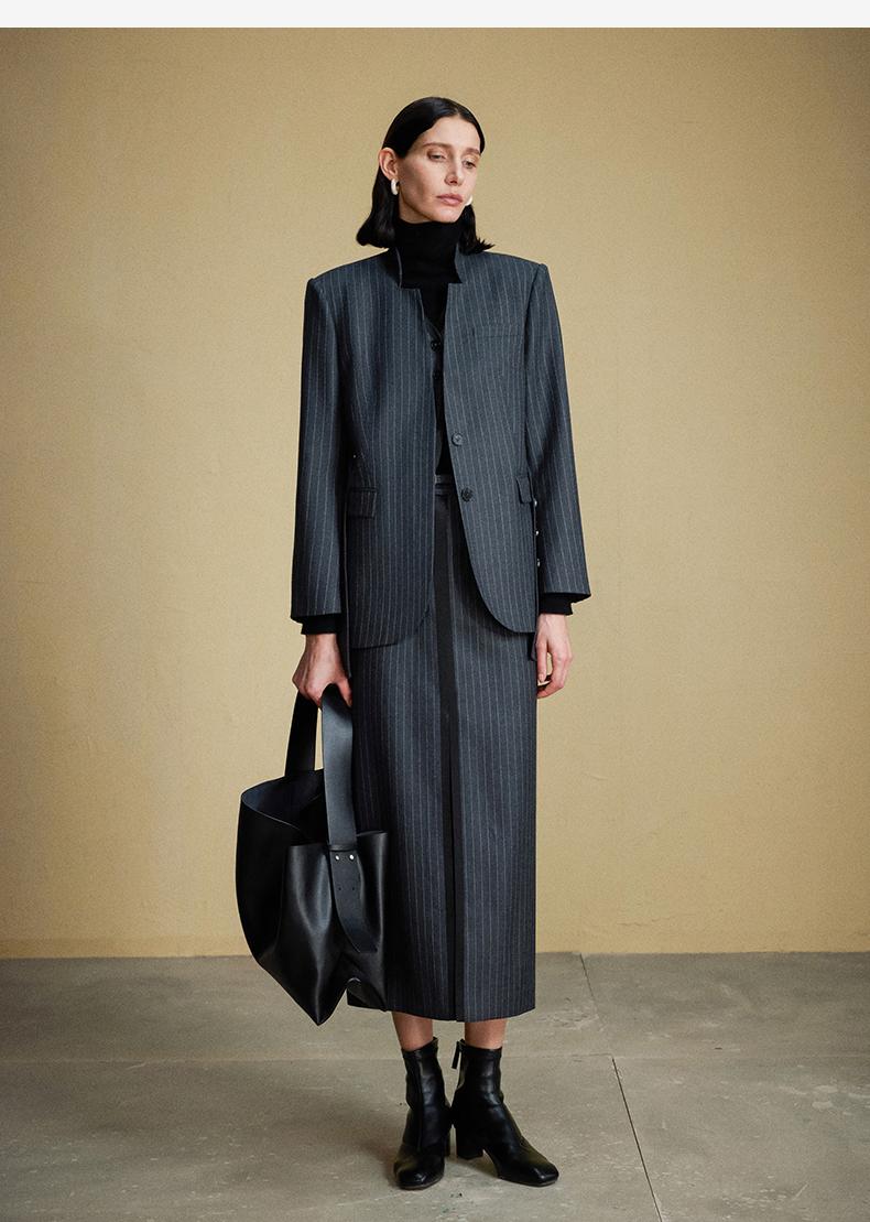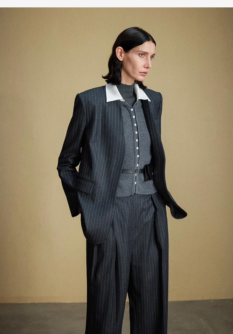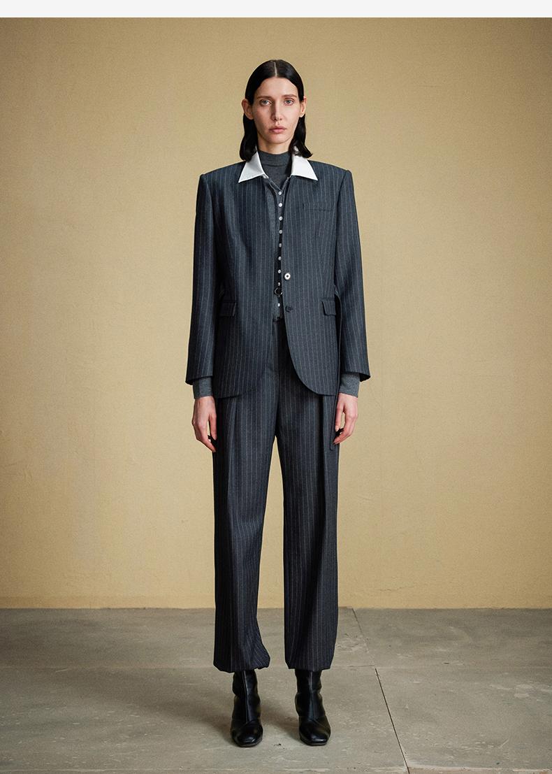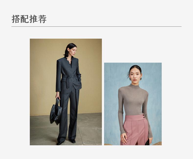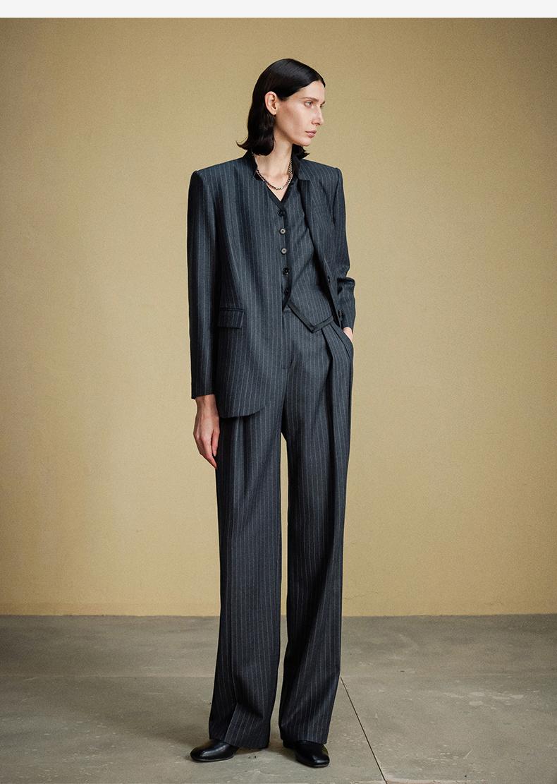 西嘉C+IMPRESS/西嘉羊毛条纹西装套装女腰带马甲半裙西装裤搭配一整套WT2304048