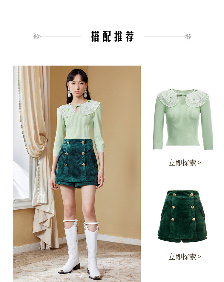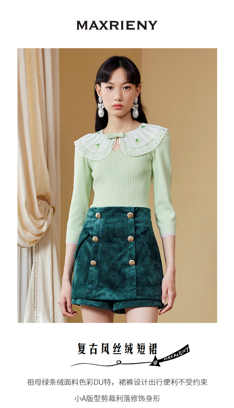 MAXRIENY祖母绿裙裤2022秋季复古丝绒裙气质短裙显瘦MC87PA543G80